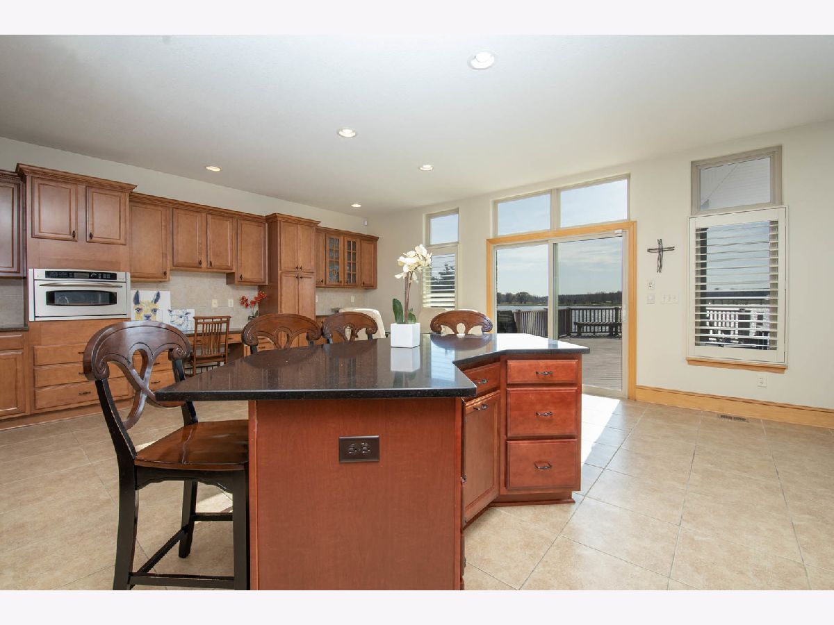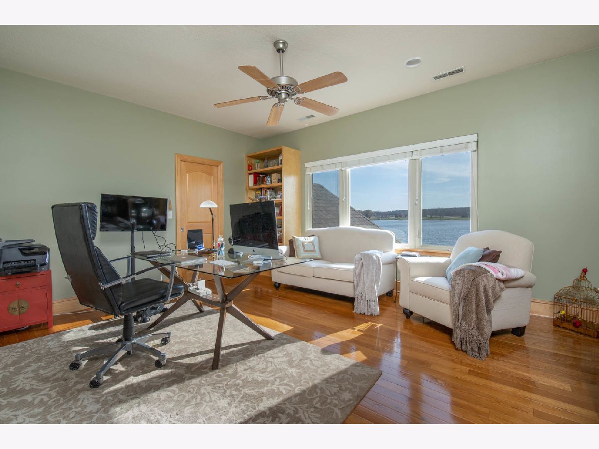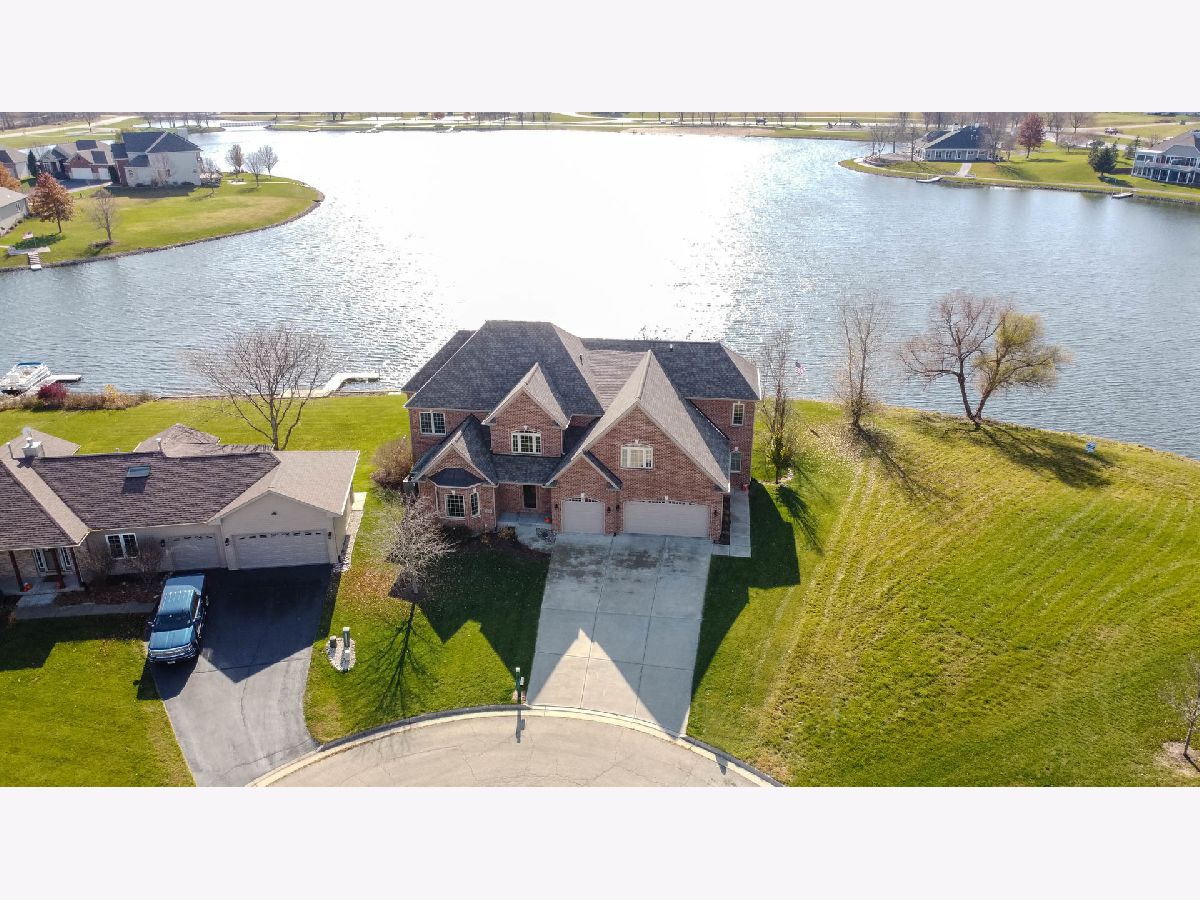 Beautifully custom crafted 2-story lake front property. Just over 5,500 sqft of living space, this all brick home offers 4 beds, 4 baths. Foyer opens to formal dining room with hardwood flooring, tray ceiling flowing through to butlers pantry & walk in pantry, opening into a beautiful kitchen with maple cabinets, quartz counter tops, center island overlooking the living room with cozy corner fireplace, recessed entertainment area & entire wall of windows looking out onto the composite deck with sunroof a perfect setup for entertaining or enjoying a quiet evening on the lake. Lower level patio area leading to pier. Upper level has all hardwood flooring in every bedroom. Master with ensuite, his & her sinks, walk in closet, soaking tub & glass shower. Bedrooms with Jack & Jill bath. Bonus room above garage perfect for workout room, family room, toy room, craft room, etc. Lower level; large kitchenette, 3 sided fireplace, family room, 1/2 bath. All 3 levels easily accessible via elevator.