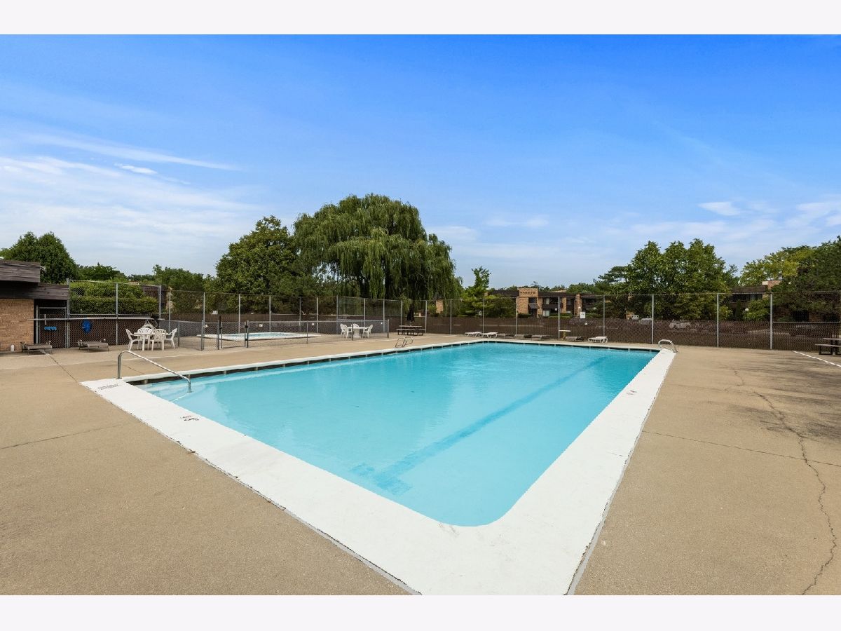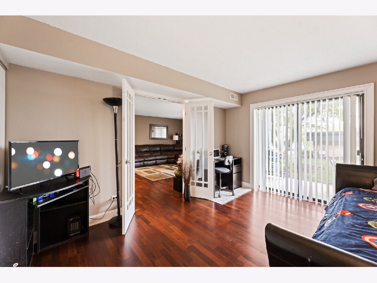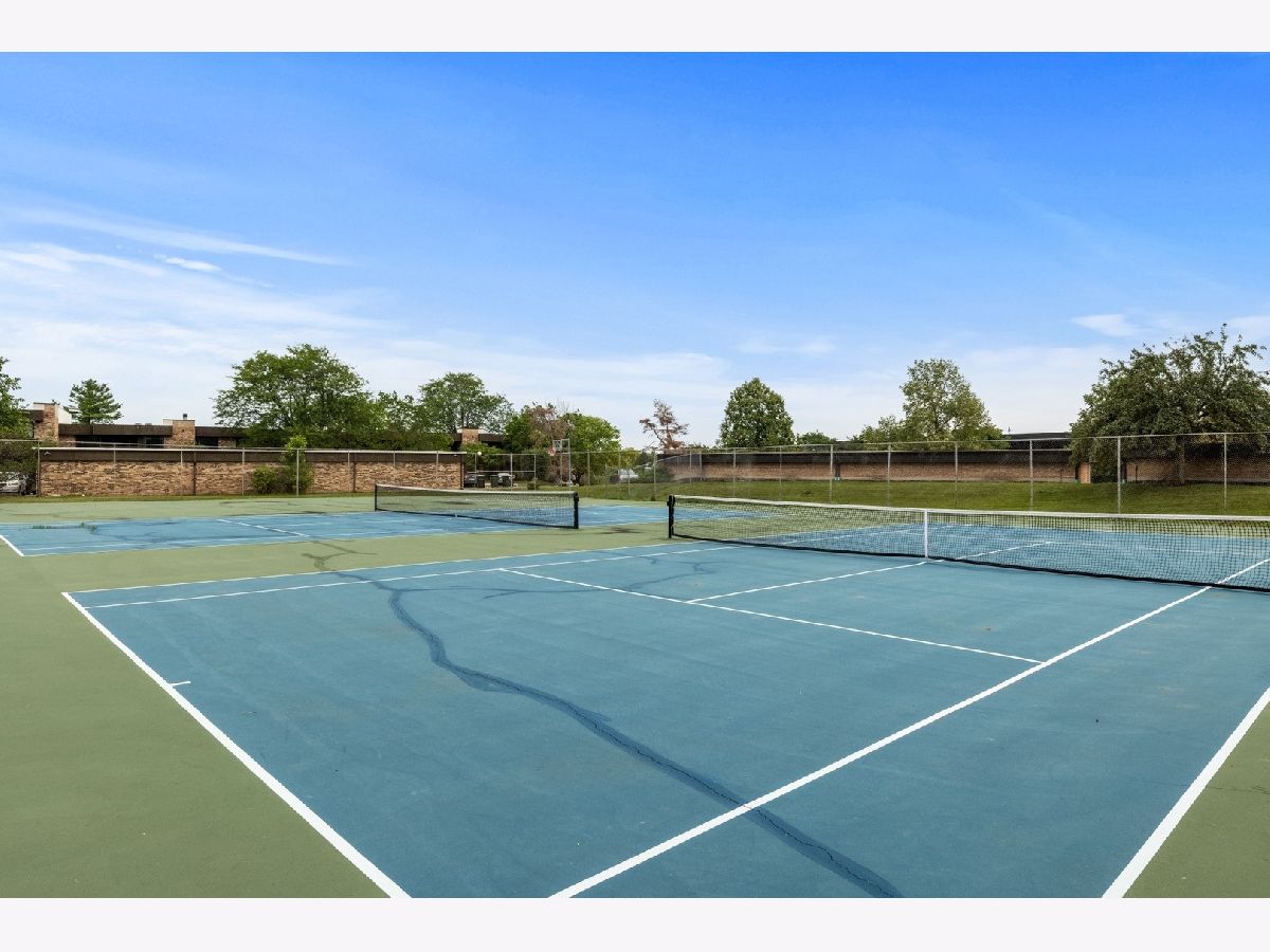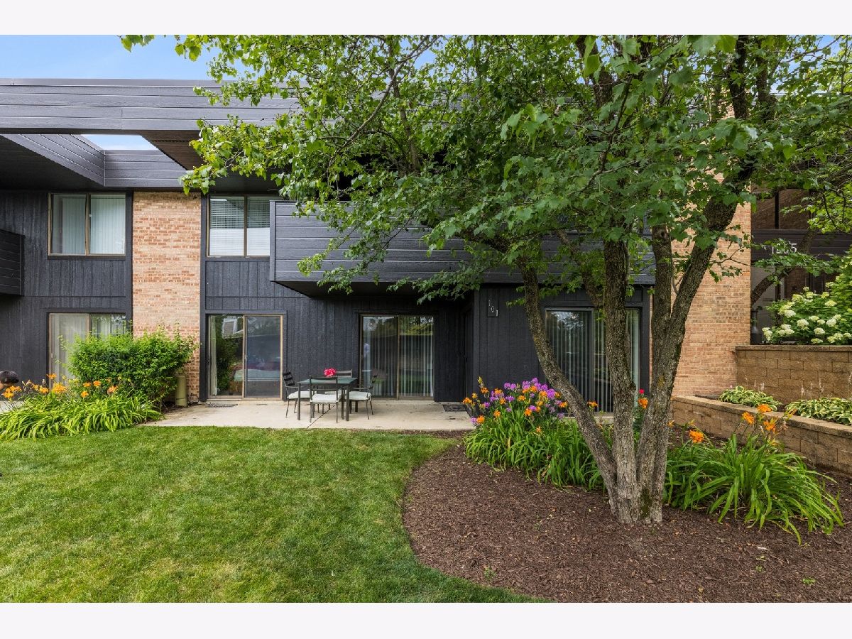 Enjoy a peaceful and private, yet conveniently located place to call your own. This 2 bed/1 bath condo has beautiful wood laminate flooring throughout, with granite countertops and SS appliances in kitchen. French doors in living room open the space with air and light. Sliding glass doors in every room integrate outside and inside and make entertaining a breeze. You will love the great central location. Only 2 1/2 miles from downtown Palatine, with convenient shopping nearby and numerous local Park District events. Enjoy all the outdoor amenities. Take a refreshing swim in your pool, or a paddle in the kiddie pool. Convenient changing and locker rooms, regulation size tennis courts and a basketball court. There is even a dog park on site just for residents' use. Come and get it while summer is still in full swing. New A/C unit installed Aug 5, warranty extends to new owner.