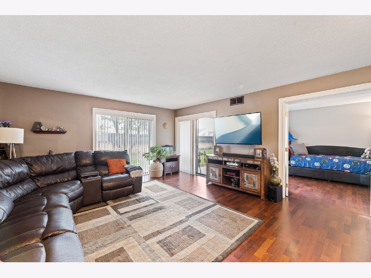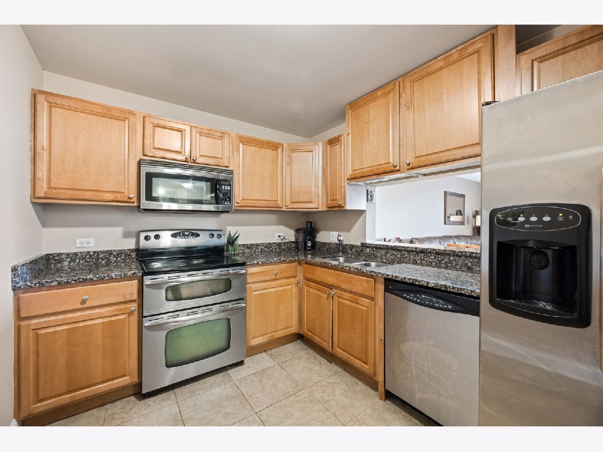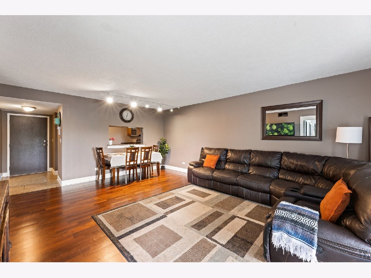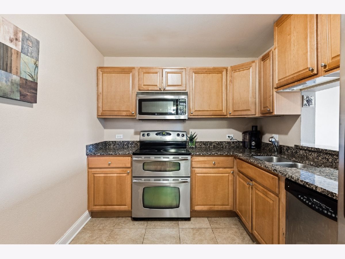 Enjoy a peaceful and private, yet conveniently located place to call your own. This 2 bed/1 bath condo has beautiful wood laminate flooring throughout, with granite countertops and SS appliances in kitchen. French doors in living room open the space with air and light. Sliding glass doors in every room integrate outside and inside and make entertaining a breeze. You will love the great central location. Only 2 1/2 miles from downtown Palatine, with convenient shopping nearby and numerous local Park District events. Enjoy all the outdoor amenities. Take a refreshing swim in your pool, or a paddle in the kiddie pool. Convenient changing and locker rooms, regulation size tennis courts and a basketball court. There is even a dog park on site just for residents' use. Come and get it while summer is still in full swing. New A/C unit installed Aug 5, warranty extends to new owner.