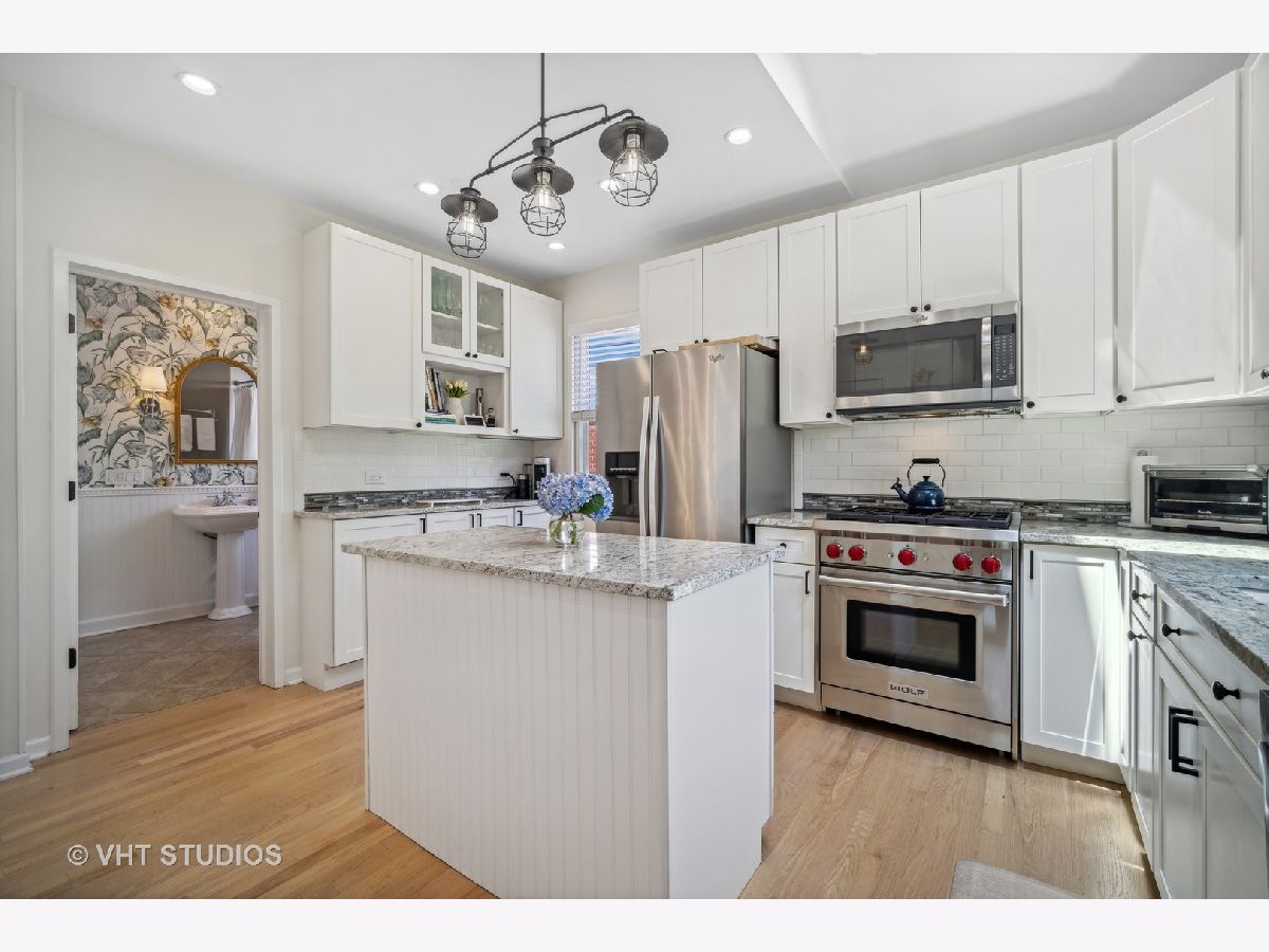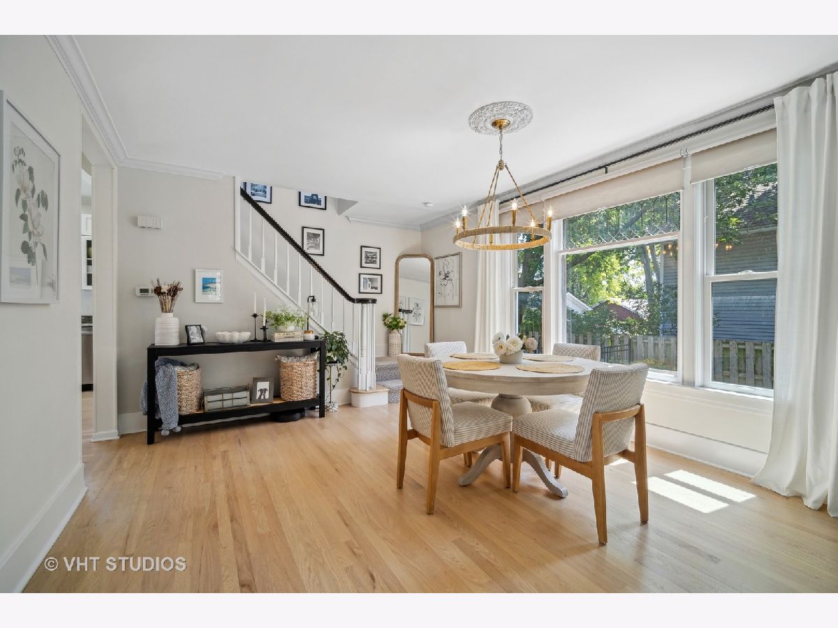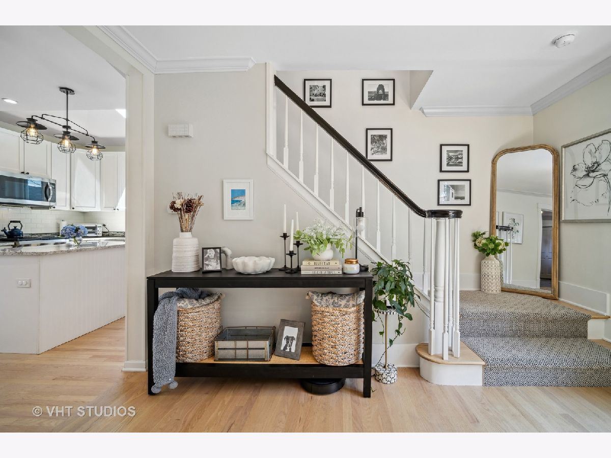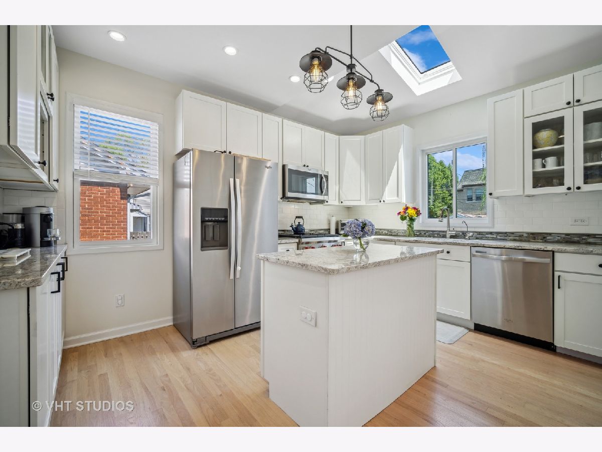 This one is a STUNNER! Welcome home to the stylish and magazine-worthy 127 S. Dunton! A ONE-OF-A-KIND Beauty in vibrant downtown Arlington Heights! This one has the vintage charm and originality of a historic home coupled with the modern and tasteful design of a new home! A formal entryway with custom designer wallpaper welcomes you into a warm and bright spacious living room with beautiful newly stained hardwood floors, updated lighting, abundant windows, and an open dining room. 2017 rehab with NEW Roof, NEW Windows, New siding, New Master bath. This home features a spacious white kitchen with island, shaker cabinets, tasteful backsplash, granite countertops, abundant cabinet space, and a New Wolf oven with all stainless-steel appliances. The tall ceiling with a new skylight creates a bright and airy feeling. The mudroom off of the kitchen is unexpected and a true space saver! The first floor also features a third bedroom which can be used as a guest room/office/den. This coupled with the large first floor FULL bath, with original built-ins, is perfect for visitors! Appreciate the newly finished carpet runner up to the second floor which features original wood floors and recently dormered ceilings. The light and bright primary bedroom features a walk in closet and large ensuite bath with a new double sink vanity! The second bedroom has original floors and plenty of windows for extra light! The 2nd floor also includes a second full bath with a skylight. The finished Rec Room in the basement is a perfect place to hang out or rest with enough room for an eating table and a desk/office space. The laundry and storage room are a terrific addition to the basement area featuring a walkout door to the backyard. The professionally landscaped yard offers a relaxing escape and a perfect area to entertain guests complete with a large patio and a fenced-in yard! An oversized 2 car garage tops off this perfect home with its' additional storage space beyond the cars. Location, Location, Location! WALK to everything DTA (Downtown Arlington Heights) has to offer: Metra station, stores, parks, pools, coffee shops, top-notch restaurants, boutiques, art studios and the beloved ARLINGTON ALFRESCO! Daily Herald's 2023 readers' choice as Top City/town and Top Downtown Atmosphere in the Suburbs!! Come check it out! This one will not last. Drapes in Primary Bedroom and 2nd bedroom excluded.