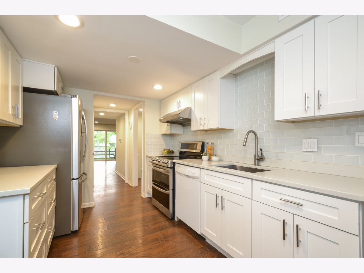 Beautiful end unit in sought after Rivershire! Picturesque water views from living room & family room overlooking the patio and lake. Freshly Updated with new engineered wood plank floors, recessed & decorator lighting, All New Kitchen with new white cabinets & marble counters, designer glass subway backsplash, new stainless steel appliances, bright bay window eating area. Full formal dining room, large family room/den with built ins, spacious powder rm. Master Bedroom with private master bath/dressing room, his and hers walk-in closets, new spa shower with custom clear glass. Large 2nd bedroom, Third bedroom with balcony & views of lake, full hall bath with shower/tub & ceramic tile. 1st flr laundry rm/craft /mud room off the kitchen with new high end front load washer & dryer, additional counter space & cabinets. New Lennox furnace & humidifier, 2+ car attached garage, great storage thruout. Especially Easy living! Private interior location with tennis courts, pool, golf course and walking trails nearby. Close to shopping, entertainment and I-294. Award winning Lincolnshire School District 103 & Stevenson High School 125 too!