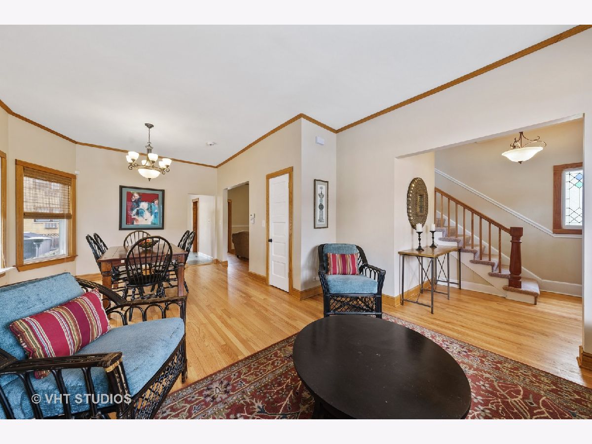 Charming farmhouse conveniently located in central Oak Park. Wonderful neighborhood, nearby park and walk to literally everything! Elementary school, middle school and highly acclaimed Oak Park and River Forest High School. Enjoy recently renovated Stevenson Park or the Ridgeland Common Recreation center with pool and ice rink just a few blocks west. Enjoy coffee on the front porch or sunbath on the master bedroom deck. For summer entertaining, serve your guests on newly stained back deck overlooking the impressive garden loaded with flowering perennials and tasteful storage shed for bikes and gardening supplies. This home has three nice sized bedrooms upstairs with unusually large closets for a home in this area. The first floor living space is akin to today's desirable "open concept" floor plan with a living room and dining room combination and adjoining family room. Ample storage in the kitchen with deep walk-in pantry. The back enclosed porch area has been converted into smartly designed home office with custom Elfa workspaces for two people! Perfect for today's work-at-home situations. Finally, the partially finished basement is ideal for TV watching, gaming, exercising or use as a large fourth bedroom with proper closet and basement egress. Lastly, there are two full bathrooms one each on first and second floor, both with neutral white tile, sinks and toilets. This home is well maintained. New roof and hot water heater in 2021. Freshly refinished hardwood floors and several new windows in 2022. Overhead sewer installed in 2020. Nothing needs to be done in this home. See it today.