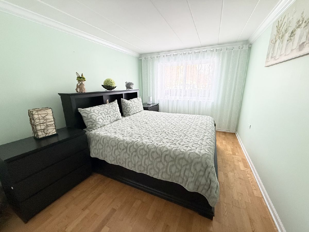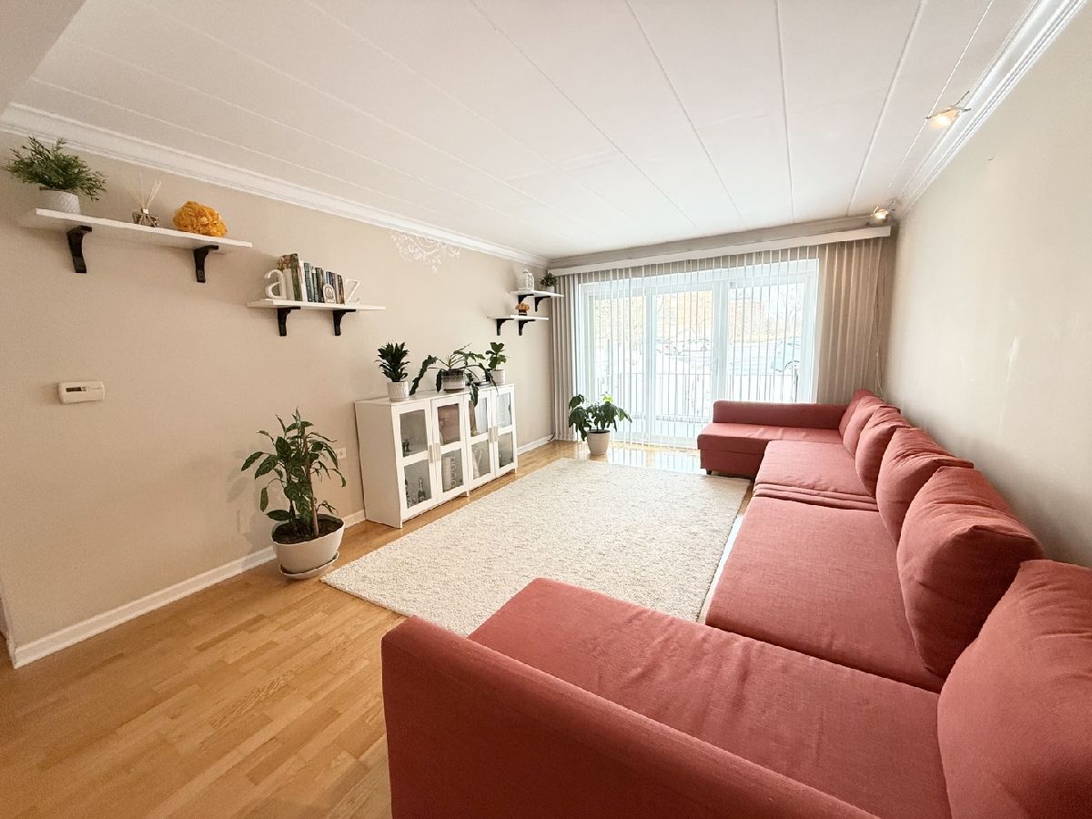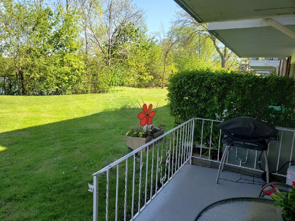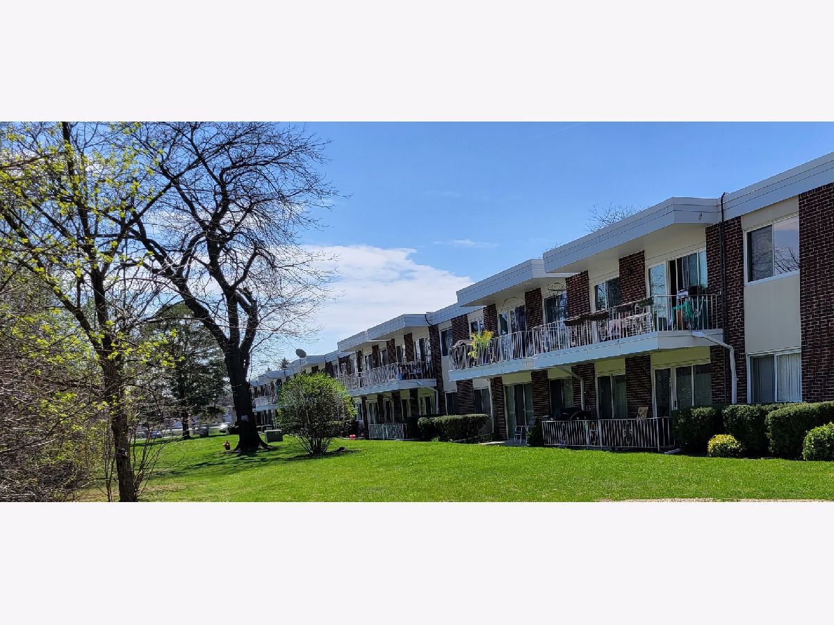 This beautiful end-unit condo offers a spacious two bedroom, one bathroom layout. Located on the first floor, it features a lovely view, bright and welcoming rooms, newer window and patio doors, and a large balcony for outdoor relaxation. Laundry and storage are conveniently on the same floor. The condo is within walking distance of Fresh Farms, Walgreens, public transportation, and three parks. It's also close to Wheeling Park District and the outdoor Aquatic Center. A new playground is coming in 2025. With plenty of parking and a quiet, well-kept setting, this move-in-ready home is perfect for owners, as rentals are not allowed.