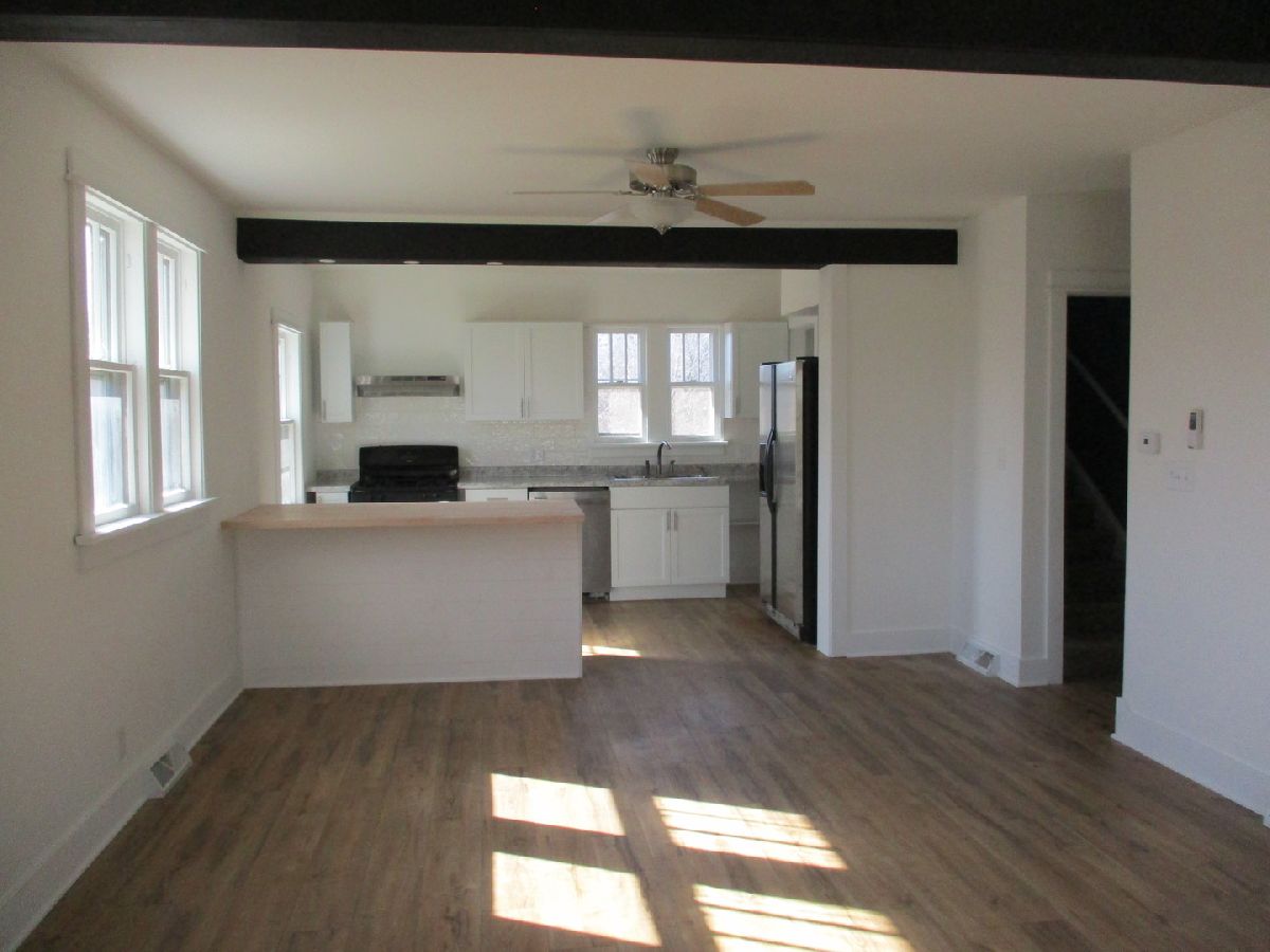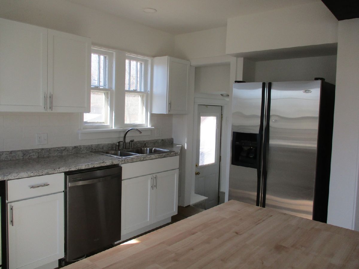 Brick Tudor style home offers 4 bedrooms and 2 bathrooms. The main floor has been recently renovated and features an open floor plan from the Living room to the Kitchen. There is an entry closet, wood burning fireplace and lots of natural light. The 2 bedrooms and a full bath have large closets. The 2nd level has a large master bedroom, another bedroom and full bathroom. The laundry is in the basement along with access to the 2 car garage, accessed by the alley. Large patio & deck, fenced yard, and parking at the front and back of the house. Furnace new in 2023, water heater - Jan 2022, water softener - Feb 2022 is not used, appliances included although the dishwasher doesn't work. Vacant and easy to show. This house may not qualify for Government loans