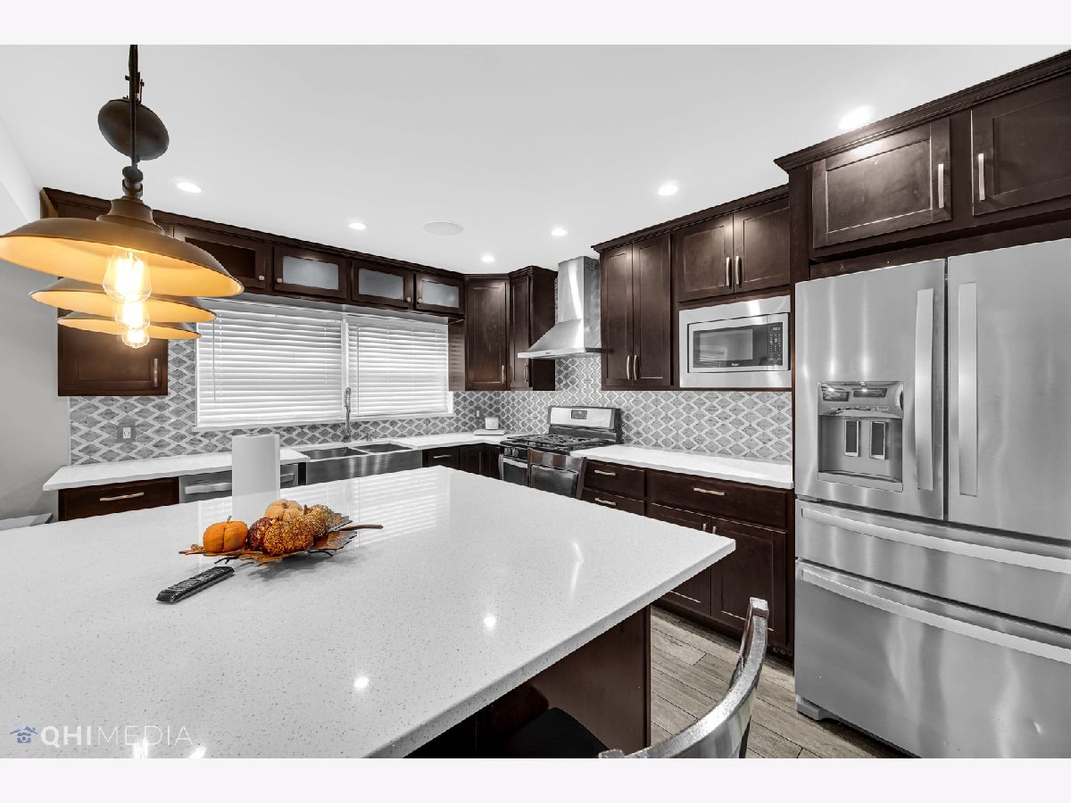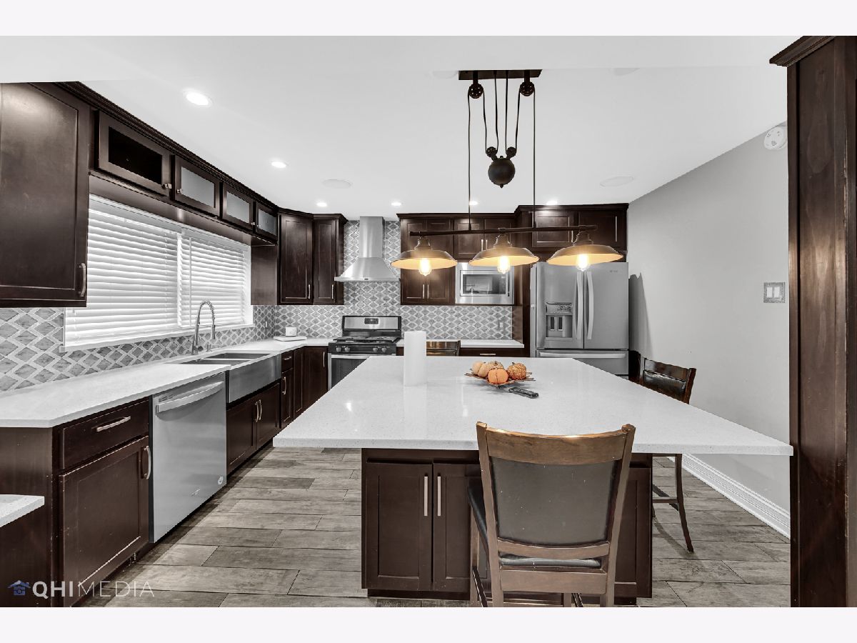 WOW! The only thing to do is move in! 4 bed 3 bath raised ranch home in Hegewisch! Exterior is brick and vinyl siding. Rear has custom stamped concrete patio perfect for parties or extra parking and the newer garage even has a party door! Inside the home has been completely remodeled, upstairs features hardwood flooring, 3 bedrooms and 2 baths. The main bedroom is a nice size with a huge walk in closet, and its own bathroom with custom a custom tile shower. Lower level is open concept with ceramic hardwood style flooring, custom chefs kitchen with quartz countertops, stainless steel kitchen appliances, and ton of cabinets for storage. Lower level also features a 4th bedroom and a half bath as well as laundry (washer and dryer stay as well with acceptable offer), tankless water heater, and newer mechanicals. Schedule your showing today.