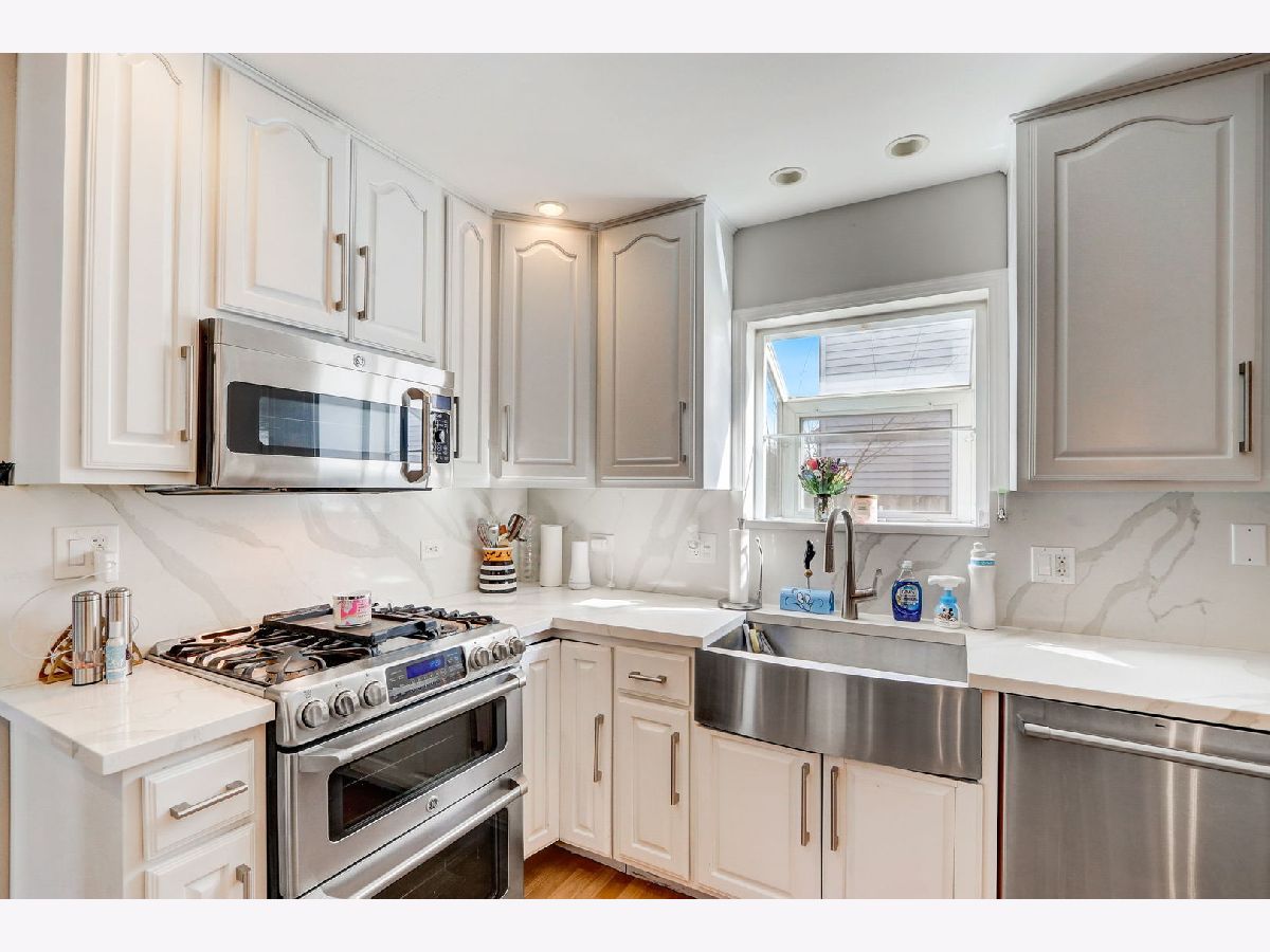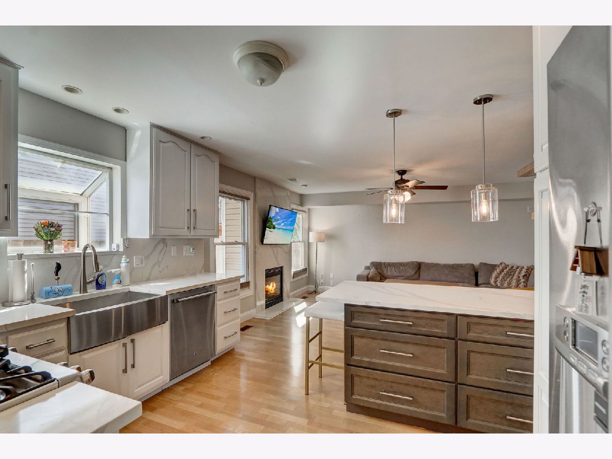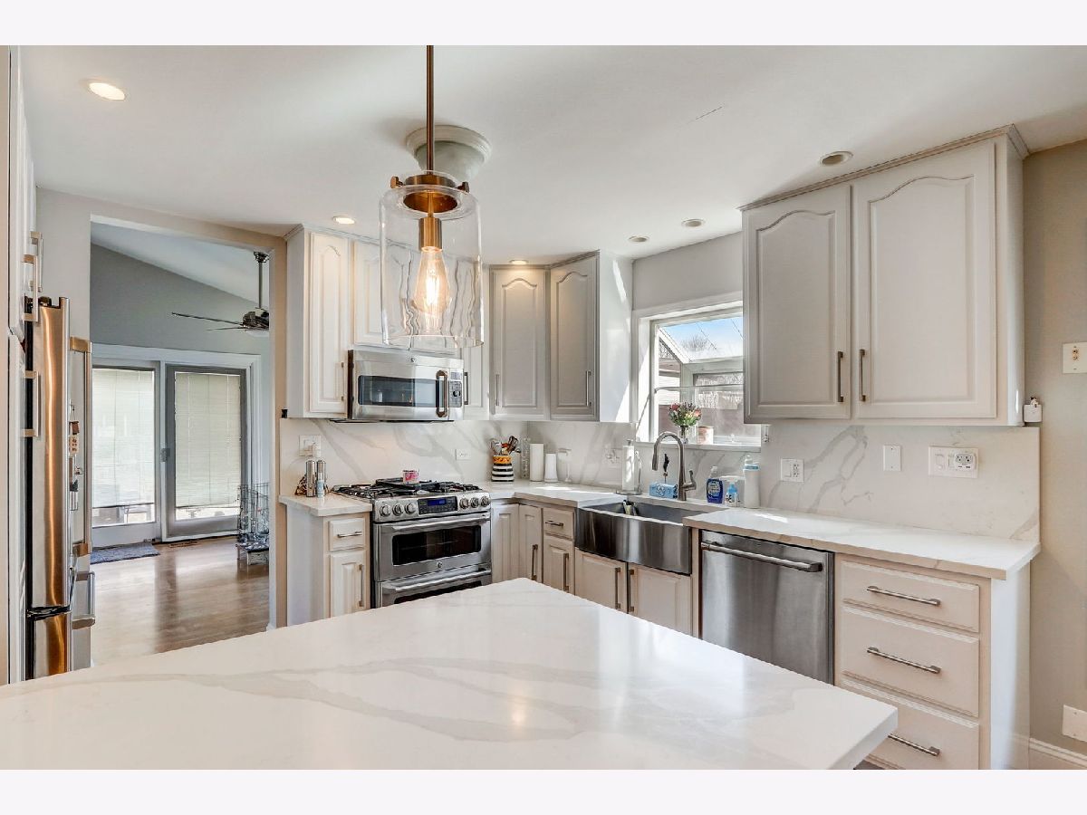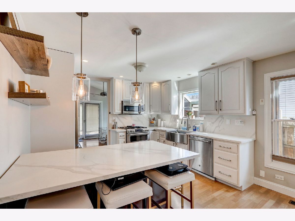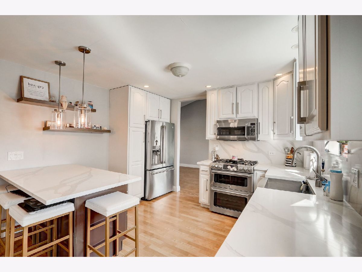 Great location for this Beautiful corner home. The home offers 3 bedrooms and two full baths upstairs, the main level has a family room with a fireplace, living room combined with the dining room and half bath with a beautiful glass stained window. Updated kitchen boasts Calacatta Quartz countertops and backsplash, farmhouse sink, top of the line appliances including refrigerator with built-in Keurig, double convection oven and microwave that doubles as 3rd oven. Spacious living and dining room with soaring cathedral ceilings updated high profile baseboards and trim throughout the first floor and basement. The basement is finished, with a recreation room and half bath and a large storage area. New water heater, furnace and AC. All this and short distance to forest preserve, stores and restaurants and easy access to expressway. Conant High School and Link Elementary School. Don't miss this one, it will be gone soon!
