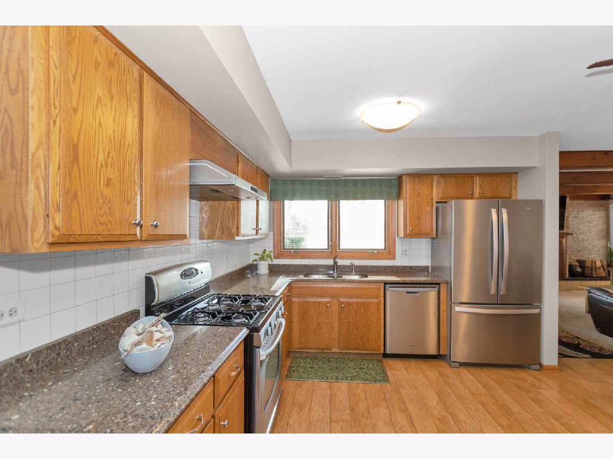 A Beautiful November Surprise, 4 Bedroom & Den, Hearth Model with Fenced Back Yard with Deck! Lovely Refreshed Kitchen with Cabinets Professionally stained 2022. Silestone Kitchen Counter! Stainless Steel Kitchen Appliances! Large Pantry! Living Room, Dining Room & Family Room with Plush Neutral Carpet. Cozy Family Room with Woodburning Fireplace, with Flagstone Wall & built in Shelves. Chimney Cleaned & Swept 2022. All of the Windows have been replaced with New Vinyl Windows within past 10 years! Most of interior was Freshly Painted in 2022. Upstairs are 4 Spacious Bedrooms Master Bedroom with Ceiling fan & Walk in Closet! Master Bath has been Refreshed within past 5 years. Finished Lower Level Offers an additional Family room & Den for home office! Laundry Room with New Wash Machine (May 2023) & Utility Room. 2 Car Attached Garage with built in storage shelves. Main level family Room Door leads to Deck that was Freshly painted in 2021. Exterior Cedar Freshly Painted 2021! Leaf Guard System installed in 2022 . New Water Main Line trap installed 2023. Highly Sought-after school districts 54 and 211 with one-block to elementary school and short way to high school This is Truly a Loved Home. Seller is longtime owner moving to retirement community. Selling home As Is, and providing a 1 Year HWA Home Warranty Provided at closing for buyers peace of mind. Make this your home for the Holidays!
