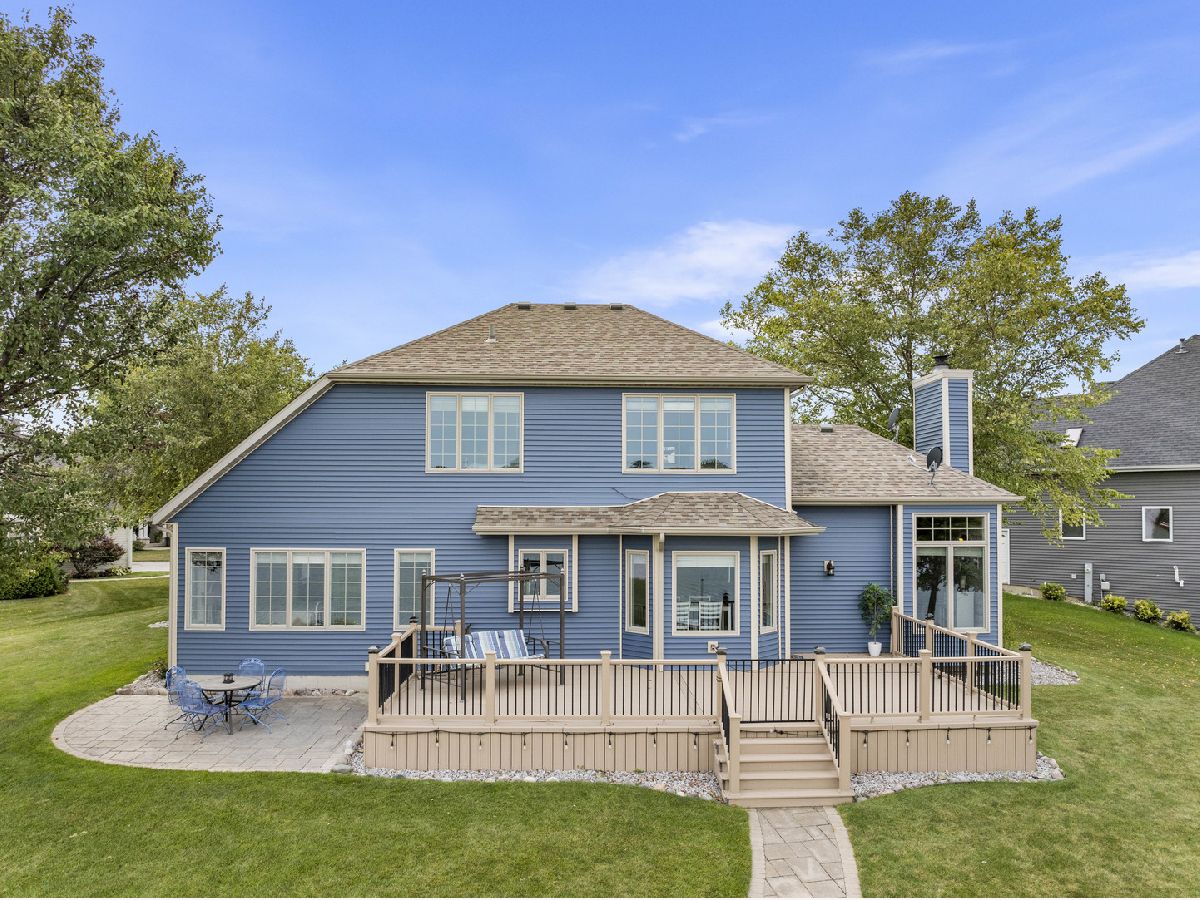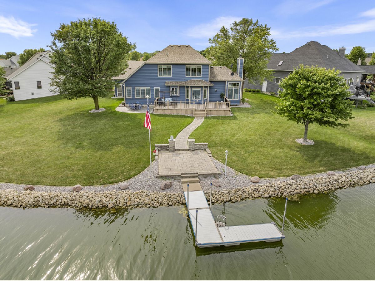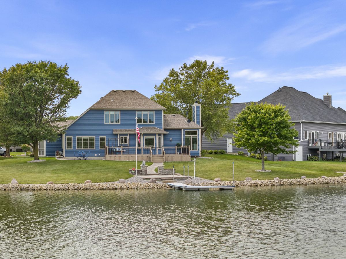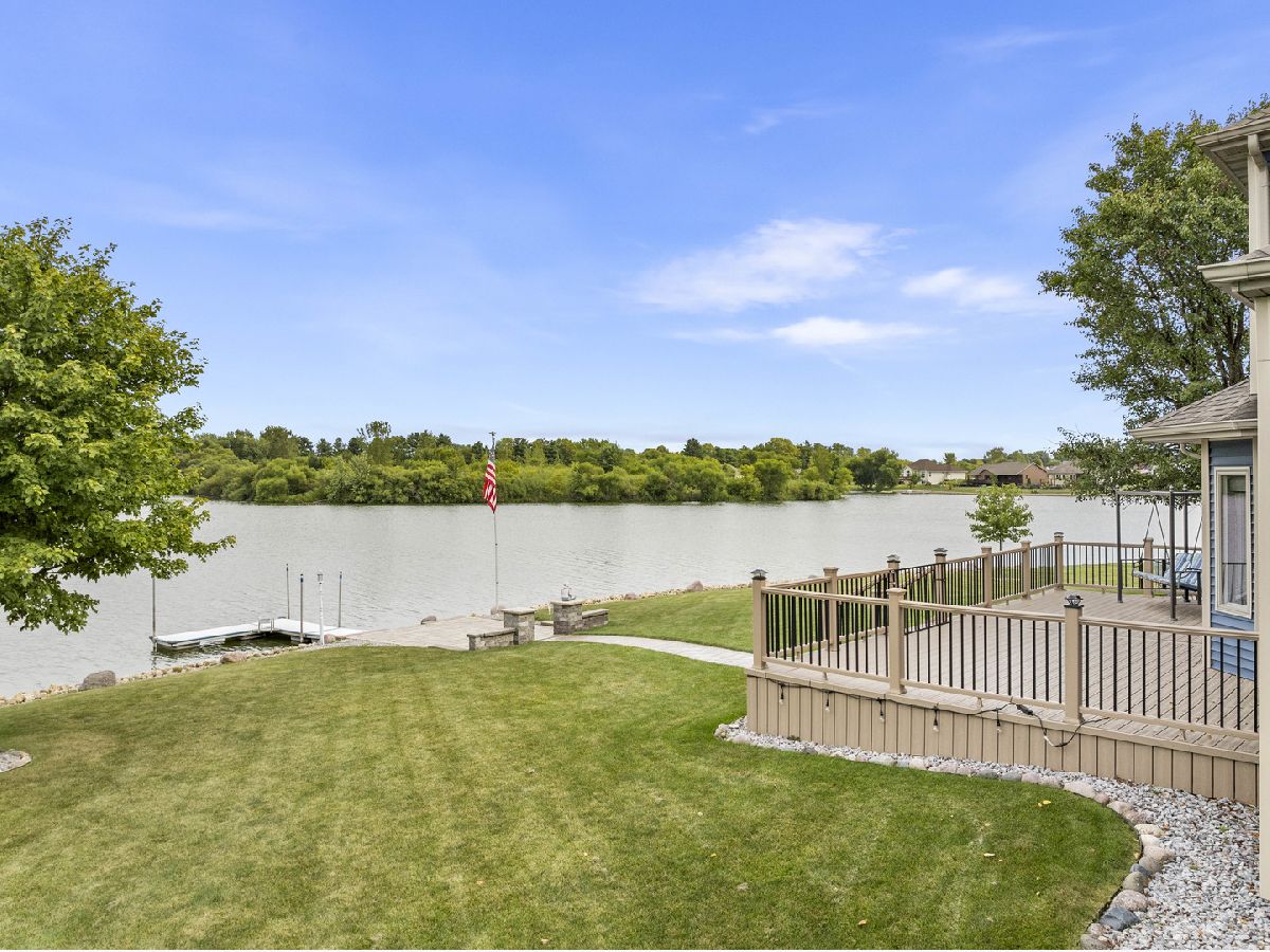 This luxurious 4-bedroom, 3-bathroom lakefront home in Westlake Village offers stunning views and modern upgrades. The first-floor features new vinyl flooring and a formal dining room, while the living room boasts tall ceilings, a gas fireplace and expansive windows looking out onto the picturesque lake. The spacious and updated eat-in kitchen includes Corian countertops, sleek appliances, an island and ample storage. The primary suite, also on the main level, features a beautifully updated en-suite bathroom (2022). Upstairs, there are two more bedrooms, a full bathroom, and a lofted sitting area with year-round lake views. The finished basement, completed in 2022, includes a cozy family room, rec room, and a fourth bedroom with egress. The backyard is a true oasis with professionally landscaped grounds, new composite decking (2022), concrete pavers, and a private dock for lakeside relaxation or water activities - the built-in outdoor lighting also enhances the serene atmosphere in the evenings. Additional features include a 3-car garage with epoxy flooring (2019), all new Anderson windows (2020-2022), fully re-wrapped exterior before installing new siding in 2022, a roof that's just 8 years old, while new carpet was installed most recently in 2024. Venturing out into the rest of the community, Westlake Village offers fantastic amenities like a golf course, pool, clubhouse, and tennis/pickleball courts. This home is a perfect blend of luxury and lakeside living and truly needs nothing, just move in!