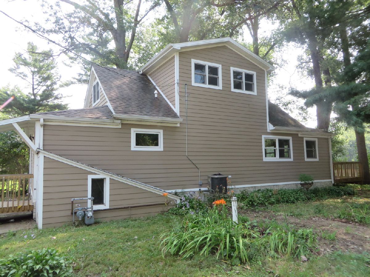 This is a picture perfect sitting! This home sits on a wooded lot of .75 acres on the Kankakee River - approximately 240 feet of river frontage. Every window you look out of has an awesome view. Trees, river, deer, wild turkeys. The open floor plan features a large great room - perfect for entertaining! Just off of the great room is the large wrap around deck - just steps from the river - great place to relax and enjoy all the fall colors. Kitchen features a work island, pull out drawers - plenty of cabinets. Main floor has 1 bedroom and bath. Second floor is one very large room that could easily be turned into 2 bedrooms. The 2 car garage has a walk up 2nd floor. Great for storage or a studio. Property also has a screen house and storage shed. New septic system! Whole house generator. Property is in the flood zone. Sold "as is".