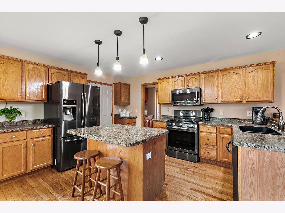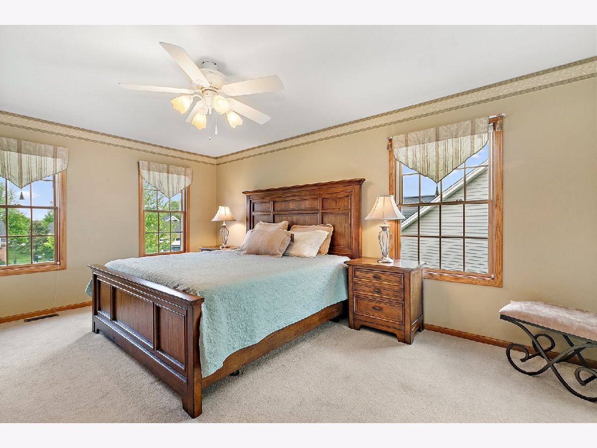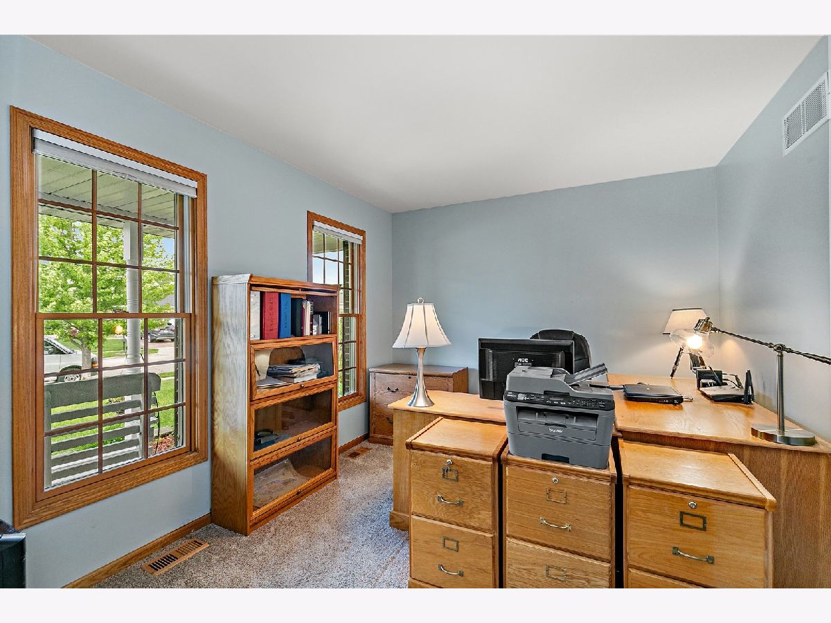 Don't miss this beautiful and well maintained custom-built one owner home in sought after Heritage Ridge! Attractive landscaping/hardscaping, a paver walkway, and a cozy front porch welcome you home. Inside, you'll be met with a functional floorplan with gorgeous hardwood floors, neutral paint, solid oak doors and tons of natural light throughout. Double French doors lead to a private office, ideal for anyone working from home. The large living room showcases a brick fireplace with remote start, and has doors exiting to the composite deck and backyard! Adjoining the living room is the eat-in kitchen ~ perfect layout for hosting friends and family! The kitchen features plenty of cabinet & counter space, a center island with breakfast bar seating, newer Samsung black stainless steel appliances, and a breakfast nook with room for a large table. Off of the kitchen is a half bath, and a corridor with a butler's pantry - the area with the pantry once had a shower, so the formal dining room could easily be converted back into a first floor master suite if it suits the buyer's needs! Upstairs, the impressive owner's suite includes a 10x7 walk-in closet and a beautifully remodeled private bath with double sink vanity, jetted tub, and a separate frameless glass step-in shower with multi-sprayer showerhead. The 2nd, 3rd, and 4th bedrooms share access to the full hall bath, which has also been recently remodeled. The finished basement offers even more living space, including a huge family room, a 5th bedroom, a full bathroom, and tons of storage space. Attached two-car garage. The roof, furnace, and AC are all new within the past 10 years! Outside, the newly fenced backyard has a composite deck and a paver patio. Great cul-de-sac location in a quiet neighborhood. Just minutes to parks, schools, shopping, and dining. Only about a 5 minute drive to downtown Dekalb. Access to I-88 for easy commuting. This one has it all... WELCOME HOME!!!