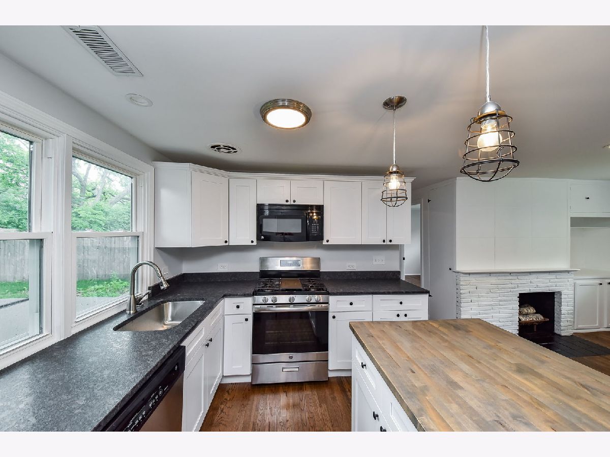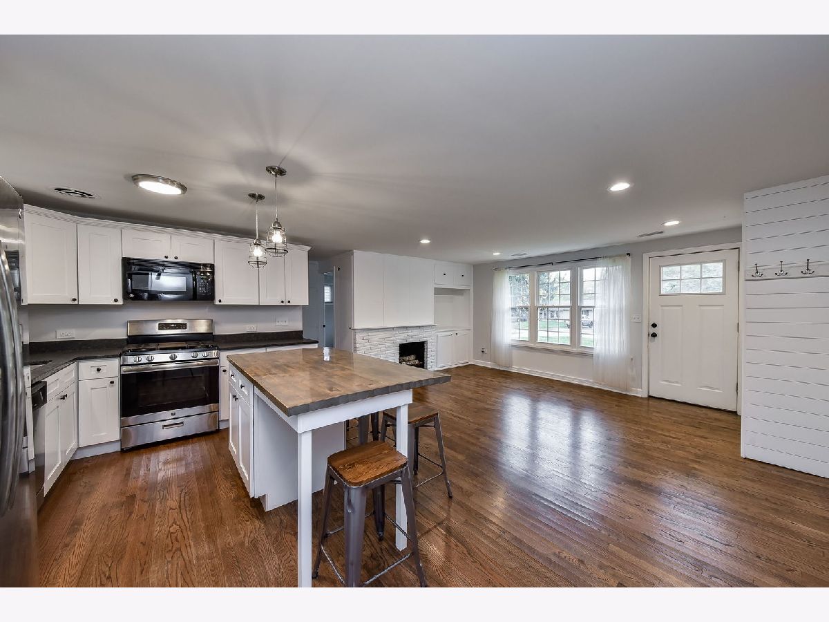 Barely a stone was left unturned in the rehab of this adorable ranch! Major updates include new roof, siding, windows, doors, furnace, water heater and truly much more. Inside, new hardwood floors run throughout the contemporary, open-concept floorplan and create an airy, spacious feel. The kitchen features stainless appliances, granite counters, white cabinets with 'soft-close' doors and drawers, and a 6' x 4' seatable island with stained wood top. The living room has a woodburning fireplace and large window overlooking the front yard. Spacious laundry/utility room with luxury vinyl floor and a sliding barn door for style and space. The two bedrooms are served by the renovated hall bath. Outside, the large patio and fenced yard offers generous room for recreation and entertainment. This quiet neighborhood is one block to Emerson Elementary and walkable to Graf Park and Lincoln Marsh. Plus just a quick drive to downtown Wheaton, commuter train, dining and shopping.
