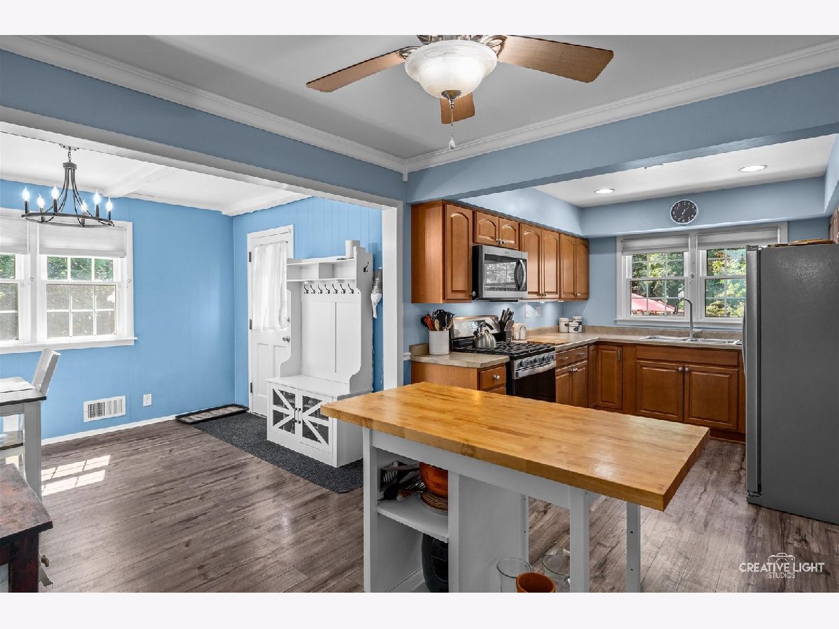 Welcome home to this spacious 3-bedroom, 1.5-bath Cape Cod on a beautiful 1/3-acre lot! Featuring a large kitchen with updated stainless steel appliances, luxury vinyl flooring, and an oversized living room with gleaming wood floors and a huge picture window with a view. The spacious master bedroom offers built-in cabinets for added storage and character. Major updates include a new furnace (2024), central air (2020), and updated windows (around 2010), giving peace of mind for years to come. Enjoy outdoor living on the deck and patio with plenty of room to entertain or relax.Unbeatable location-walk to downtown West Chicago (0.3 mi) and the Metra station (0.5 mi). Just minutes to the West Chicago Rec Center, Reed Keppler Park, Turtle Splash Water Park, and Wiggly Field Dog Park-all within 1.3 miles! This home combines classic charm with modern updates and a fantastic walkable neighborhood. Don't miss it!