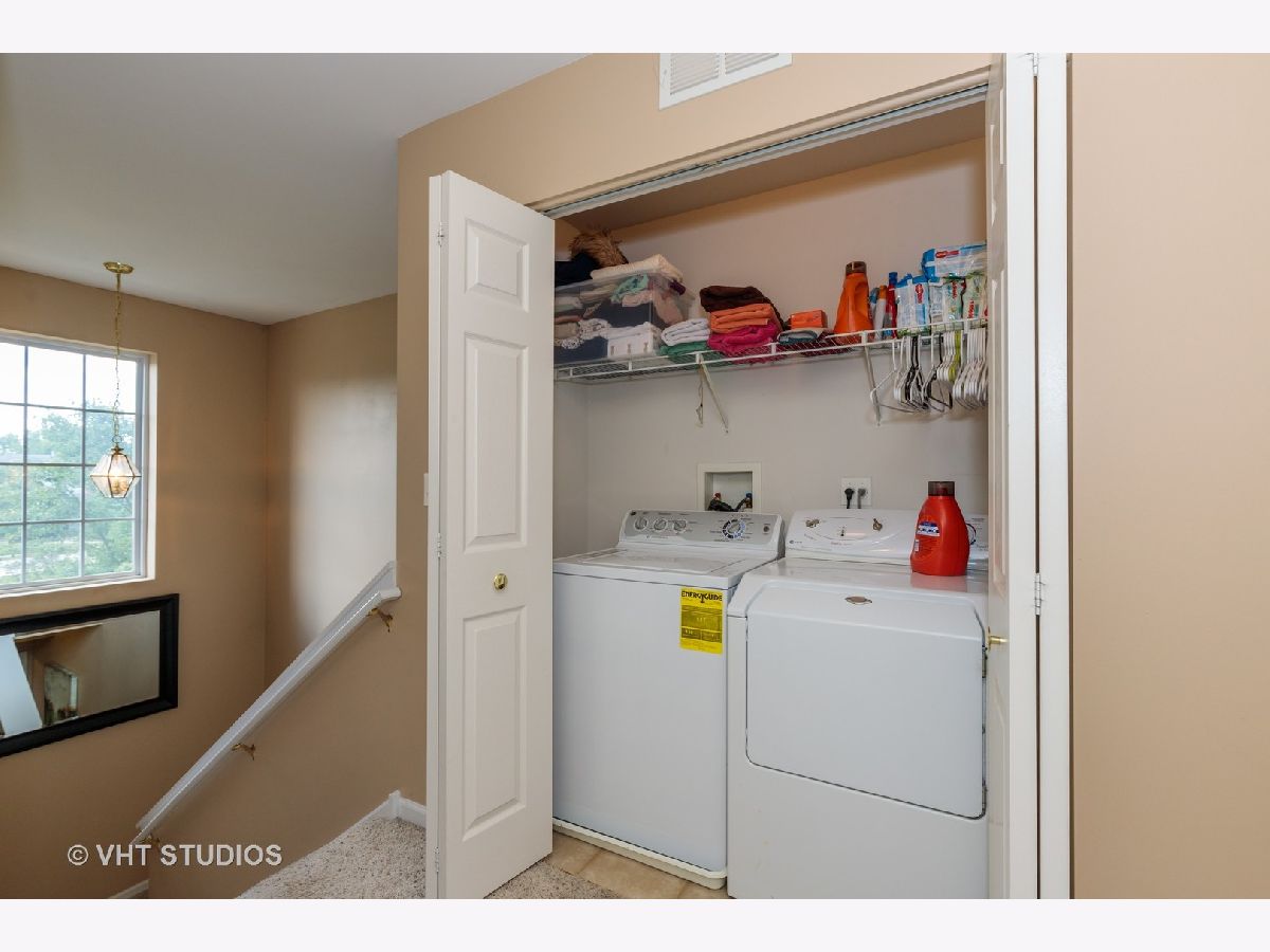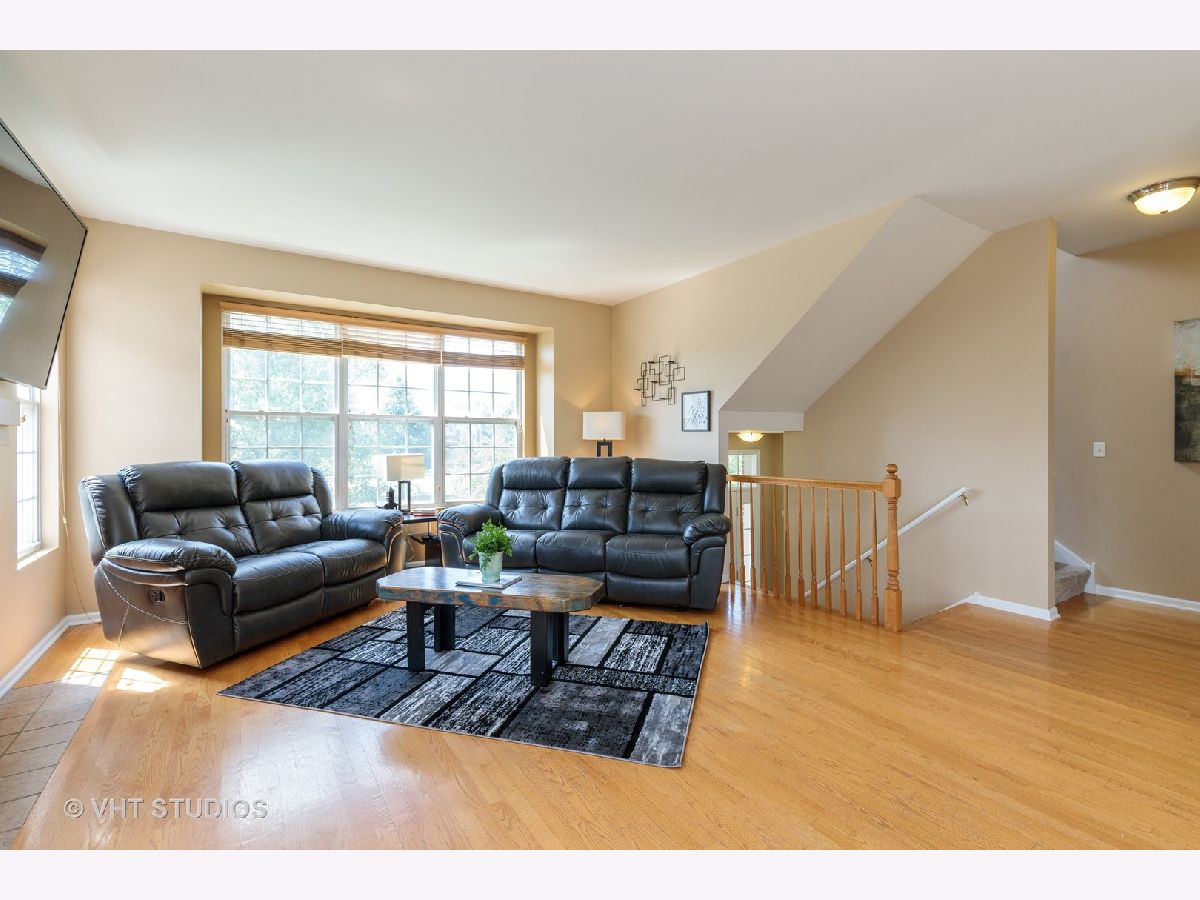 Gorgeous end-unit TownHome in highly desired Village Station Subdivision!!!! This gem features 3 bright & sunny spacious levels. The home faces the beautiful park area and boasts professionally landscaped curb appeal. The main floor has a large open concept living/dining area with hardwood floors and a fireplace in the living room. The dining room transitions into the large eat-in Kitchen which houses 42" cabinets & island and has a sliding door leading to the wrap-around balcony. Modern paint colors throughout the home. All 3 bedrooms are located on the 2nd floor - the Master Bedroom has Vaulted Ceilings and private Master Bath with updated standing shower. The homes Laundry is conveniently located on the 2nd floor by the bedrooms. The basement can be used as a second entertaining space, home gym, at-home office or an additional bedroom. Walking distance to Metra and the charming downtown area!