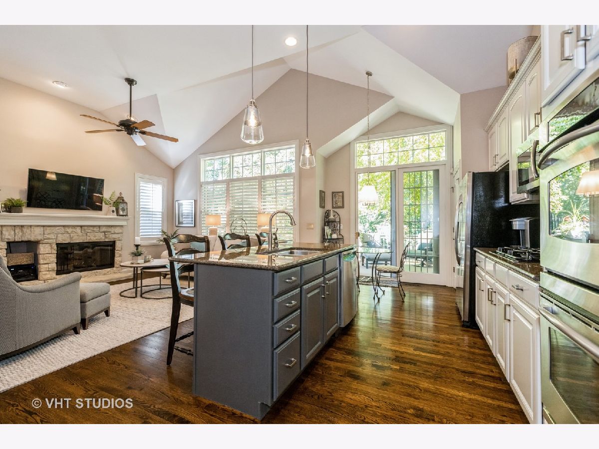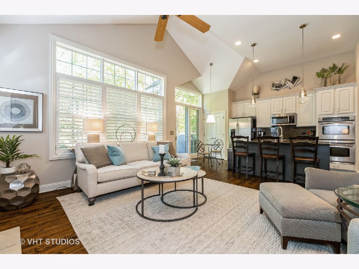 Absolutely stunning describes this home in Hobson Villas, Naperville's much sought after over 55 community. Tucked away in a premier interior location, you will love the beautiful designer like finishes throughout this meticulously maintained, so gently lived in home! Light, bright, open floor plan with soaring ceilings, hardwood floors, show stopping stone fireplace, gorgeous light fixtures and freshly painted in warm, neutral tones. Just move in and enjoy everything about this home!! Rarely available first floor master suite with his and hers walk in closets, plantation shutters, beautiful white kitchen with island, breakfast nook and double pantry, 2nd bedroom (currently used as an office) adjacent to full bath, full finished basement with a large family room features a wet bar with beverage fridge, exercise room, 3rd bedroom with access to a full bath, temperature controlled wine room and tons of storage space complete the interior. Step outside and enjoy the peace and serenity of the tranquil, wooded views from the trex deck. Professionally landscaped lot, 2 car garage and you can't beat the location near tons of shopping, expressways and 10 minutes from downtown Naperville and all the great shops, restaurants and wonderful river walk. You will love everything about this gorgeous home!! Furnace 2019, A/C 2020, roof and oversized gutters 2019 custom built in desk unit made for office included. Wine room condenser works great but is conveyed "as is".