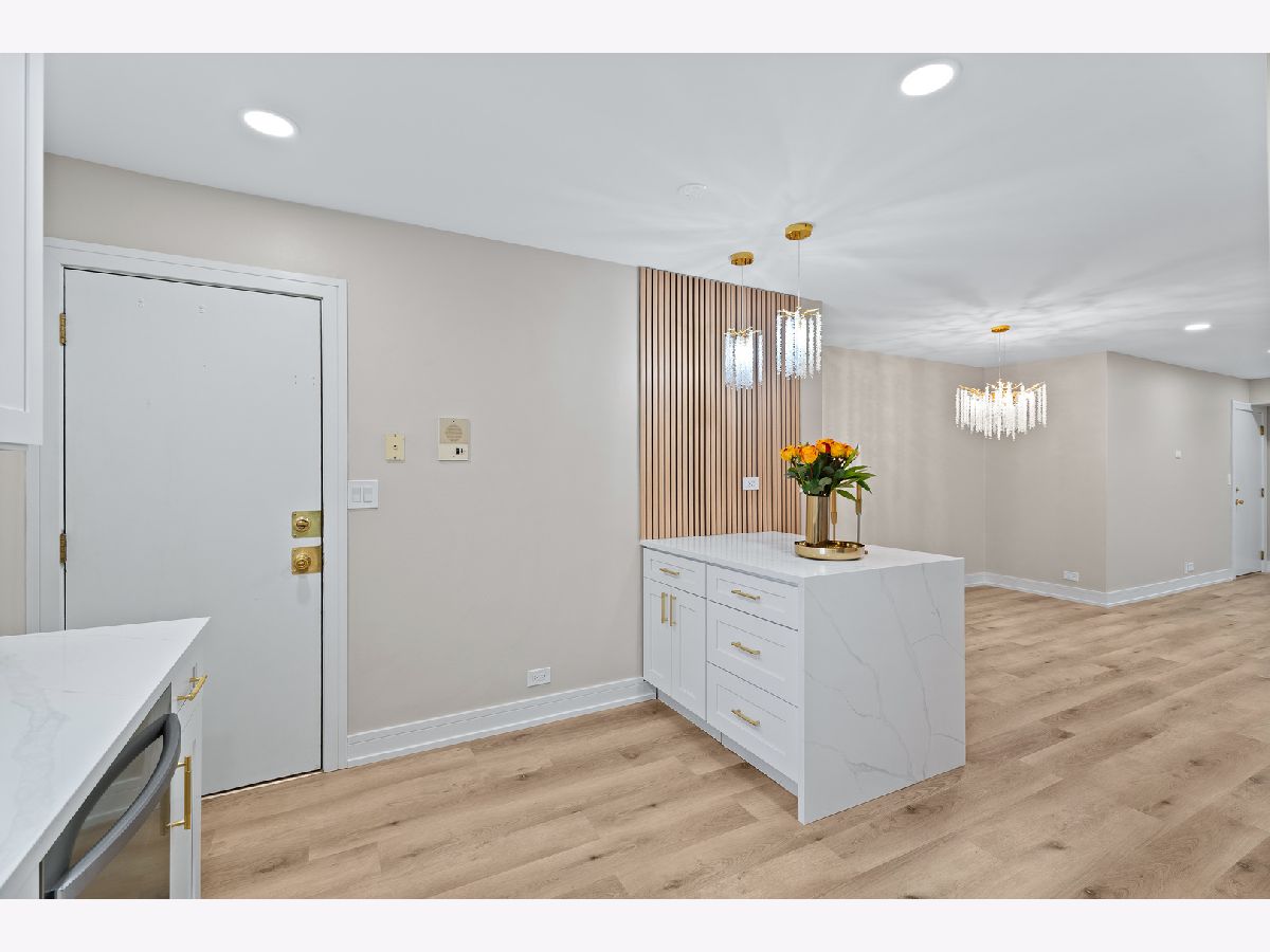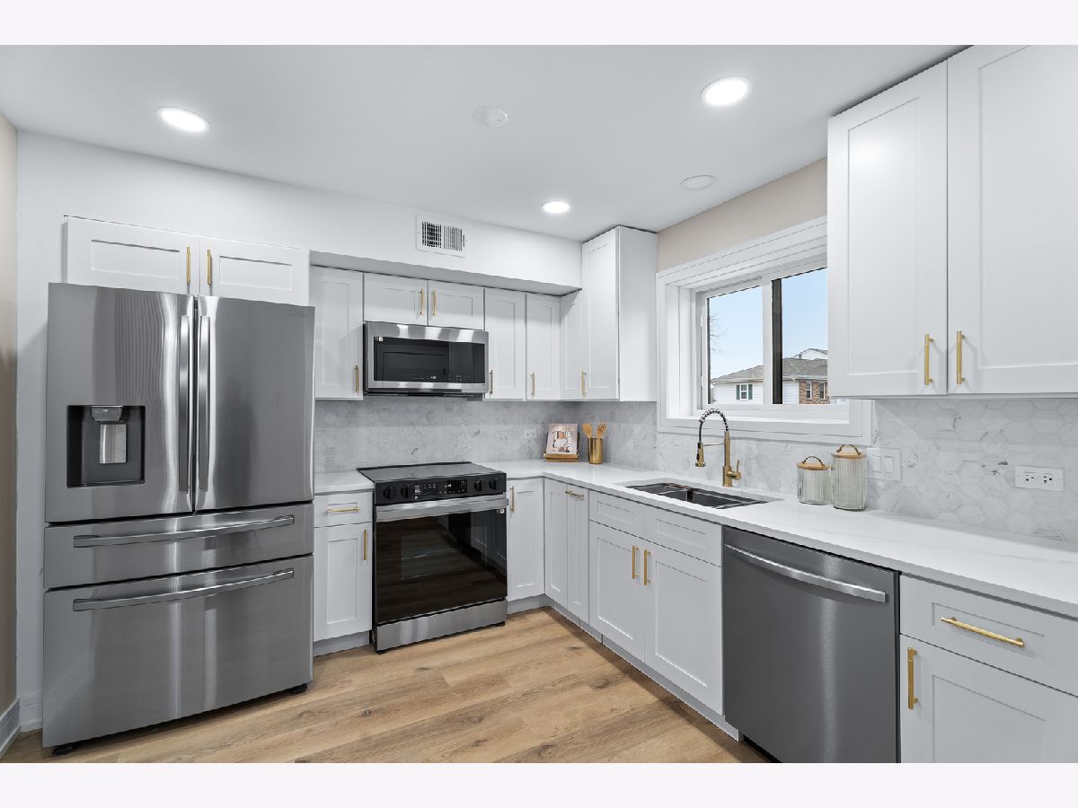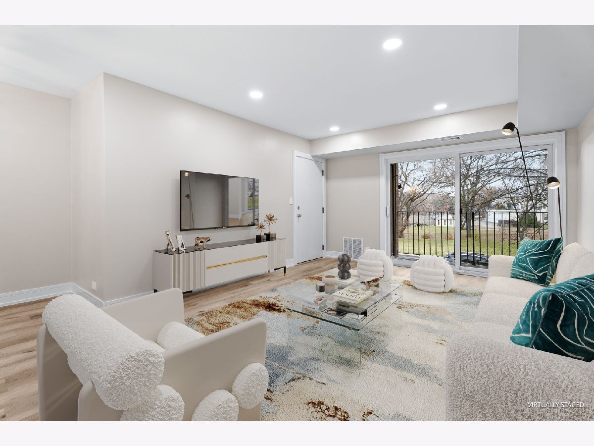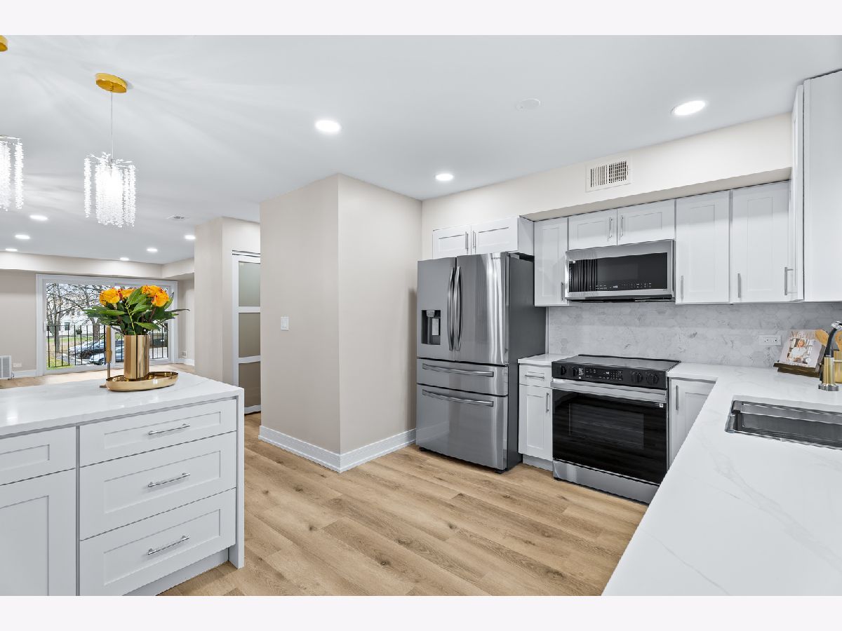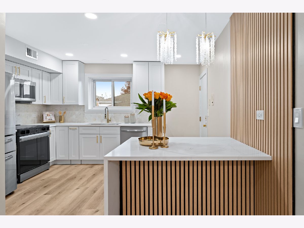 Beautifully Updated Condo in Prime Palatine Location. Welcome to this completely renovated, light-filled condo nestled in one of Palatine's most convenient neighborhoods-just minutes from charming local shops, great restaurants, and easy access to I-90. From the moment you walk in, the home feels fresh, modern, and thoughtfully designed. The stunning kitchen immediately catches your eye with its crisp white shaker cabinets, luxurious quartz countertops, and a gorgeous backsplash. The contemporary island, accented with warm slatted wood detailing, adds both style and functionality, while the elegant crystal pendant lights bring a touch of sophistication to the space. A window above the sink lets in wonderful natural light, and the brand-new stainless steel appliances complete the perfect modern kitchen setup. The open living and dining area flows effortlessly, highlighted by new vinyl flooring, fresh paint, and a beautiful chandelier that creates an inviting atmosphere. From here, step out onto your private balcony overlooking peaceful natural views-an ideal spot for your morning coffee or a relaxing evening. Both bathrooms have been completely redesigned with top-quality finishes. The primary suite features a spacious walk-in shower with modern lighting and warm, tasteful tile work that gives the space a spa-like feel. The second bathroom offers a fully updated bathtub and fresh, clean design. The unit also includes an in-unit washer and dryer, abundant closet space, and an oversized storage room conveniently located near the condo. Every inch of this home has been updated with care, offering a bright, modern, move-in-ready space that combines beauty with everyday practicality. If you're looking for a stylish, comfortable home in an unbeatable location, this one is truly a must-see.