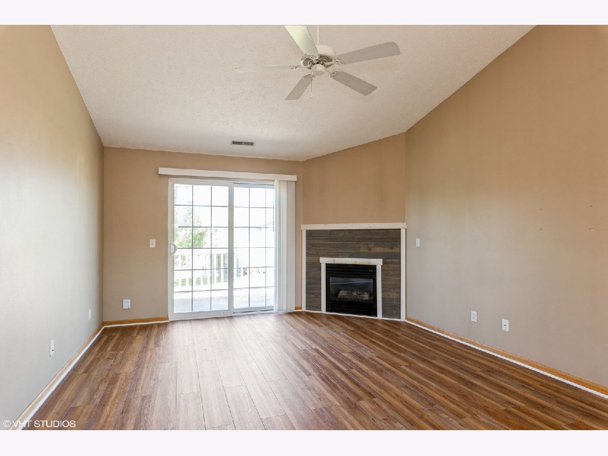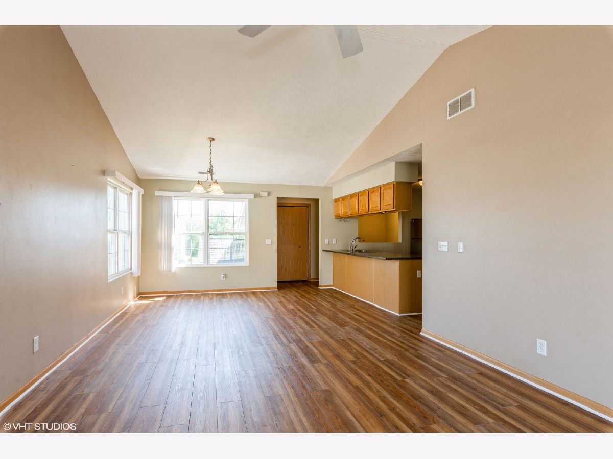 Spacious 2 Bedroom, 2 Bath Open Concept Condo! This End Unit is Move-In Ready!! Living Room features a Gas Fireplace, Vaulted Ceiling and Sliding Glass Doors to your Balcony! Newer Wood Laminate through Living Room and Dining Area. Close to Schools and Downtown. Close to Park and Walking Path. Great Location!!