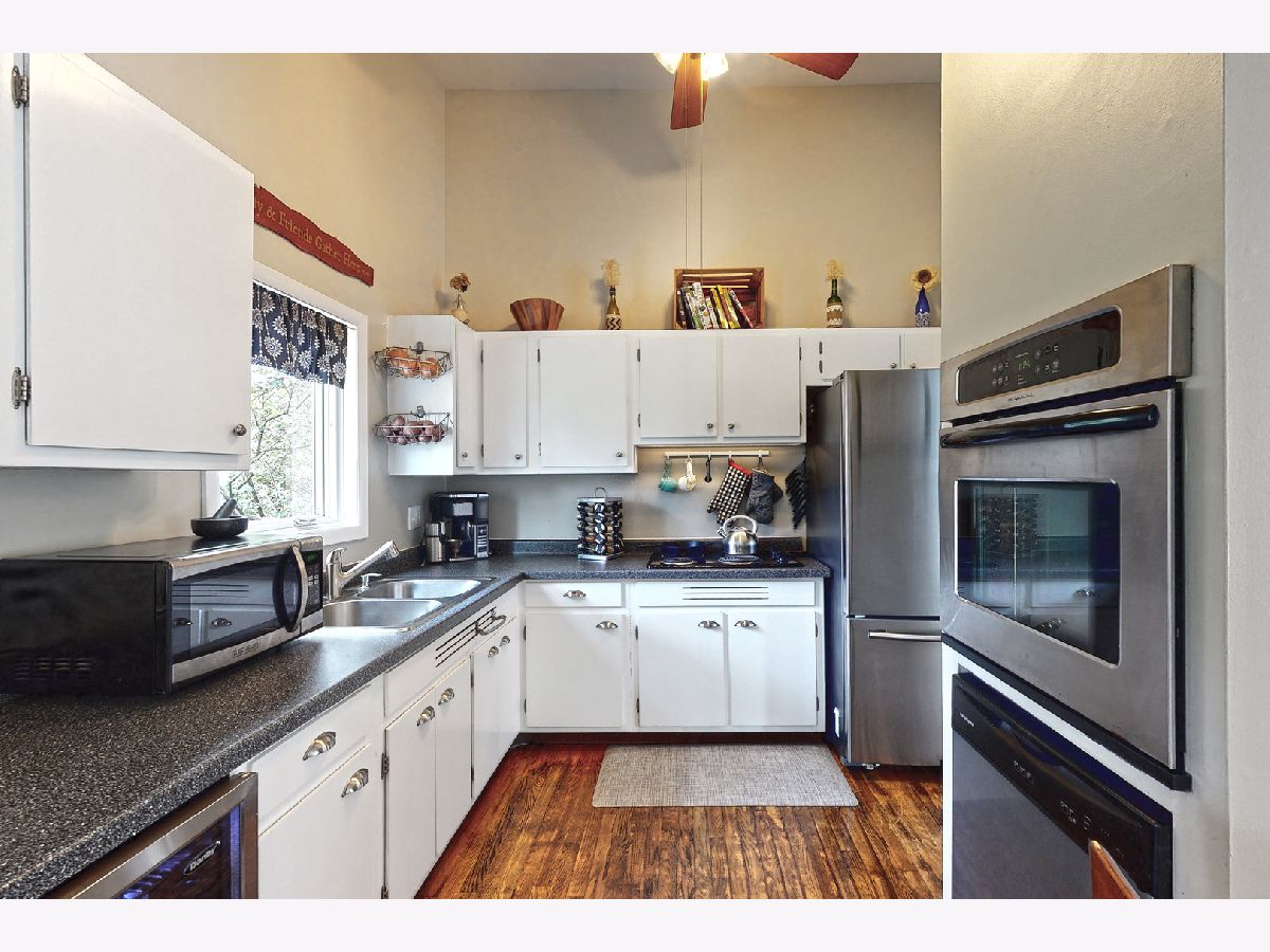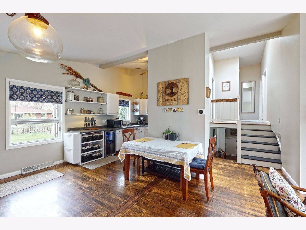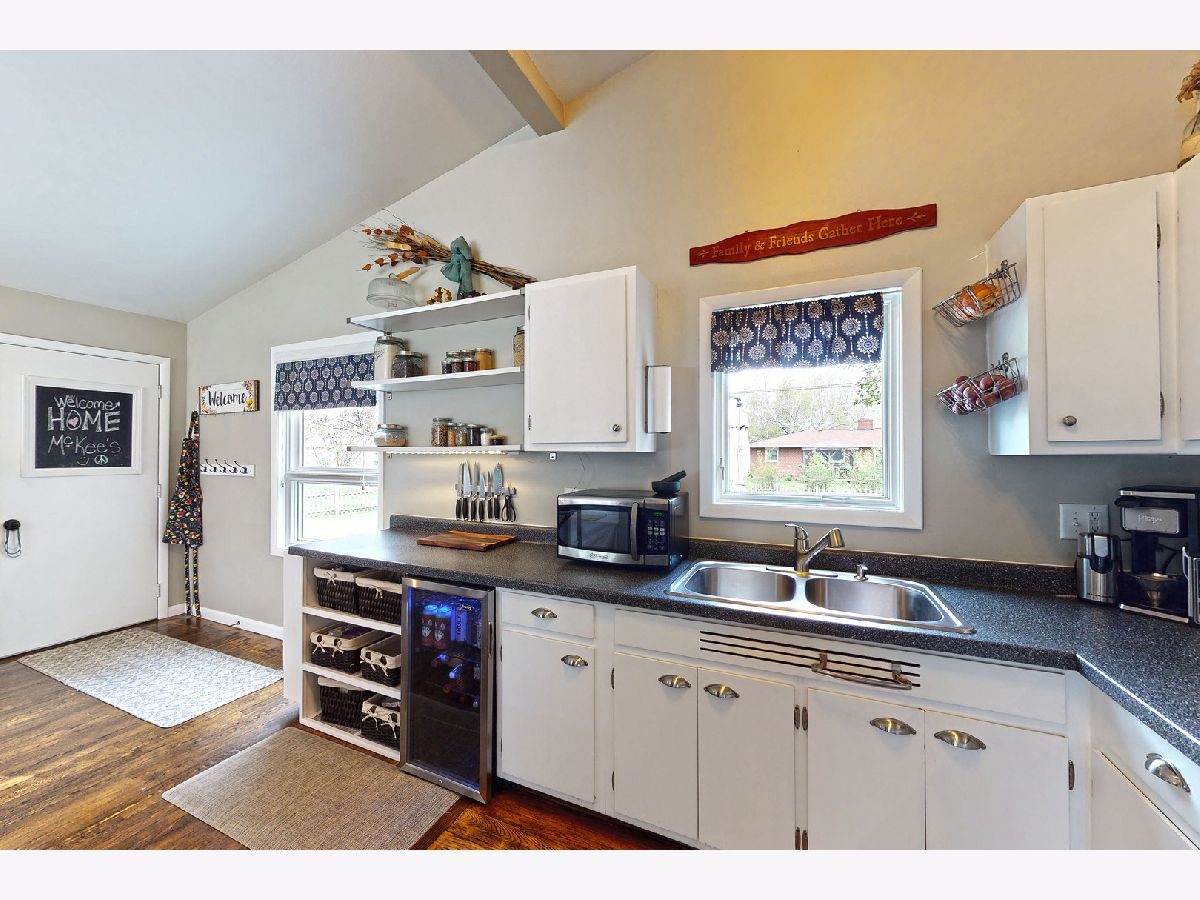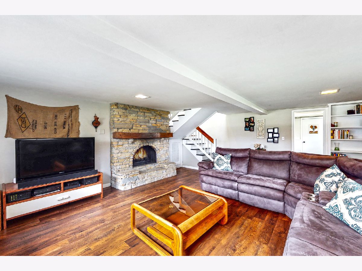 STUNNING MODERN MID-CENTURY 1,792 SQ. FT. HOME IN *UNINCORPORATED* SYCAMORE SHOWCASES A WOOD-BURN FIREPLACE IN THE LIVING ROOM AND STONE 2nd FIREPLACE WITH GAS LIT LOGS & BARN-WOOD BEAM MANTLE IN THE LOWER LEVEL FAMILY ROOM... WONDERFUL AMBIANCE INDEED! Living Room boasts 4 transom windows & 3 picture windows. Kitchen presents farm-style open shelving, wine cooler, stainless steel appliances, newer counter-tops, built-in oven & file drawer organizers. Abundant wood flooring, stunning light fixtures, vaulted ceilings & Pella windows complete this modern sun-filled home! Craftsman-style white spindled staircase displaying new skylight & track lighting lead you to updated full bath with railed shelving unit. Vaulted master bedroom features wood laminate floor & black enhanced doors & trim. Bedroom 2 & 3 host vaulted ceilings, closet organizers & ceiling light fans. Floor-to-ceiling stone fireplace with arched opening, barn-wood mantle, wainscoting, built-in bookcase, daylight windows & newer engineered wood scraped flooring add style & comfort to this bonus living area! "Pocket office" is a flex space with counter-top, cabinetry & shelving that offers direct access to the backyard. Laundry room combined with washer, dryer and a 1/2 bathroom, complete the lower level. Cedar & stone exterior, concrete patio, stone fire-pit, park-like mature trees, wooden play-set & partially fenced-in backyard... enjoy outdoor living at its finest! ***Contemporary Design house plans signed by the sellers will be conveyed to the new buyer!*** Recent improvements include a new well tank 2019, upper section new roof 2019, skylight 2019. Furnace and central air are approx. 2015 year installed.