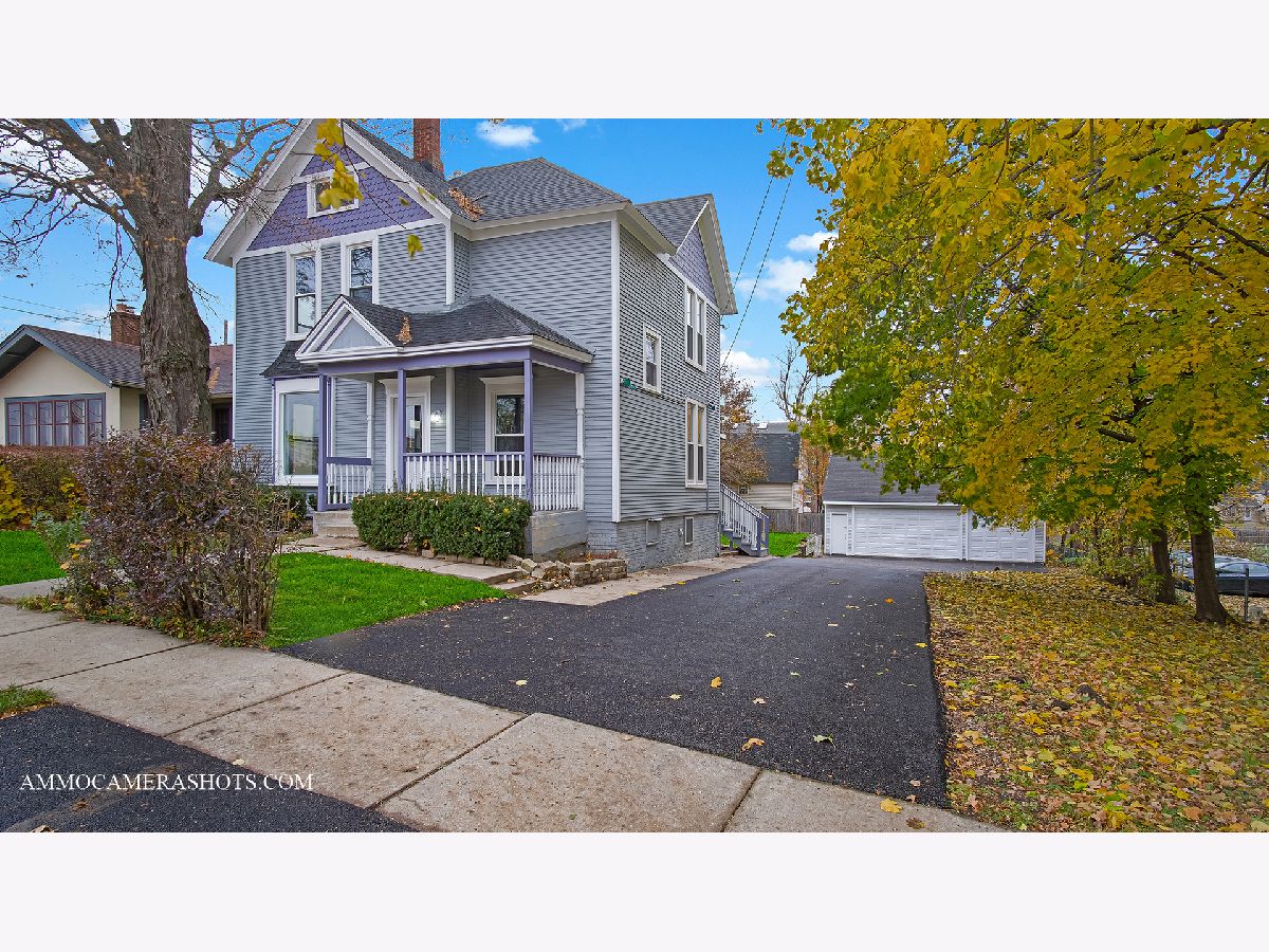 Captivating Historic Charm -NEW Modern features! Covered porches on both front and rear of home welcome you home! Enjoy hardwood flooring throughout 1st & 2nd floors of this beautiful home - includes 6 ft Thermal pane windows on main floor and 5 ft on second floor allowing an abundance of natural light in. (8.5 ft Ceilings main floor) COMPLETELY NEW KITCHEN & STAINLESS STEEL APPLIANCES TOO (Stove/Refrig/Microwave)! Sliding Glass door to rear Porch overlooking yard. Recessed lighting makes for bright nights throughout. You're sure to enjoy the 4 Generous Bedrooms (1 Located on the Main FLoor too!. There is 1 Full and 1 Half Bath, Grand Wood staircase to the second floor w/8' x 7' open landing, and even stairs to the unfinished 3rd floor too! Basement has a Walkout exit to the oversized yard area, loads of parking on long NEWLY PAVED Driveway and Oversized 3.5 car (32' x 24') Garage too! Just 1 block to Downtown area & Library - 3 blocks to the train station or Bicycle Prairie path- 5 blocks to the Deluxe Turtle Splash City Pool and Reed Keppler Park!