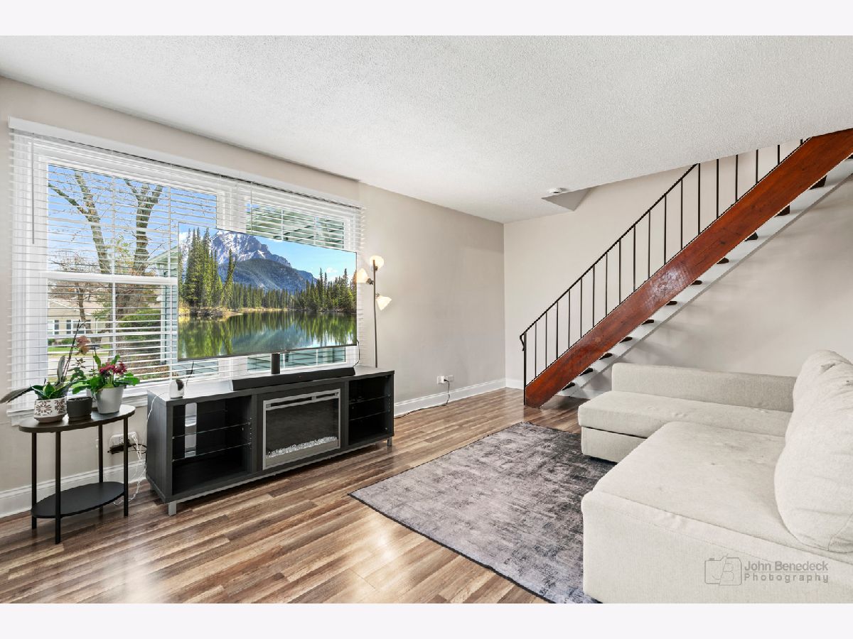 Charming 2-story townhome with a 1-car garage located in the desirable Cambria Subdivision. This home features an open floor plan with a dining area in the kitchen, granite countertops, and all appliances included - plus in-unit laundry with washer and dryer. Upstairs offers a spacious primary suite with a walk-in closet and a generously sized second bedroom. Wood laminate flooring throughout. Enjoy maintenance-free living in a welcoming community - an ideal starter home! Conveniently located near I-355 and North Avenue shopping.