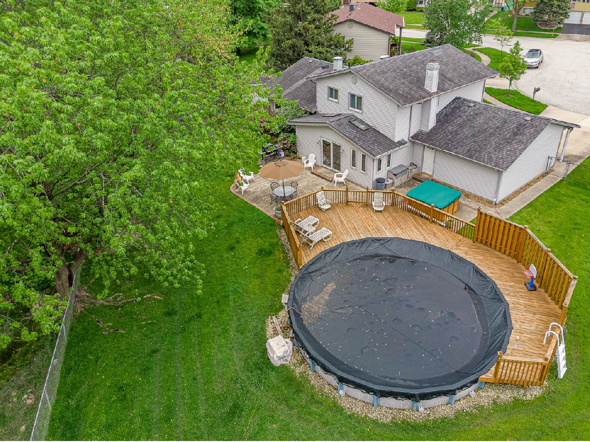 This meticulously maintained home is a true gem! Open concept kitchen, Dining Room, and Living room make the perfect space to entertain or have large family gatherings. Updated kitchen features all stainless-steel appliances, beautiful maple cabinets, Corian countertops, custom island with breakfast bar, 2 bay windows, and stunning hardwood floors. The family room has a large addition for an additional living space with a wet bar and cozy gas fireplace. Sliding patio doors have direct access to patio and backyard. Upstairs features 3 bedrooms highlighted by a spacious master bedroom with 2 closets, private master bath has a walk-in floor to ceiling tiled shower and glass shower door. Guest bathroom has dual sinks, tiled floor, tile surround in the tub/shower area. The 4th bedroom is located on the first floor and can also serve as a den, office, in-law, or workout room. Fully fenced backyard offers the largest lot in the neighborhood with a partial underground heated pool, custom child safe deck, large patio, hot tub, shed, garden, and a stunning view of the luscious green open space. Walking distance to pond, playground, tennis, or basketball courts. Finished basement provides spacious room for laundry and work area as well as additional storage or another living space. All 3 schools are currently A+ rated. Easy access to 290, 390, 53/355 without traffic noise. Located in a well-established neighborhood, close to restaurants, entertainment, shopping, tons of parks nearby, and the Elk Grove Park District offers many kid friendly amusement parks within the community. Perfect move in ready home for the whole family!
