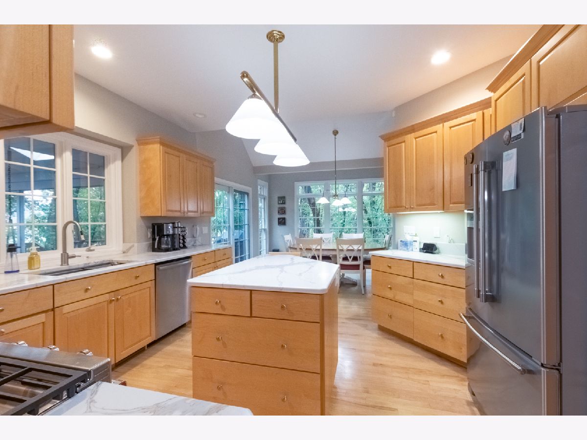 Location, Location, Location! Not only is this on the culdesac, but it also backs to the Mooseheart Lakes and woods for wonderful nature and back privacy. Relax on the deck or enjoy the comfortable screened in porch. Move inside to the gorgeous two-story Great room, lovely kitchen with new modern granite counters, large open dining area, first floor master and spacious den. It doesn't stop there.....move downtairs to the finished basement with nearly a full kitchen including a full size fridge and dishwasher. This lower level contains full walkout access with a second master suite.