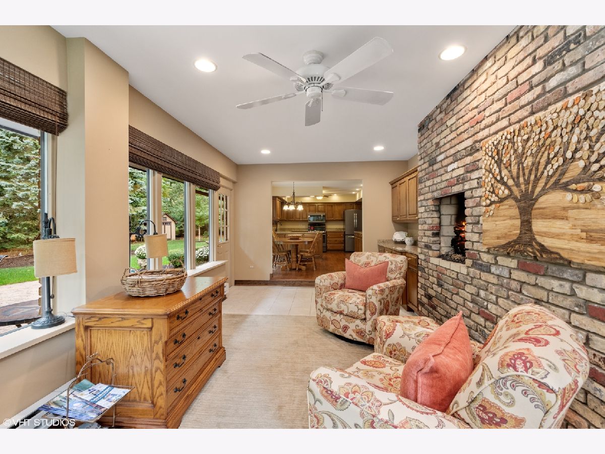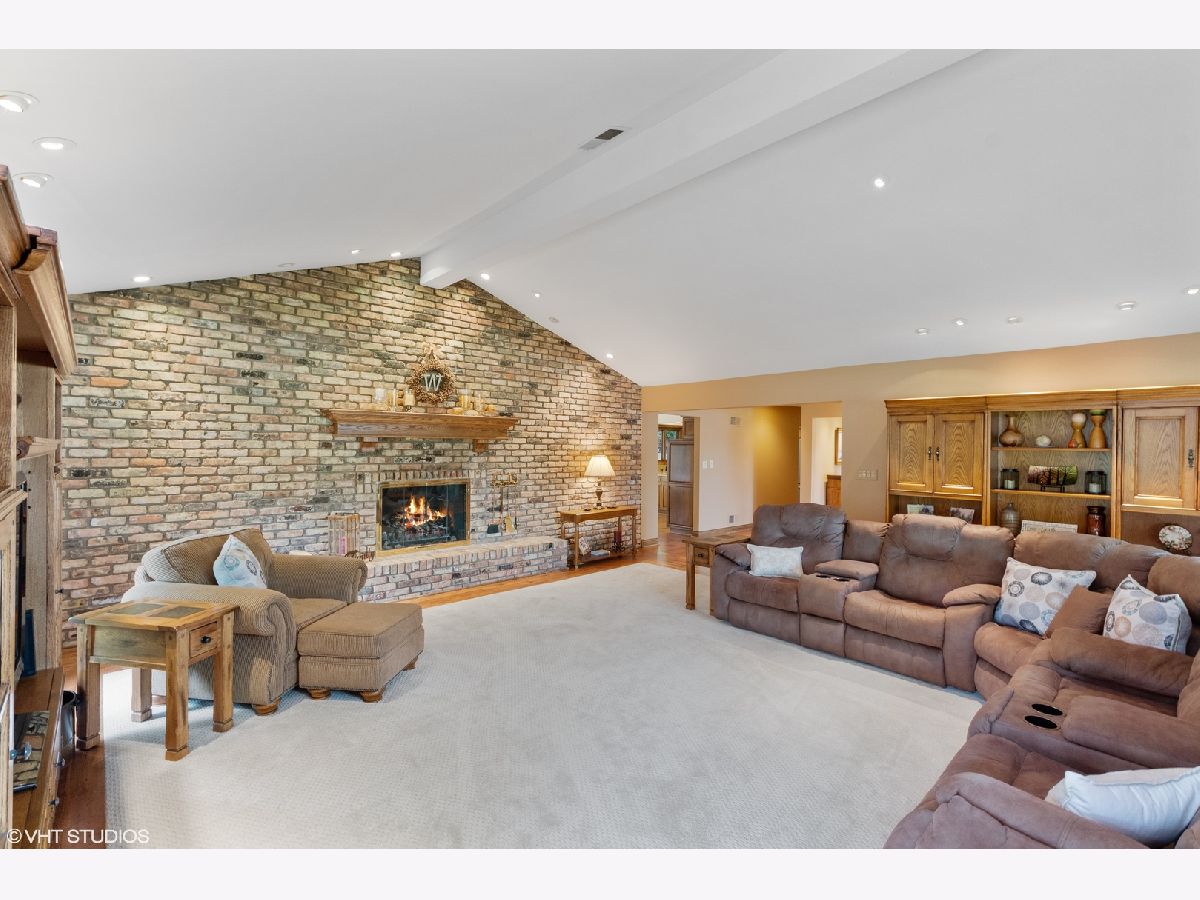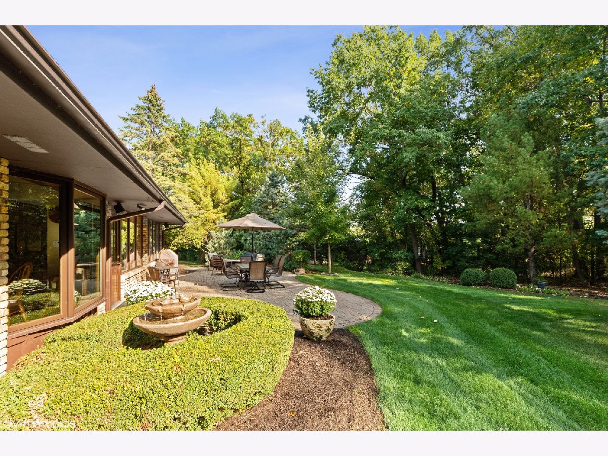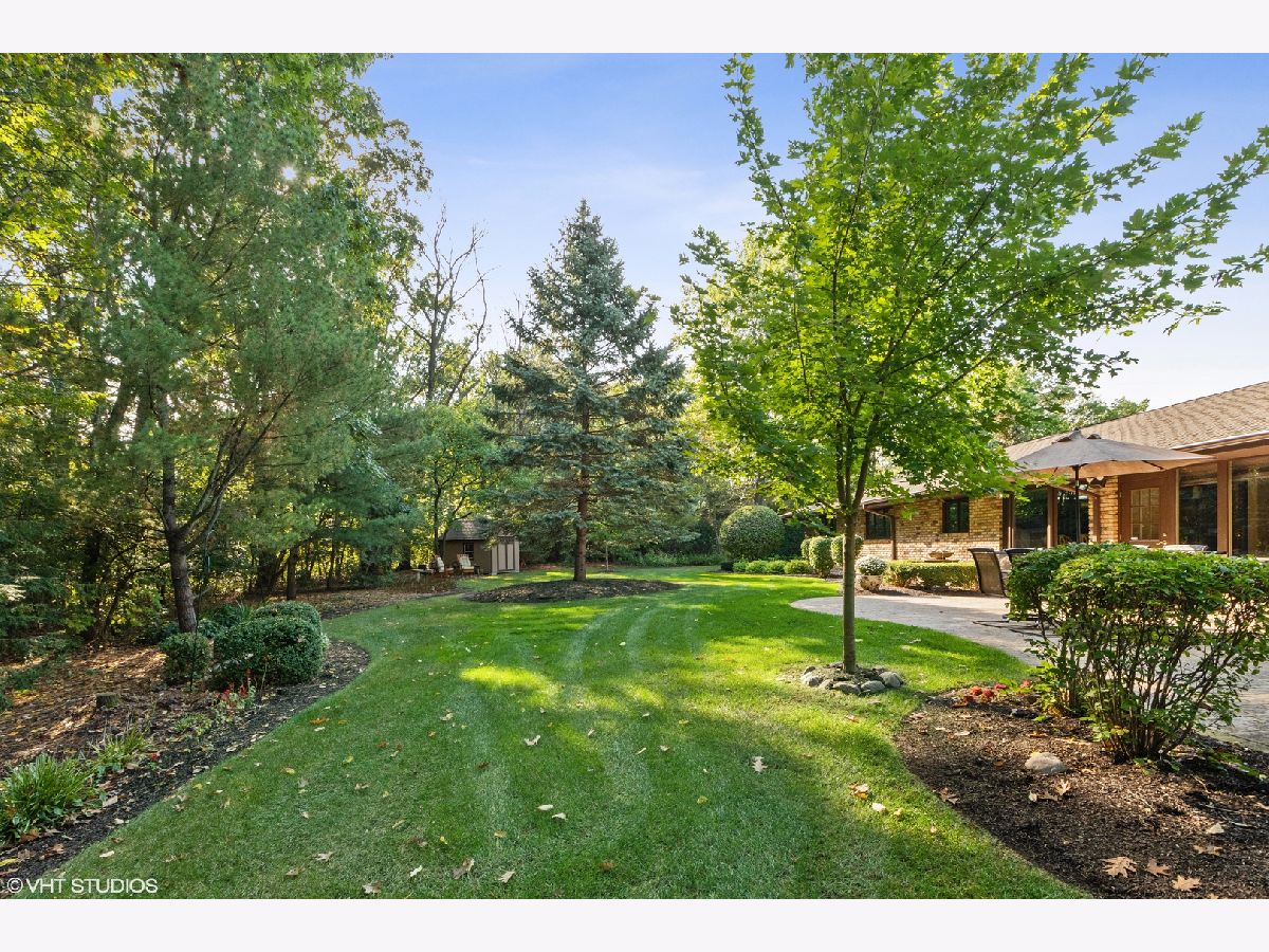Custom, sprawling brick ranch set on a lush private wooded lot. Welcoming entry with designer lighted ceiling opens to huge great room with brick fireplace wall and vaulted ceiling. Stunning hardwood flooring. Warm kitchen offers loads of cabinets, buffet area and granite countertops adjoins the sunroom with built ins and second fireplace. Enjoy the views of the spectacular yard from paver patio. Master bed bath recently updated, Full finished basement with expoed brick walls, wet bar, 4th and 5th bedrooms, exercise room and storage room.