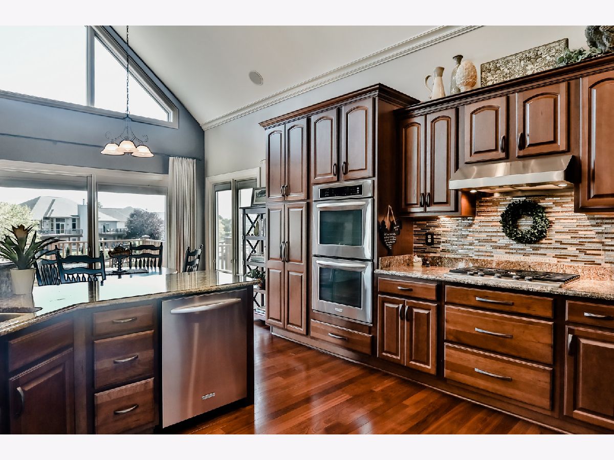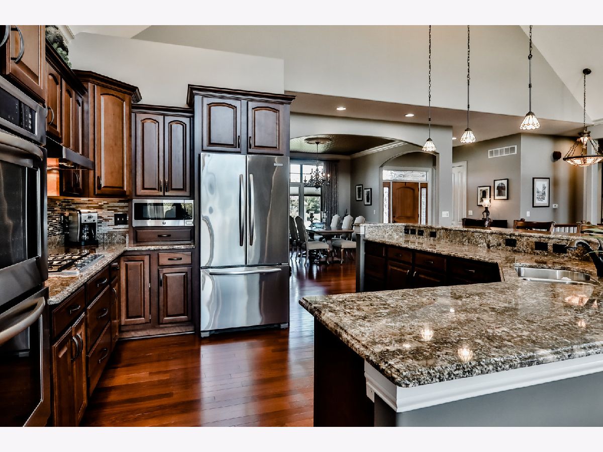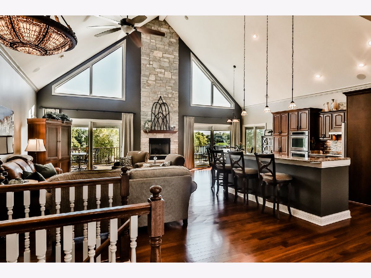 Stunning, inside and out, this one owner, custom ranch features huge, open, yet comfortable spaces, abundant light, and relaxation throughout. A spectacular 20+ ft stone fireplace framed by oversize windows highlights the first floor plan which flows perfectly with open kitchen featuring custom granite counters, dual ovens, cherry cabinets and SS appliances. Master suite with vaulted tray ceiling, two walk-in closets, custom tile shower, cozy fireplace, and private balcony. The walkout lower level features all of the finishes and open flow of the main level, a wet bar, game area, fireplace, fourth bedroom, bathroom w/oversize whirlpool tub and tons of storage. The river view decks, spacious brick paver patio, outdoor kitchen and 240+ ft of canal frontage are ideal for outdoor entertaining or relaxing! Be on the water in minutes or just watch the boats troll by. 4+ car garage with high ceilings. List of more than 24 major owner-upgrades available. 3700+ sf.