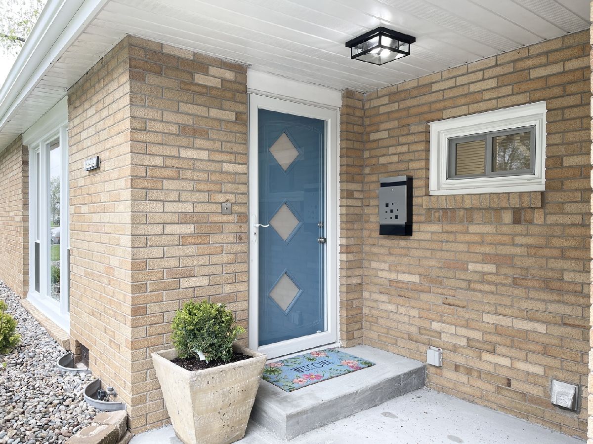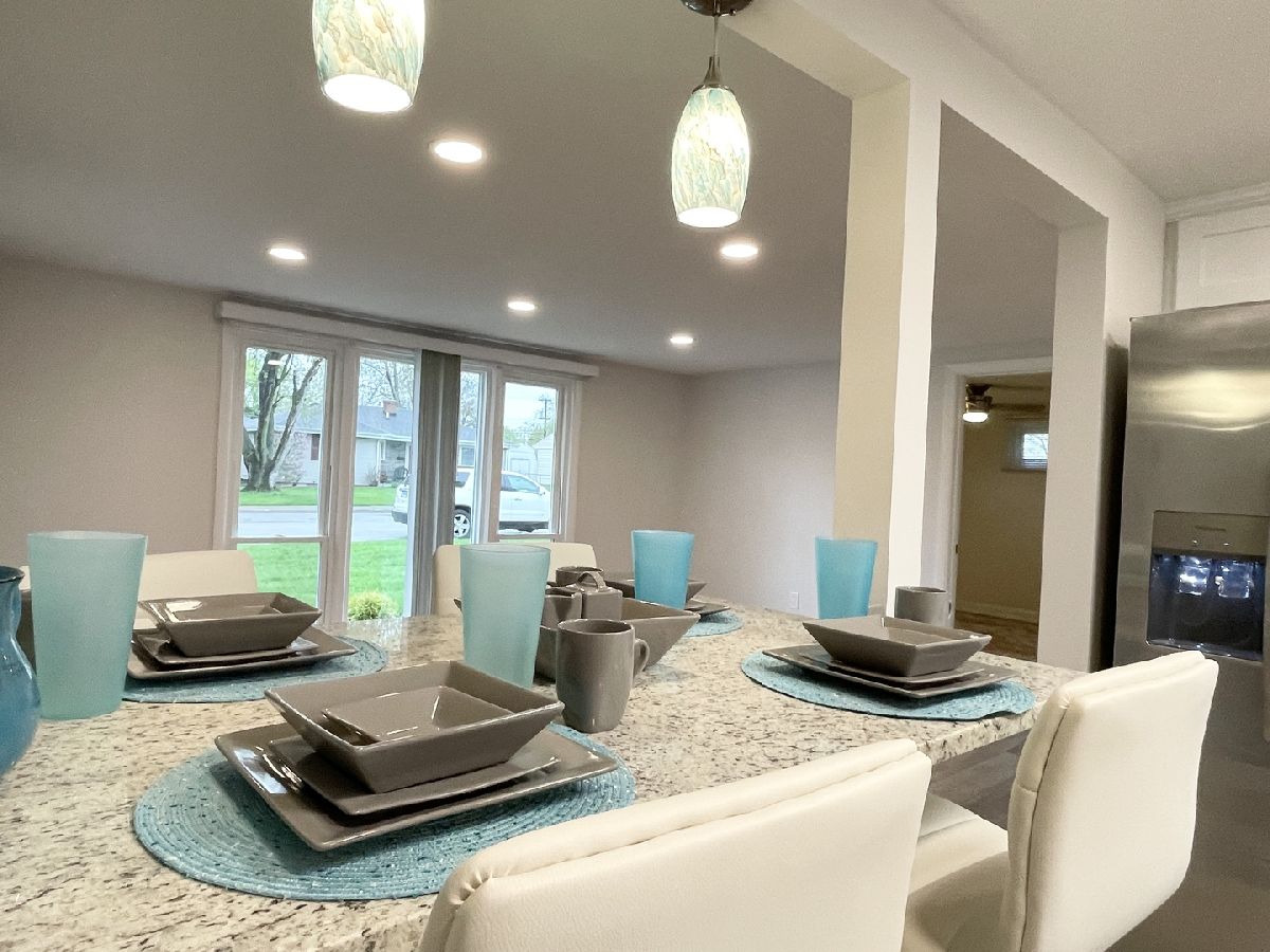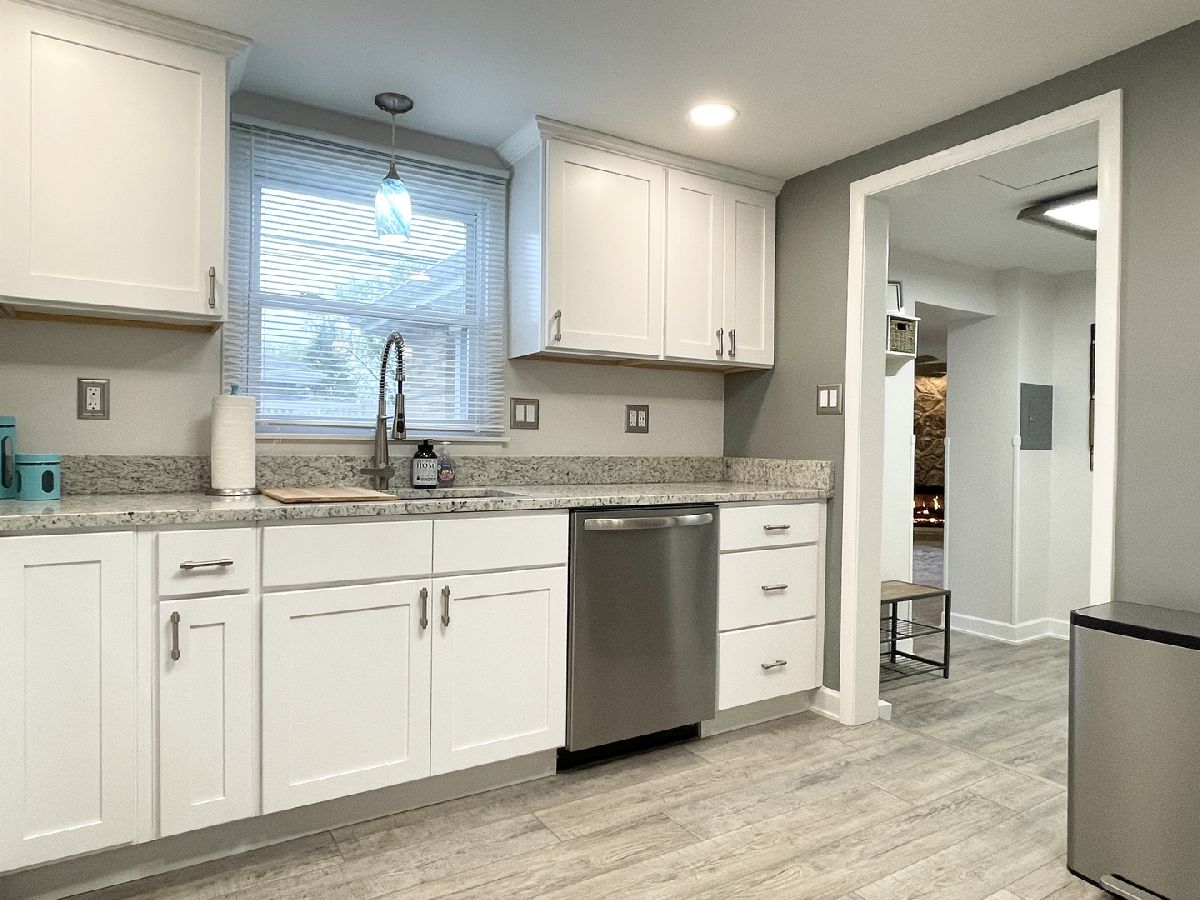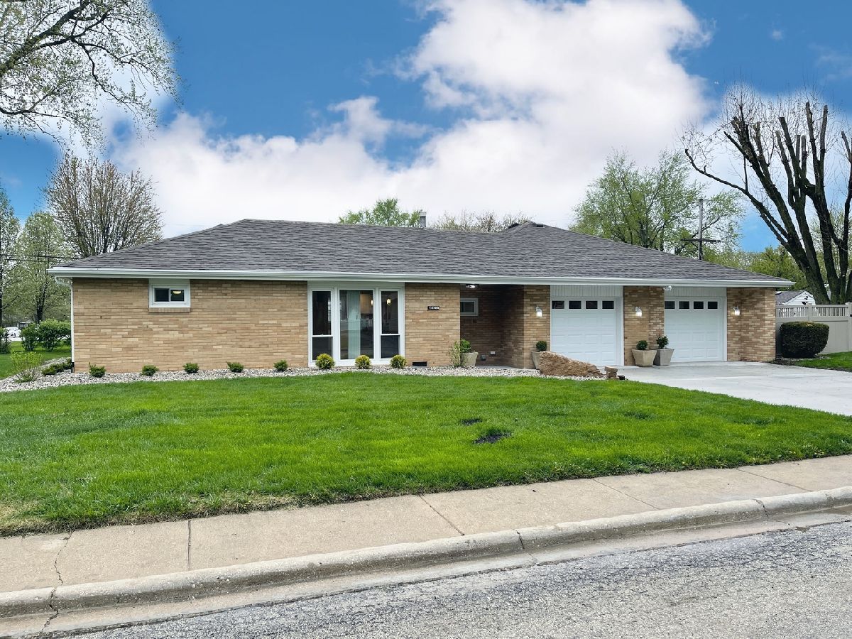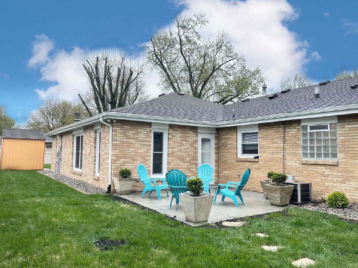 Stunning 1950s All-Brick Ranch-Completely Remodeled in 2022. Step into timeless charm blended with modern convenience in this fully renovated all-brick ranch from the 1950s. Every detail of this home has been thoughtfully updated (2022) to create a Mid-Century Modern living experience. The kitchen features sleek cabinetry, granite counter-tops, a breakfast bar that functions as a table for 4 people, stainless steel appliances, and durable vinyl plank flooring that flows throughout the entire home. Both bathrooms have been fully remodeled. The full bath has a designer raised vanity, penny tiles on the floor and subway tiles on the walls. The windows and modern lighting ensure a bright, inviting atmosphere. The attached two-car garage boasts a beautiful epoxy floor, cabinetry, a storage rack, and a car charger for your electric vehicle. A partition wall adds valuable extra storage space, keeping your garage organized and functional. Inside, the spacious family room features a cozy gas fireplace. The third bedroom, tucked at the back of the house near a half bath and the back entrance, offers privacy and versatility as it may be an ideal office. The large laundry room includes washer and dryer, a sink and a large cabinet ideal for storage and a folding counter. The mud room off the garage and laundry room is great for removing coats and shoes before entering the main home. Outside, enjoy a generously sized fenced-in yard with a useful shed-perfect for outdoor hobbies and entertaining.The freshly poured concrete driveway and patio are complemented by professional landscaping with river rock and an impressive granite boulder by the front walk-way creating a welcoming curb appeal. This home effortlessly balances classic character with today's modern amenities. Call today to schedule your private showing! Agent owned.