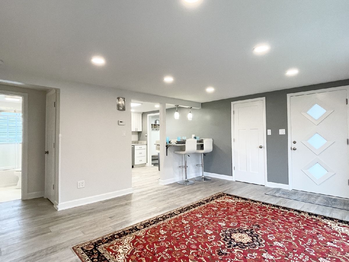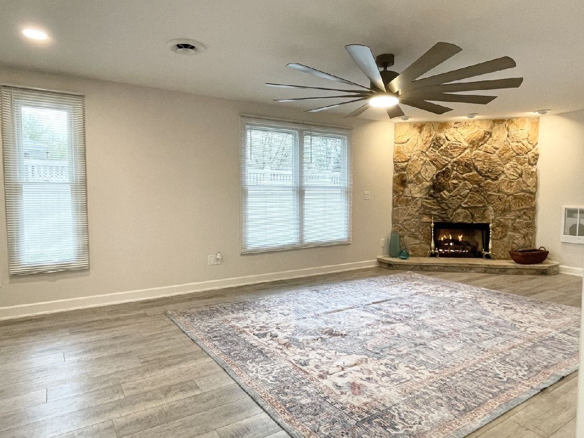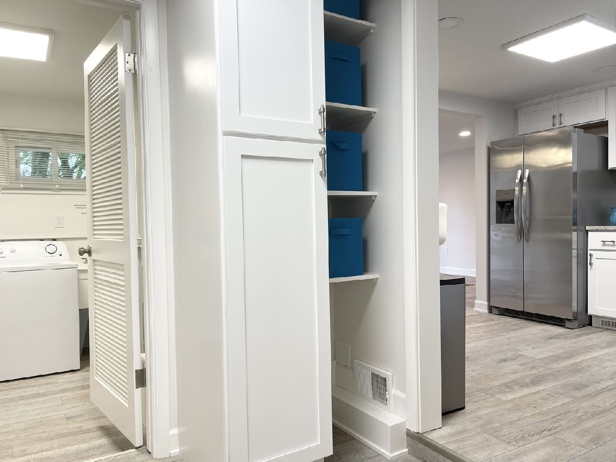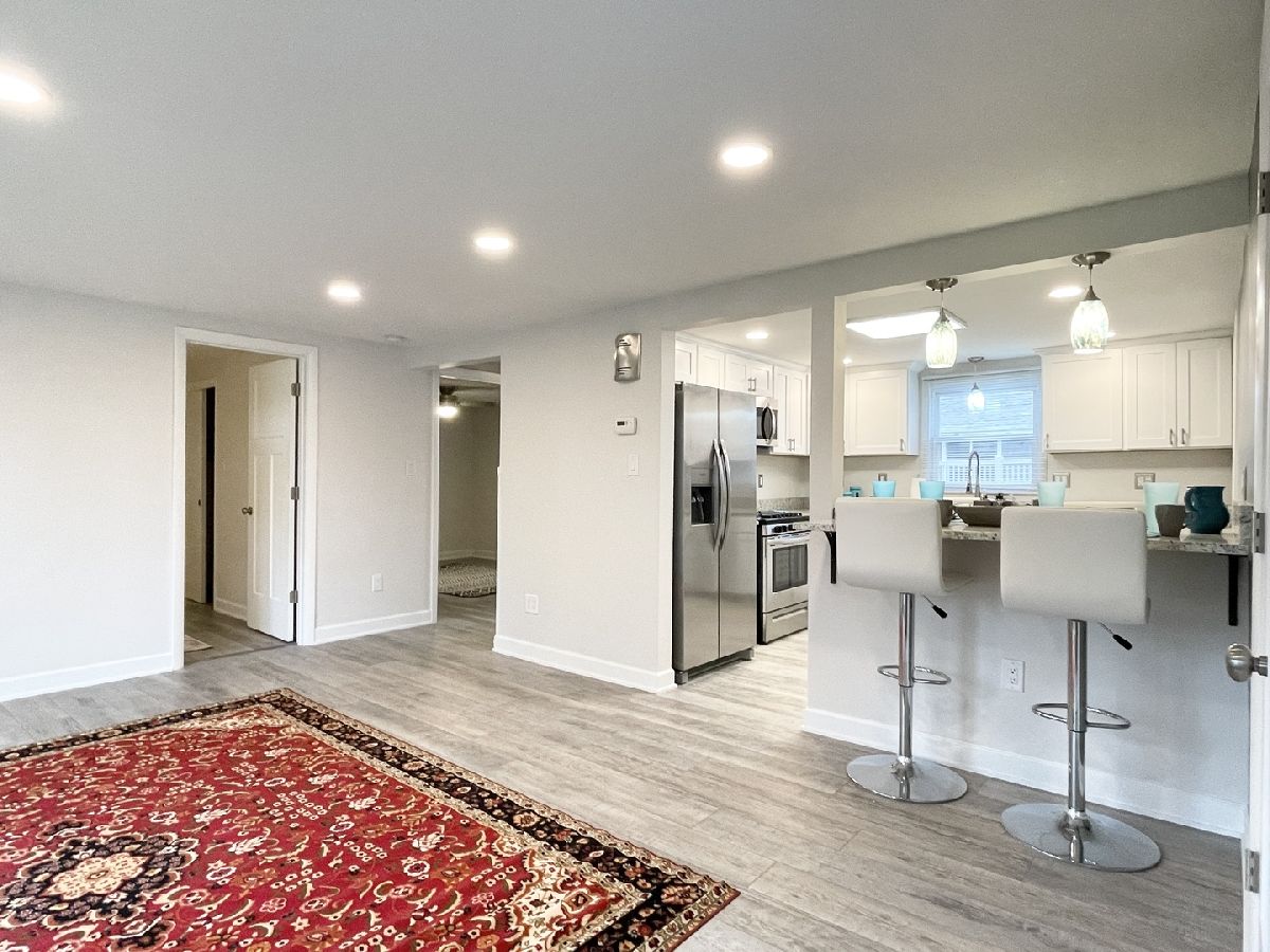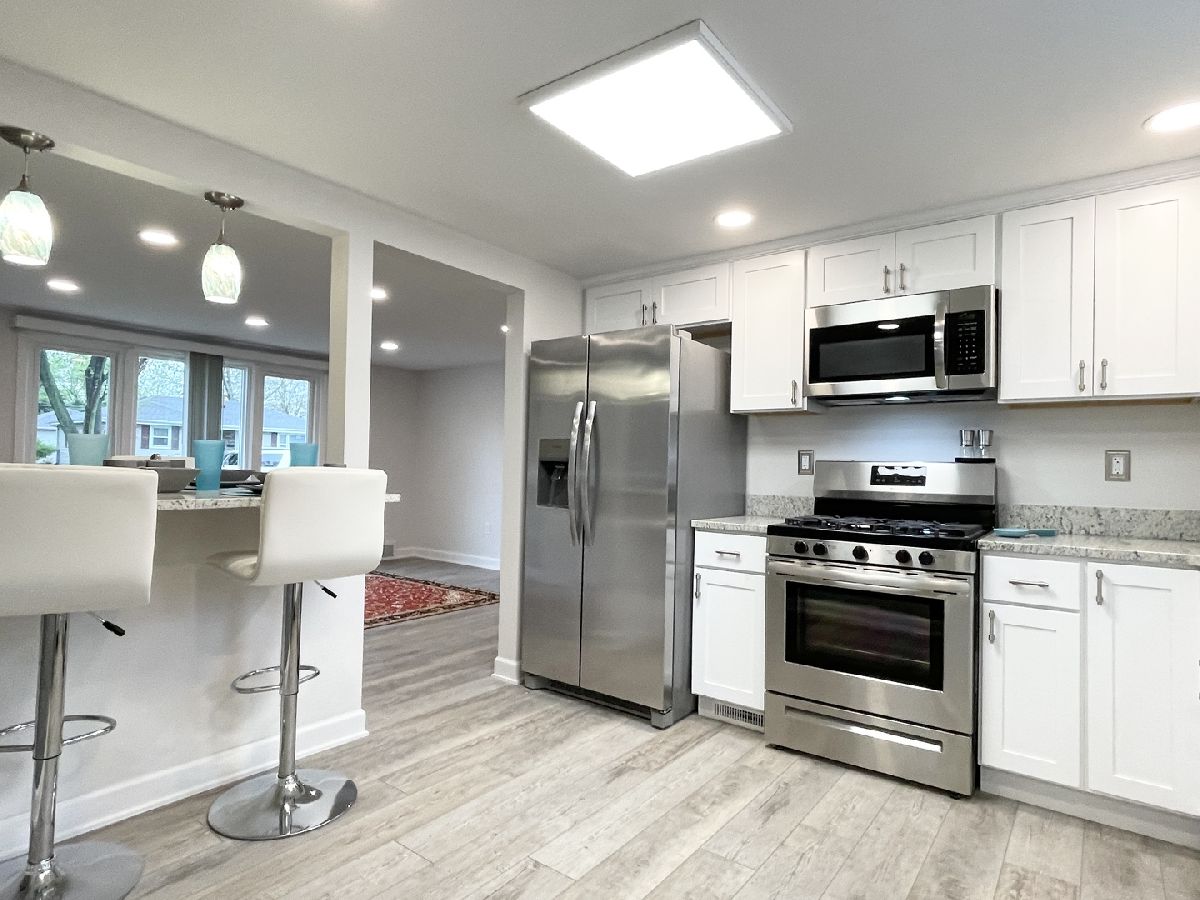 Stunning 1950s All-Brick Ranch-Completely Remodeled in 2022. Step into timeless charm blended with modern convenience in this fully renovated all-brick ranch from the 1950s. Every detail of this home has been thoughtfully updated (2022) to create a Mid-Century Modern living experience. The kitchen features sleek cabinetry, granite counter-tops, a breakfast bar that functions as a table for 4 people, stainless steel appliances, and durable vinyl plank flooring that flows throughout the entire home. Both bathrooms have been fully remodeled. The full bath has a designer raised vanity, penny tiles on the floor and subway tiles on the walls. The windows and modern lighting ensure a bright, inviting atmosphere. The attached two-car garage boasts a beautiful epoxy floor, cabinetry, a storage rack, and a car charger for your electric vehicle. A partition wall adds valuable extra storage space, keeping your garage organized and functional. Inside, the spacious family room features a cozy gas fireplace. The third bedroom, tucked at the back of the house near a half bath and the back entrance, offers privacy and versatility as it may be an ideal office. The large laundry room includes washer and dryer, a sink and a large cabinet ideal for storage and a folding counter. The mud room off the garage and laundry room is great for removing coats and shoes before entering the main home. Outside, enjoy a generously sized fenced-in yard with a useful shed-perfect for outdoor hobbies and entertaining.The freshly poured concrete driveway and patio are complemented by professional landscaping with river rock and an impressive granite boulder by the front walk-way creating a welcoming curb appeal. This home effortlessly balances classic character with today's modern amenities. Call today to schedule your private showing! Agent owned.