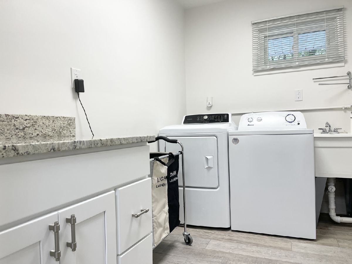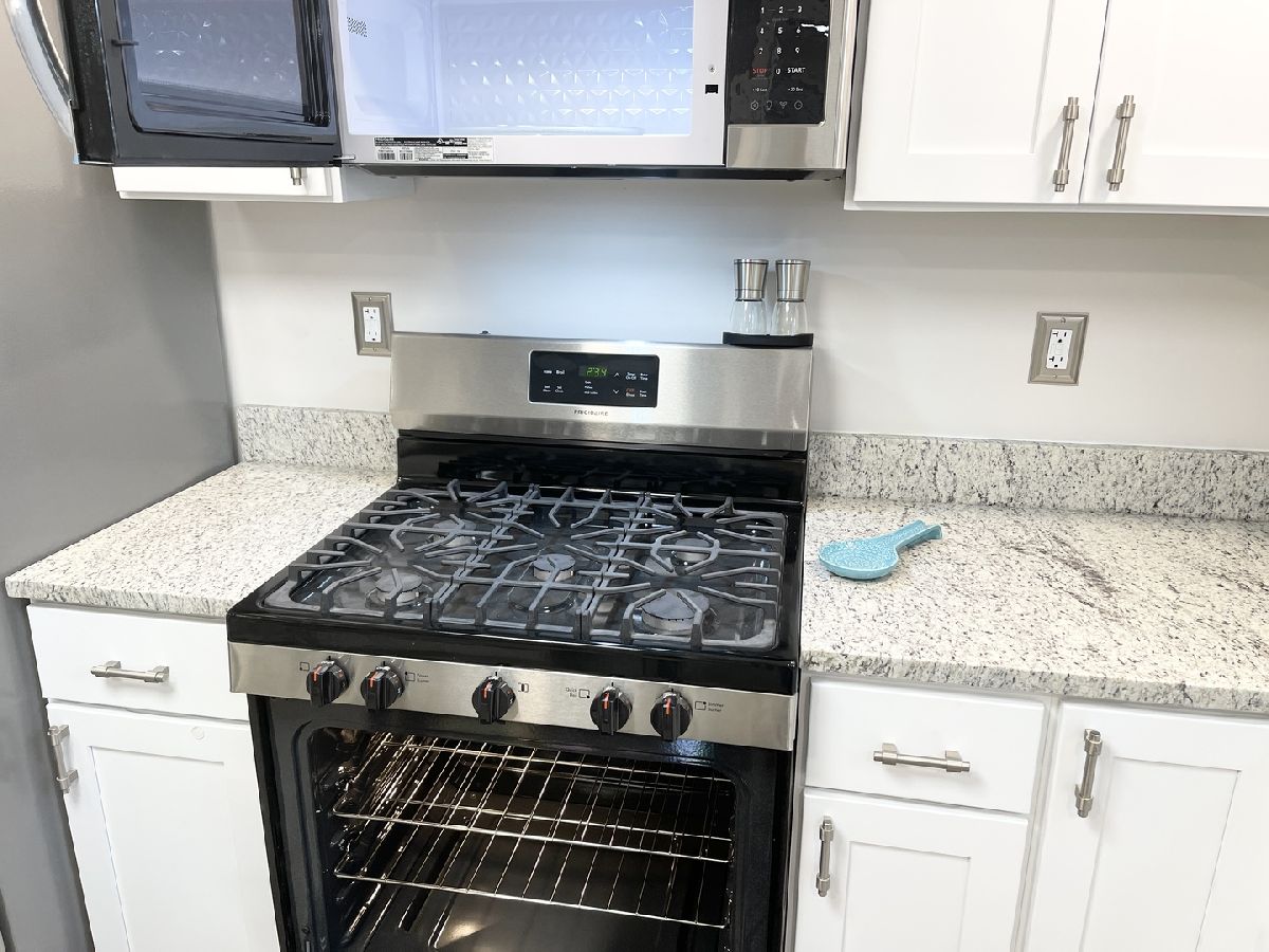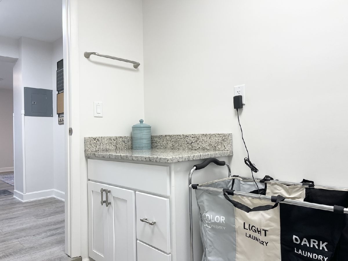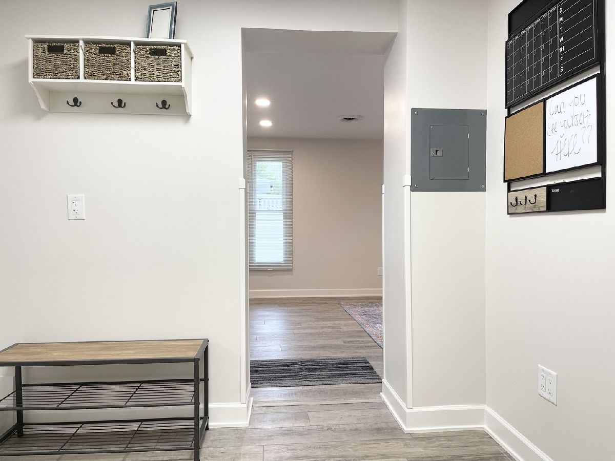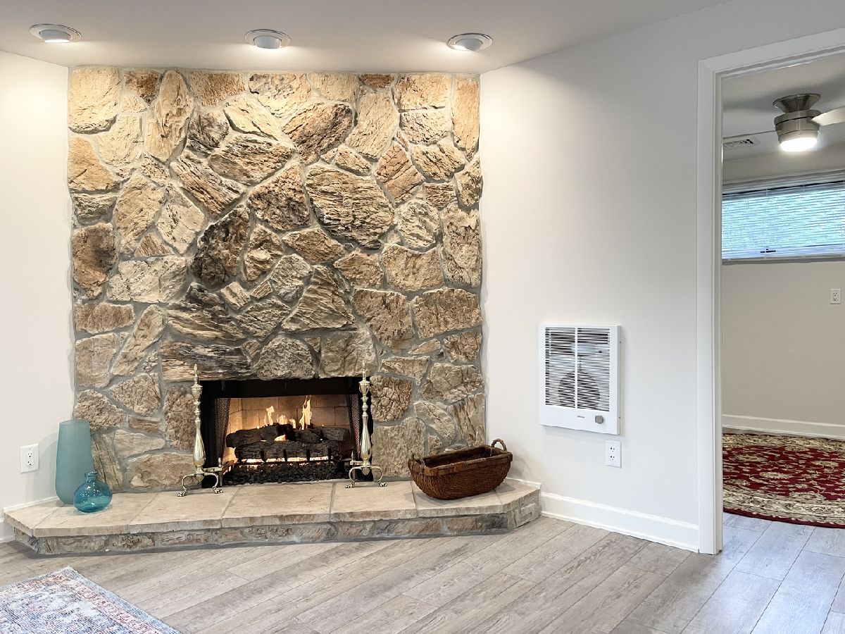 Stunning 1950s All-Brick Ranch-Completely Remodeled in 2022. Step into timeless charm blended with modern convenience in this fully renovated all-brick ranch from the 1950s. Every detail of this home has been thoughtfully updated (2022) to create a Mid-Century Modern living experience. The kitchen features sleek cabinetry, granite counter-tops, a breakfast bar that functions as a table for 4 people, stainless steel appliances, and durable vinyl plank flooring that flows throughout the entire home. Both bathrooms have been fully remodeled. The full bath has a designer raised vanity, penny tiles on the floor and subway tiles on the walls. The windows and modern lighting ensure a bright, inviting atmosphere. The attached two-car garage boasts a beautiful epoxy floor, cabinetry, a storage rack, and a car charger for your electric vehicle. A partition wall adds valuable extra storage space, keeping your garage organized and functional. Inside, the spacious family room features a cozy gas fireplace. The third bedroom, tucked at the back of the house near a half bath and the back entrance, offers privacy and versatility as it may be an ideal office. The large laundry room includes washer and dryer, a sink and a large cabinet ideal for storage and a folding counter. The mud room off the garage and laundry room is great for removing coats and shoes before entering the main home. Outside, enjoy a generously sized fenced-in yard with a useful shed-perfect for outdoor hobbies and entertaining.The freshly poured concrete driveway and patio are complemented by professional landscaping with river rock and an impressive granite boulder by the front walk-way creating a welcoming curb appeal. This home effortlessly balances classic character with today's modern amenities. Call today to schedule your private showing! Agent owned.