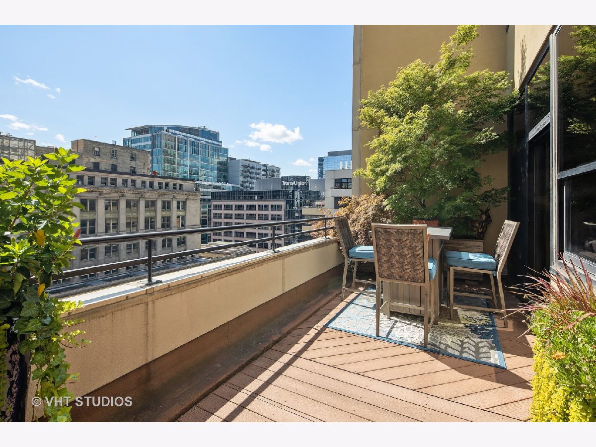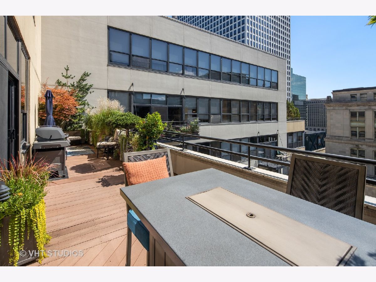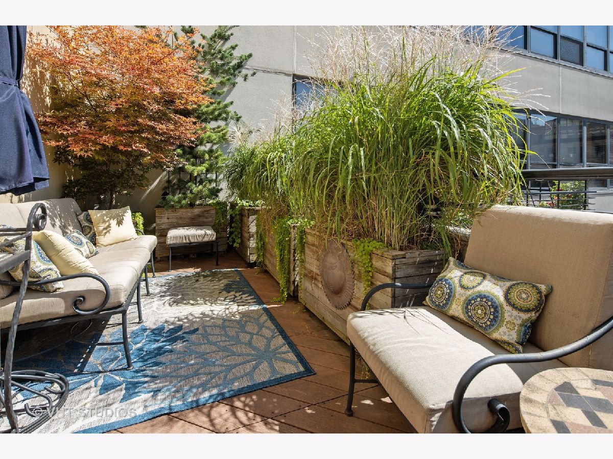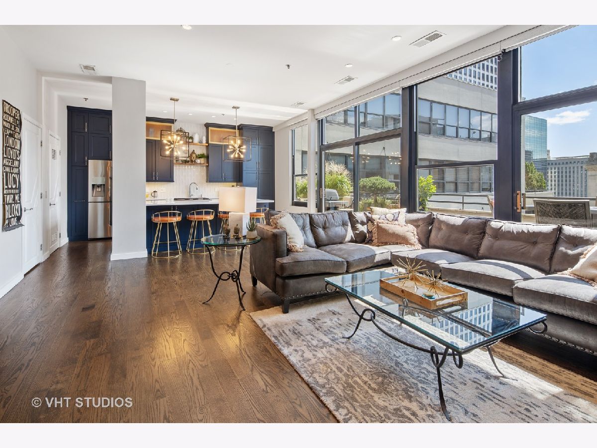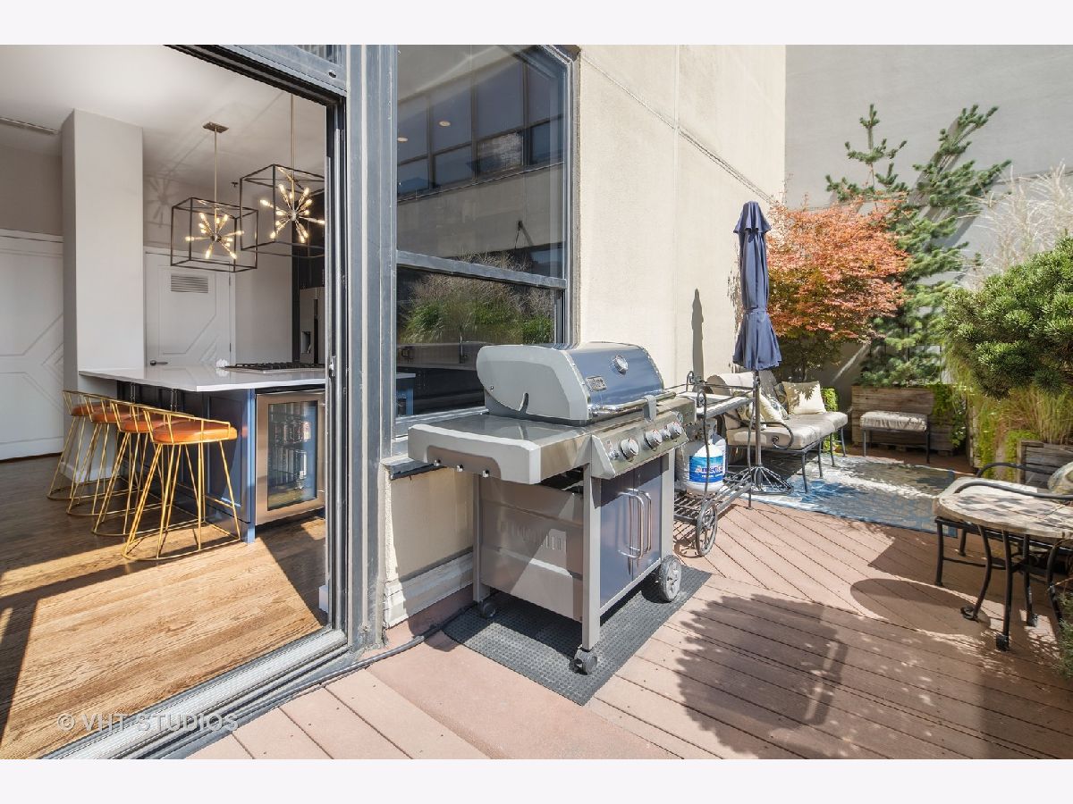 Seller is offering 2 years of monthly assessments at closing. Luxury and style await in this "show-stopper" penthouse with the most stunning chef's kitchen you will find. Features include a huge island with quartz counters, a beautiful custom backsplash, navy soft-close cabinets, a built-in pantry, and a suite of high-end stainless steel appliances that includes a wine refrigerator, and a built-in microwave that will delight any cook. The living room features floor-to-ceiling, wall-to-wall windows with 2 sliding glass doors that fully open up the lower level to your 400 sq. ft. professionally landscaped private terrace offering beautiful city views. There is a half bath on the main floor which adds convenience for guests, while both bedrooms are housed upstairs, and each offer a private ensuite. Your luxe primary bedroom boasts dual walk-in closets plus a granite and marble bath with a walk-through glass shower. Additional features include hardwood floors throughout the lower level that have been newly refinished, motorized blinds, designer lighting throughout the home, and a gas fireplace for added comfort. This duplex penthouse has a sunny south exposure and is set right in the popular West Loop/Downtown/Financial District neighborhood. Full amenity building with 24-hour door staff, on-site building manager, 2nd-floor garden terrace, and a package receiving room that adds even further appeal to this must-see home. Restaurants, grocery shopping, and nightlife right outside your door, easy expressway access, Union Station, and Ogilvie are minutes away, the Blue Line is 1.5 blocks. Includes an exterior storage cage, the heated garage parking space, C-243 is $30,000.
