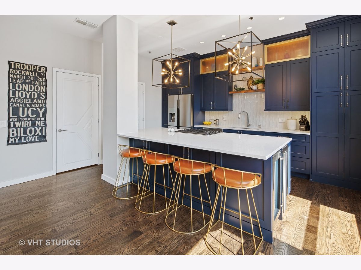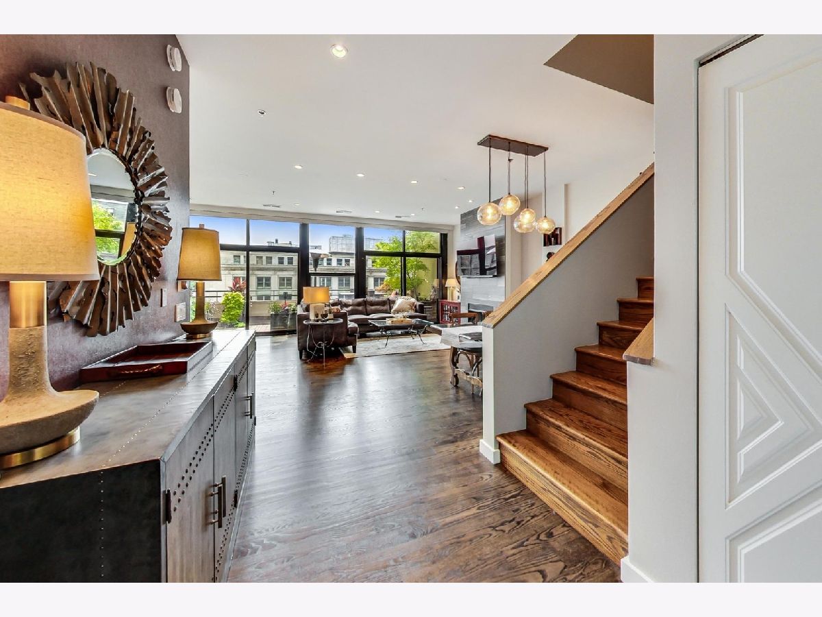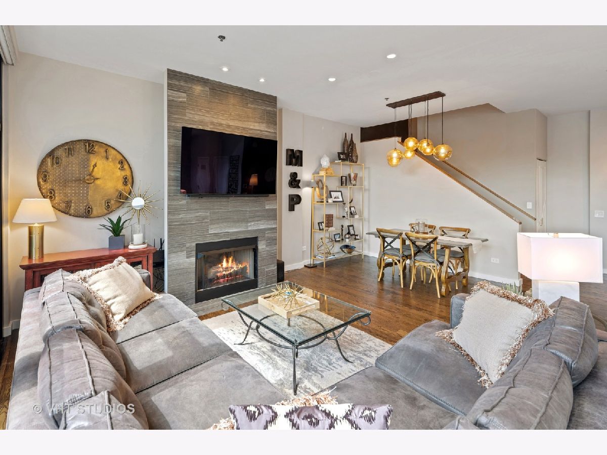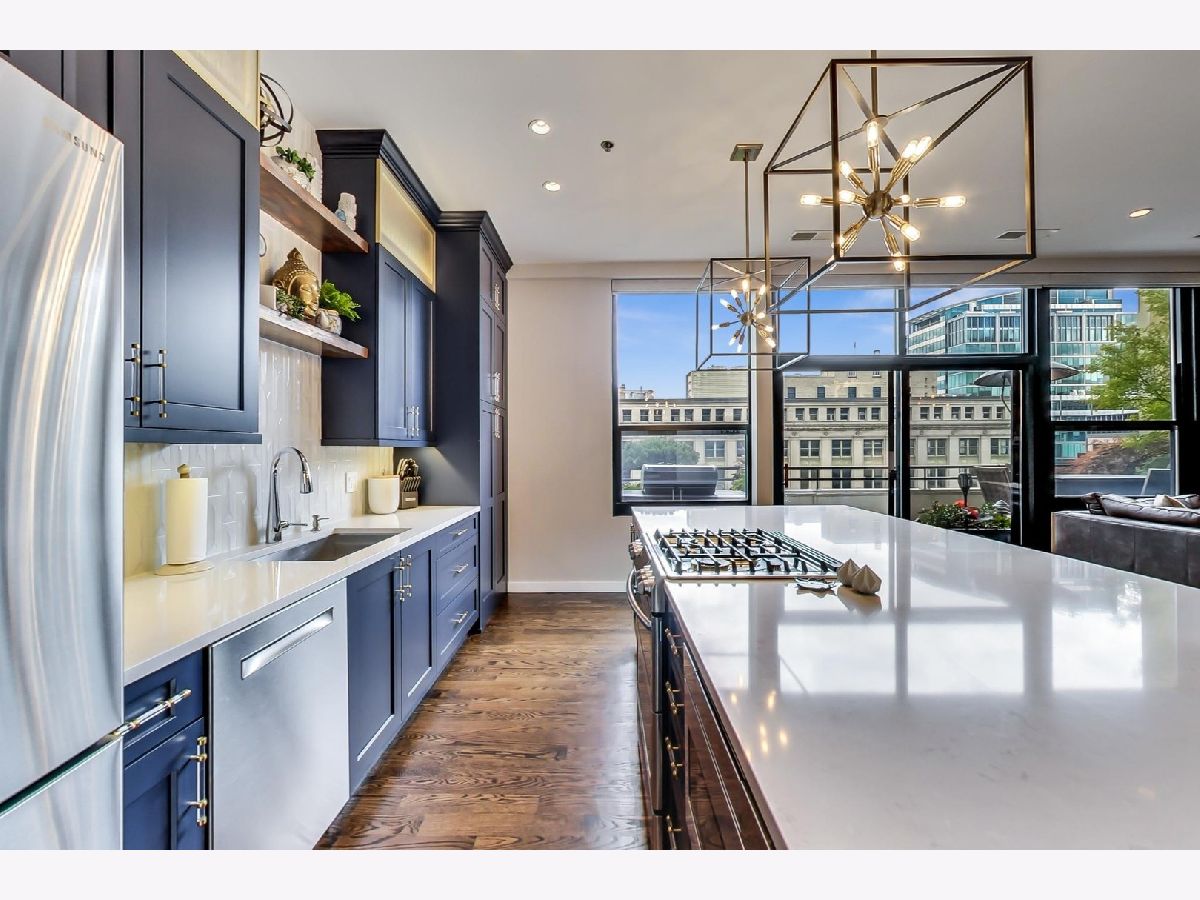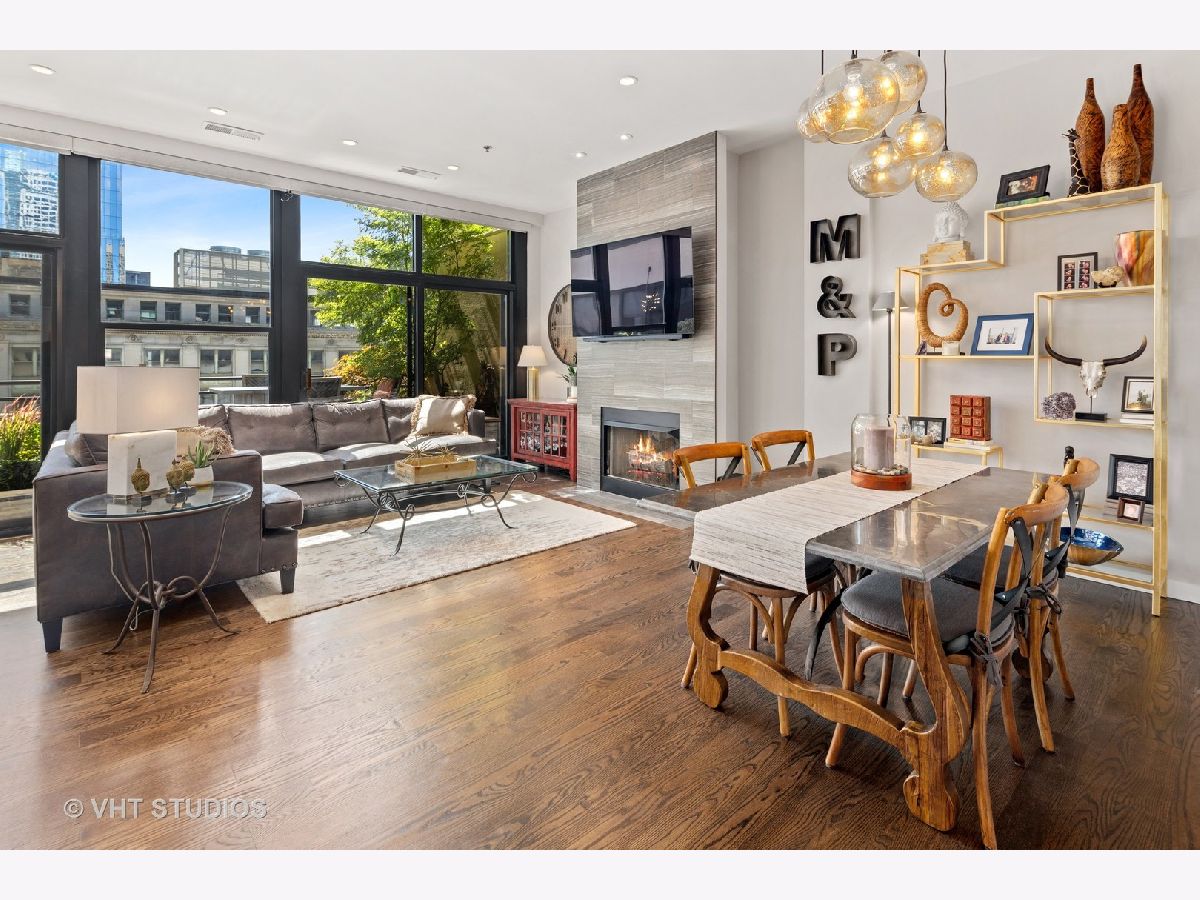 Seller is offering 2 years of monthly assessments at closing. Luxury and style await in this "show-stopper" penthouse with the most stunning chef's kitchen you will find. Features include a huge island with quartz counters, a beautiful custom backsplash, navy soft-close cabinets, a built-in pantry, and a suite of high-end stainless steel appliances that includes a wine refrigerator, and a built-in microwave that will delight any cook. The living room features floor-to-ceiling, wall-to-wall windows with 2 sliding glass doors that fully open up the lower level to your 400 sq. ft. professionally landscaped private terrace offering beautiful city views. There is a half bath on the main floor which adds convenience for guests, while both bedrooms are housed upstairs, and each offer a private ensuite. Your luxe primary bedroom boasts dual walk-in closets plus a granite and marble bath with a walk-through glass shower. Additional features include hardwood floors throughout the lower level that have been newly refinished, motorized blinds, designer lighting throughout the home, and a gas fireplace for added comfort. This duplex penthouse has a sunny south exposure and is set right in the popular West Loop/Downtown/Financial District neighborhood. Full amenity building with 24-hour door staff, on-site building manager, 2nd-floor garden terrace, and a package receiving room that adds even further appeal to this must-see home. Restaurants, grocery shopping, and nightlife right outside your door, easy expressway access, Union Station, and Ogilvie are minutes away, the Blue Line is 1.5 blocks. Includes an exterior storage cage, the heated garage parking space, C-243 is $30,000.