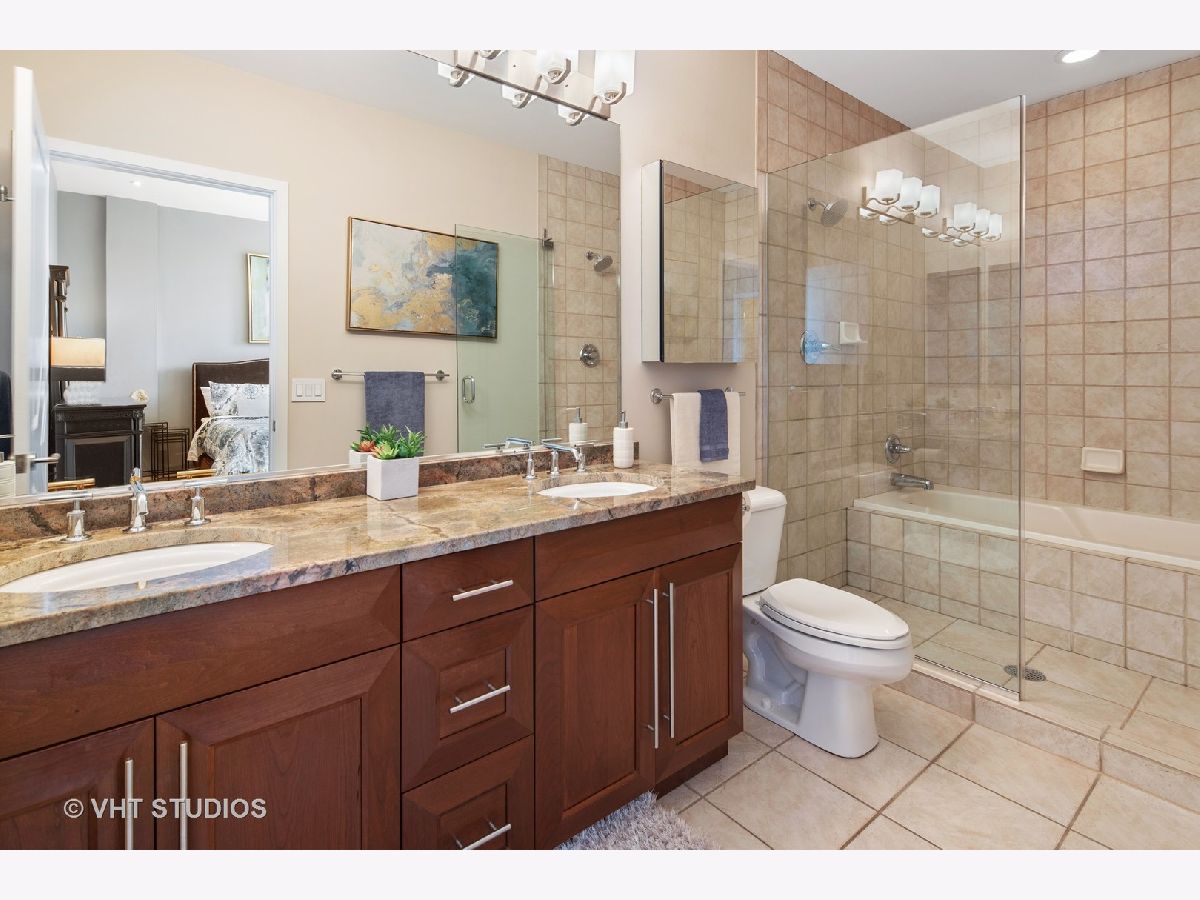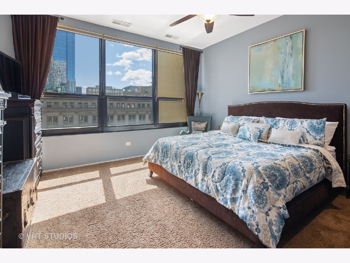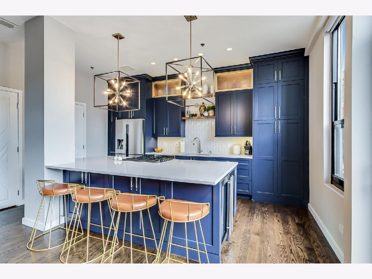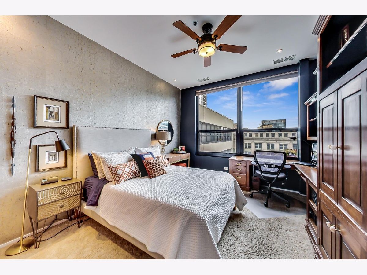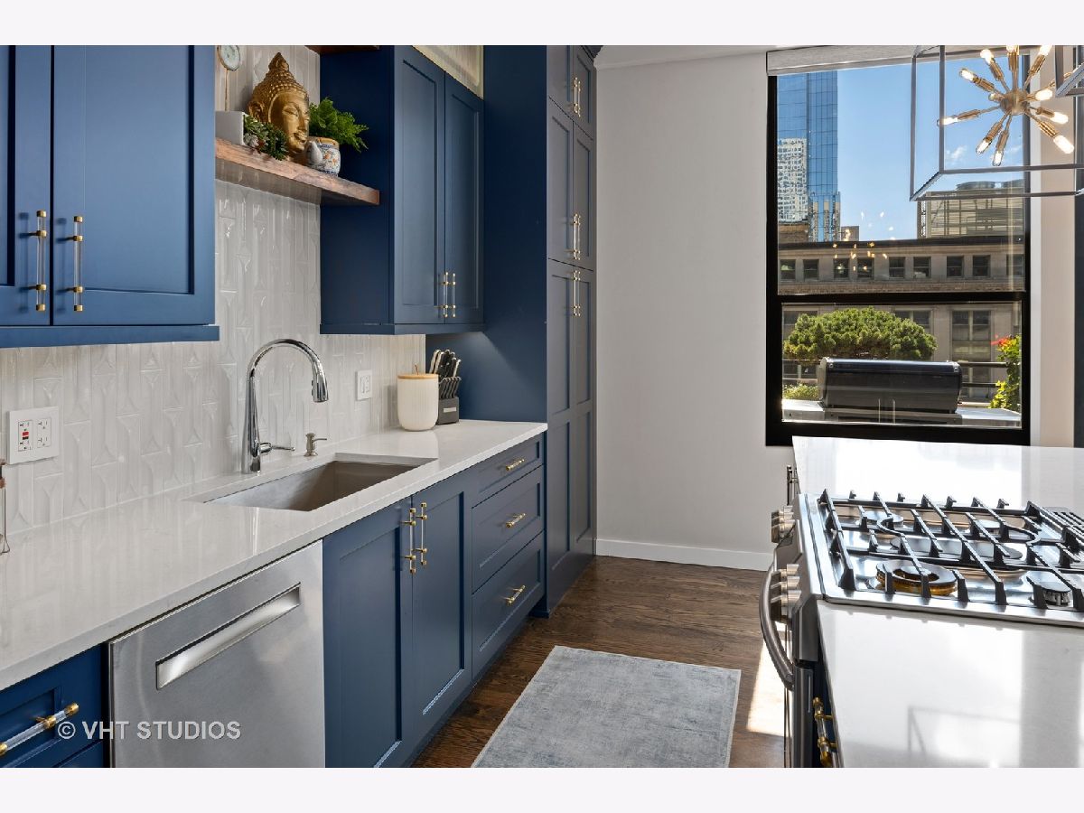 Seller is offering 2 years of monthly assessments at closing. Luxury and style await in this "show-stopper" penthouse with the most stunning chef's kitchen you will find. Features include a huge island with quartz counters, a beautiful custom backsplash, navy soft-close cabinets, a built-in pantry, and a suite of high-end stainless steel appliances that includes a wine refrigerator, and a built-in microwave that will delight any cook. The living room features floor-to-ceiling, wall-to-wall windows with 2 sliding glass doors that fully open up the lower level to your 400 sq. ft. professionally landscaped private terrace offering beautiful city views. There is a half bath on the main floor which adds convenience for guests, while both bedrooms are housed upstairs, and each offer a private ensuite. Your luxe primary bedroom boasts dual walk-in closets plus a granite and marble bath with a walk-through glass shower. Additional features include hardwood floors throughout the lower level that have been newly refinished, motorized blinds, designer lighting throughout the home, and a gas fireplace for added comfort. This duplex penthouse has a sunny south exposure and is set right in the popular West Loop/Downtown/Financial District neighborhood. Full amenity building with 24-hour door staff, on-site building manager, 2nd-floor garden terrace, and a package receiving room that adds even further appeal to this must-see home. Restaurants, grocery shopping, and nightlife right outside your door, easy expressway access, Union Station, and Ogilvie are minutes away, the Blue Line is 1.5 blocks. Includes an exterior storage cage, the heated garage parking space, C-243 is $30,000.