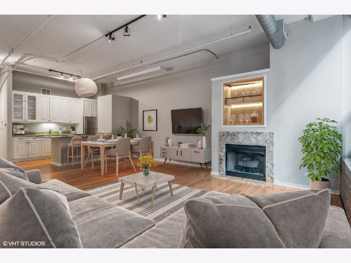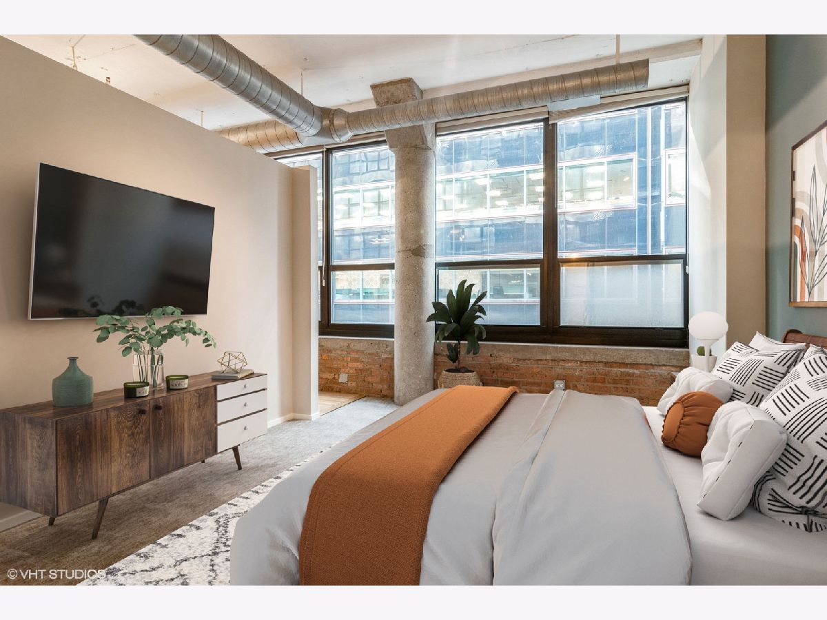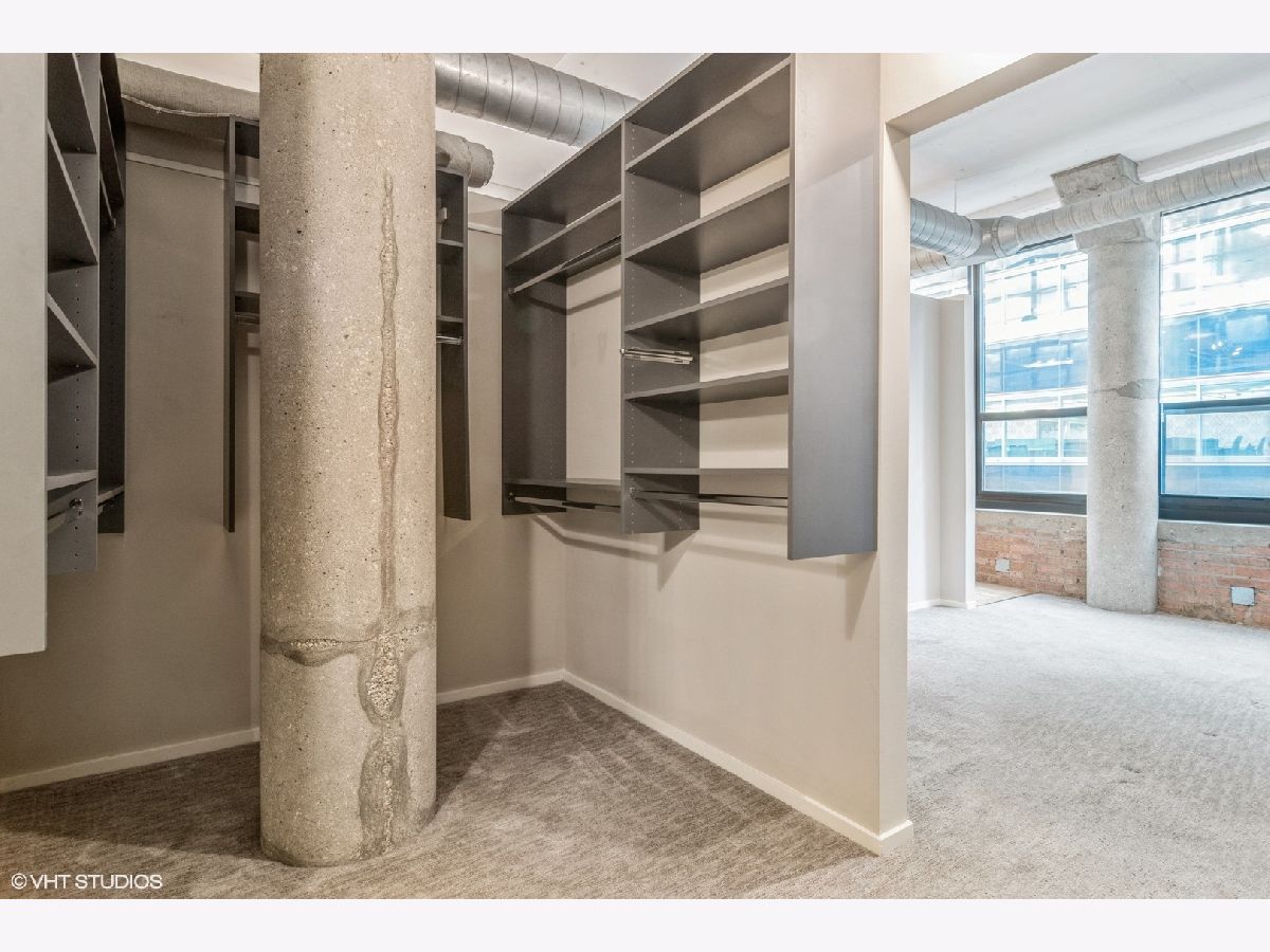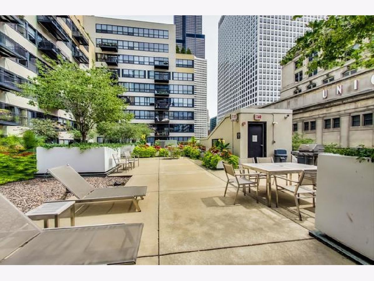 Largest 1 bedroom at Metropolitan Place! Conveniently located between downtown and the West Loop, this wide-open floorplan features an updated kitchen with white cabinets, gorgeous granite countertops, breakfast bar, room for a dining table and a sprawling living room w/ gas fireplace. Character abounds with exposed brick, hardwood floors, dramatic 12ft ceilings and a wall of windows bringing in tons of light. The spacious primary bedroom has a massive walk-in closet with custom built-ins including shoe storage & laundry baskets. The bathroom can be accessed from the bedroom and main living space and features double vanity with separate tub/shower. Tranquil sundeck with grills is conveniently located on the 2nd floor- a quick trip down the stairs right outside your door! DVR/HD cable, internet, storage and a heated garage parking spot are all included in the assessments. Building has 24hr door person and fitness center. Added bonus- the former Florsheim shoe factory boasts concrete floors and ceilings for noise-free living. This location can't be beat with Union & Ogilvie stations right outside your door and walking distance to Restaurant Row on Randolph St plus all that West Loop and Loop have to offer.
