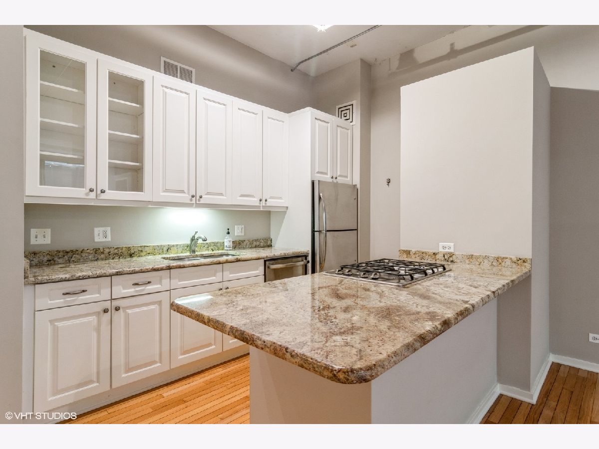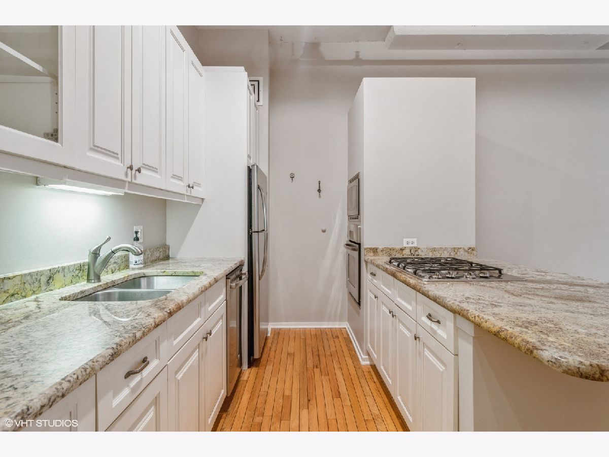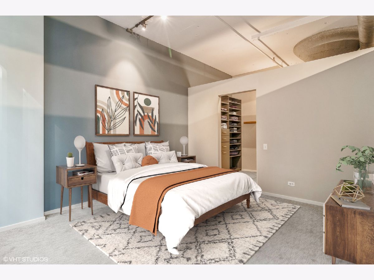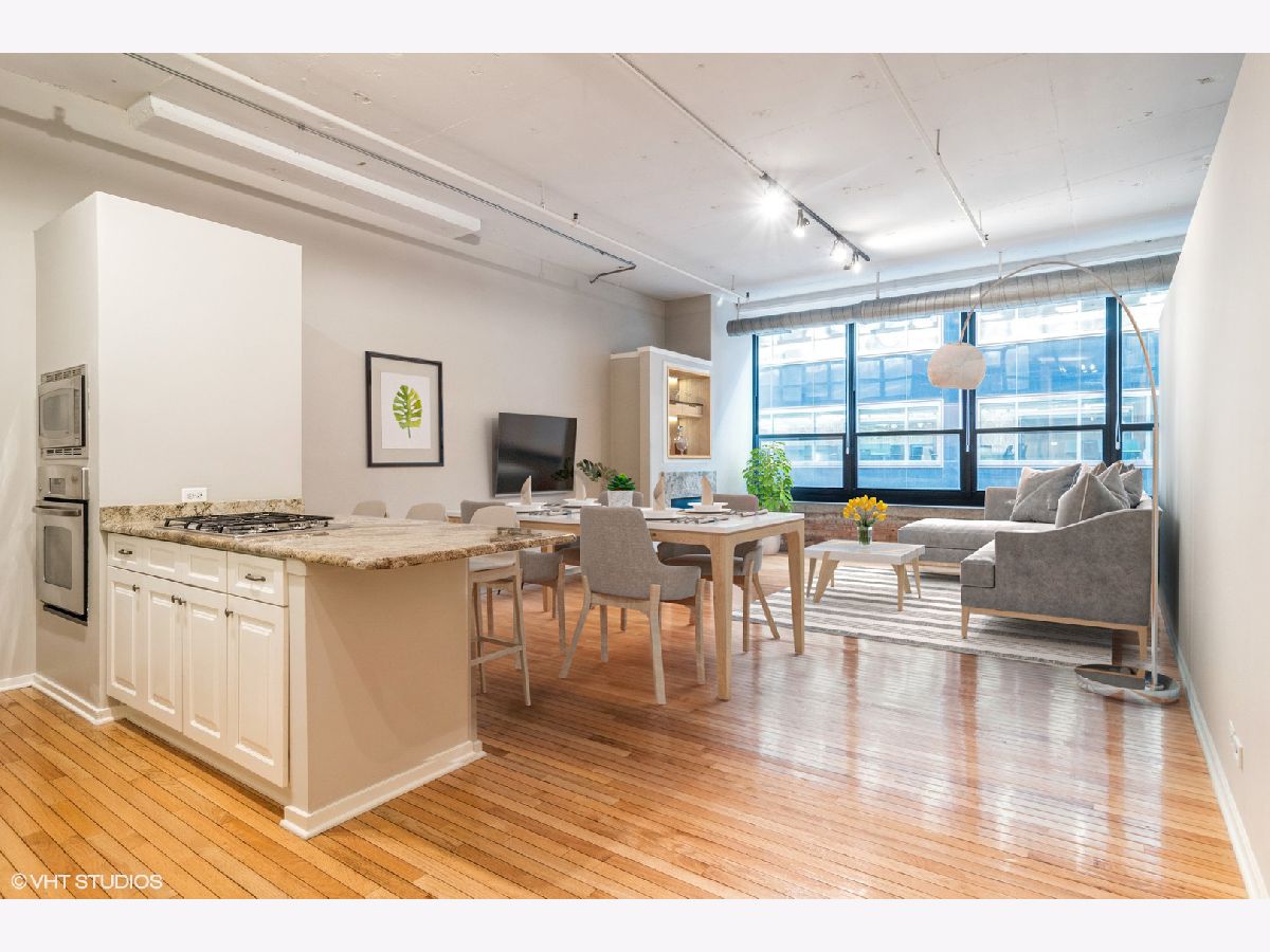 Largest 1 bedroom at Metropolitan Place! Conveniently located between downtown and the West Loop, this wide-open floorplan features an updated kitchen with white cabinets, gorgeous granite countertops, breakfast bar, room for a dining table and a sprawling living room w/ gas fireplace. Character abounds with exposed brick, hardwood floors, dramatic 12ft ceilings and a wall of windows bringing in tons of light. The spacious primary bedroom has a massive walk-in closet with custom built-ins including shoe storage & laundry baskets. The bathroom can be accessed from the bedroom and main living space and features double vanity with separate tub/shower. Tranquil sundeck with grills is conveniently located on the 2nd floor- a quick trip down the stairs right outside your door! DVR/HD cable, internet, storage and a heated garage parking spot are all included in the assessments. Building has 24hr door person and fitness center. Added bonus- the former Florsheim shoe factory boasts concrete floors and ceilings for noise-free living. This location can't be beat with Union & Ogilvie stations right outside your door and walking distance to Restaurant Row on Randolph St plus all that West Loop and Loop have to offer.