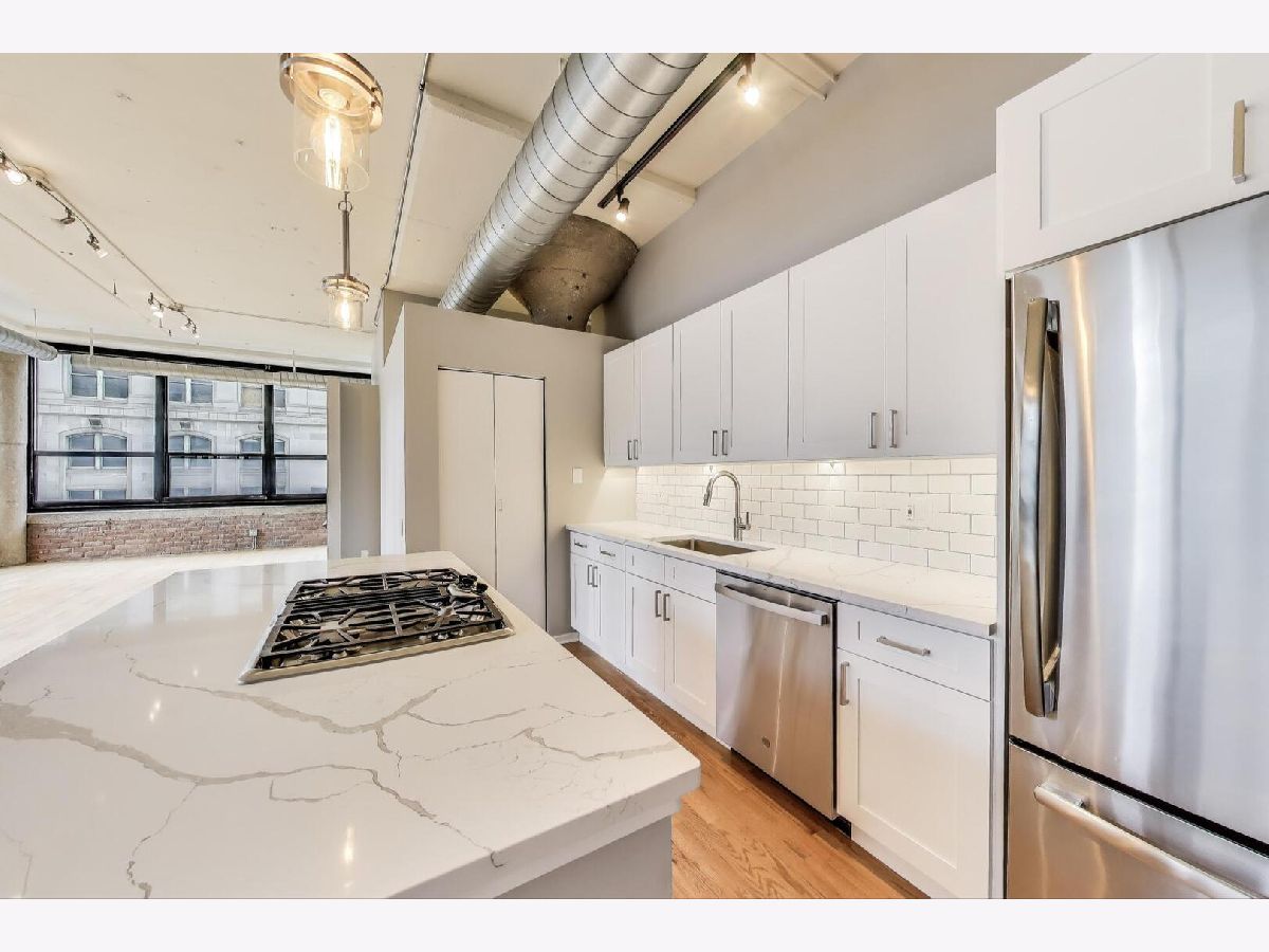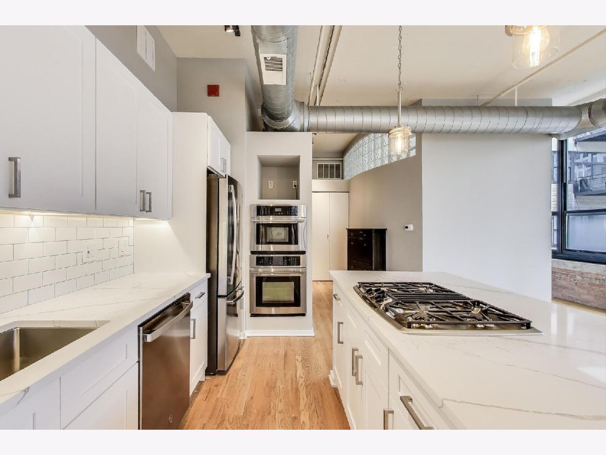 Live in the heart of the West Loop at Metropolitan Place-an iconic, pet-friendly concrete loft building across from Union Station. This sun-filled 2 bed, 2 bath southeast corner loft offers unobstructed views of the Willis Tower and Union Station with industrial-chic character and modern updates throughout. Step into an open-concept living space with oversized windows, exposed brick, high ceilings, and a freshly painted interior. NEWLY updated kitchen features white shaker cabinets with undercabinet lighting, Calacatta quartz countertops, subway tile backsplash, and industrial pendant lighting. Stainless steel appliances, including a gas cooktop, built-in double oven, and a brand-new dishwasher. The spacious split-bedroom layout offers privacy, with a king-size primary suite, walk-in closet, and a spa-like bath with dual vanities and a jetted tub. Enjoy private outdoor space on your balcony with east-facing skyline views, plus an in-unit laundry room and generous storage. Building amenities include: 24-hour door staff Fitness center Sun deck Heated garage parking available ($35K) Steps to the Loop, Riverwalk, SoHo House, and Chicago's best restaurants, bars, and transit-this is the perfect blend of location, lifestyle, and loft living.