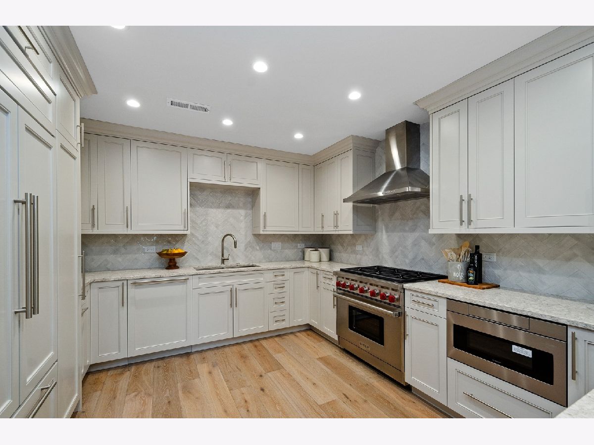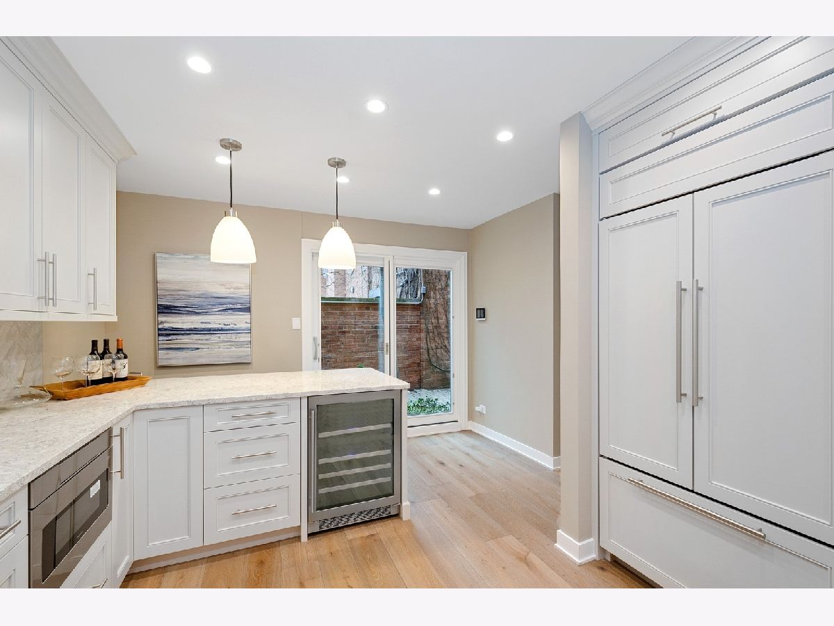 Luxurious and unique, this stunning 3 bed/2.5 bath gut renovated townhome in the heart of Old Town is a perfect blend of sophistication and comfort. Custom high-end finishes thru out featuring Sub Zero, Miele, lavish mill work, dramatic exposed brick interior wall, gorgeous hardwood floors, soaring ceilings and two brand-new skylights. Stunning kitchen features white Quartz countertops, beautiful backsplash and plentiful custom cabinetry. Large living/dining room leads to walk-out private patio. Second floor offers wonderful open lofted den perfect for a home office, media or exercise room. Fabulous primary suite with walk-in closet and elegant bathroom. The top level has two bedrooms, double vanity bathroom and laundry room. Entrance off Goethe. Garage parking included. Walk to everything - shopping, restaurants and nightlife. This is a true gem!