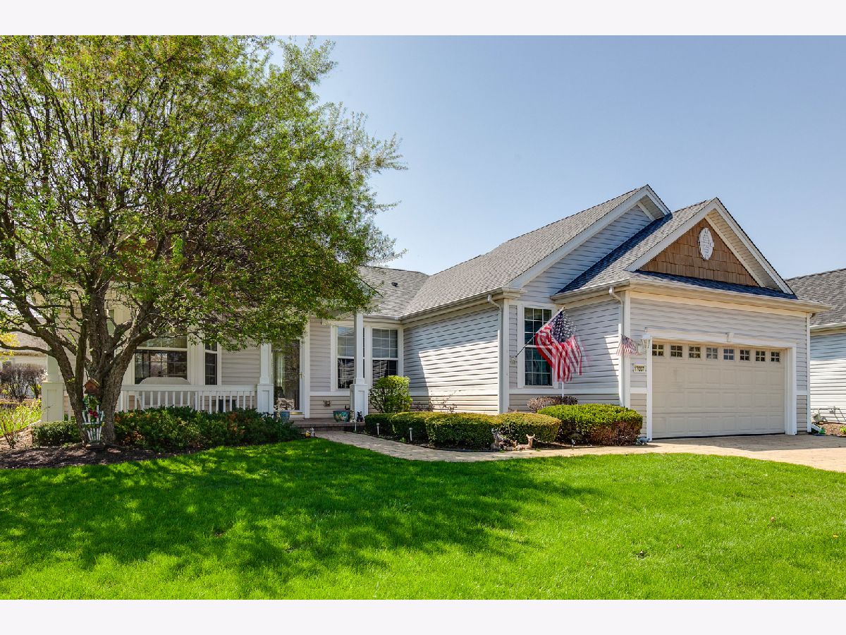 *** Original Del Webb sun filled southern exposure Petoskey model, very short walk to main lodge, clubhouse, pools, tennis courts and baseball diamonds all on a private circle street. 2 bed, 2 bath, extended 2 car garage with with room for extra storage. Bright, open floor plan makes entertaining a breeze! You will love the large brick paver front porch, beautiful brick walkway and driveway. New power awning over back deck so you can enjoy sitting out any time of day! Newer Maintenance free 20 x 30 deck with fenced in dog run. Master bedroom features 2 large walk in closets, large master bath with soaker tub and separate shower. Front yard has mature professional landscaping with service paid for through 2022! This home boasts wood laminate flooring throughout living areas, and newer carpet in bedrooms. New roof in 2019, Come live the dream and take advantage of all Del Webb has to offer!
