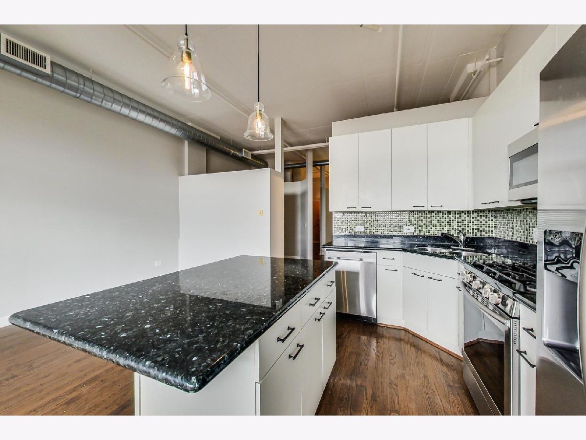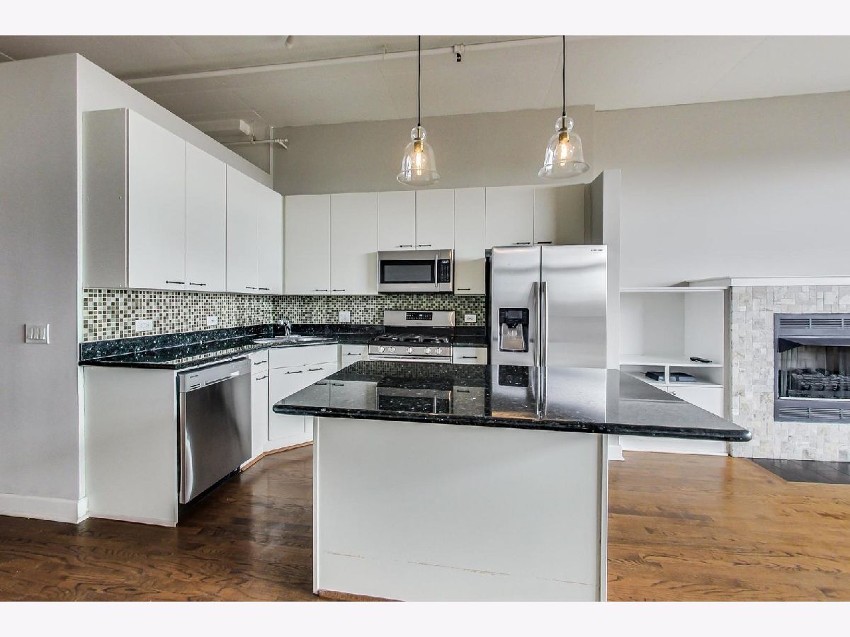 Prime West loop location for this open one-bedroom loft + den! With over 1000sqft, this unit features open concept living with vaulted concrete ceilings, Espresso stained hardwood floors, and gas fireplace with built-ins. Kitchen has white cabinets, granite counters and SS appliance. Den could easily be walled off for a 2nd bd if desired. Unit gets great natural light from large south-facing windows and balcony with unobstructed southern views. Indoor heated garage space included! Excellent West Loop neighborhood with parks, shopping, and some of Chicago's best restaurants, bars and nightlife right out your doorstep. Short walk to the Blue-line and green line "el" stops, United Center and downtown Chicago. Call today for a private viewing!
