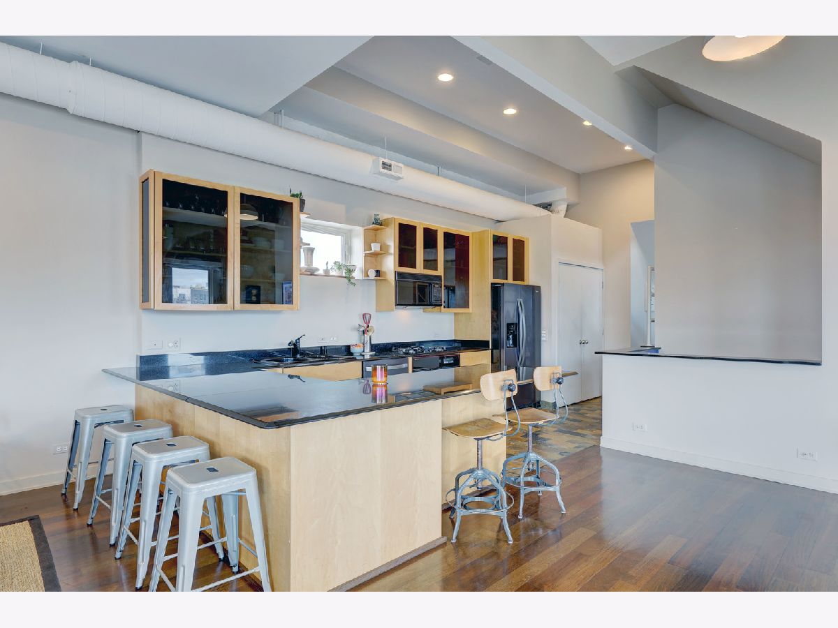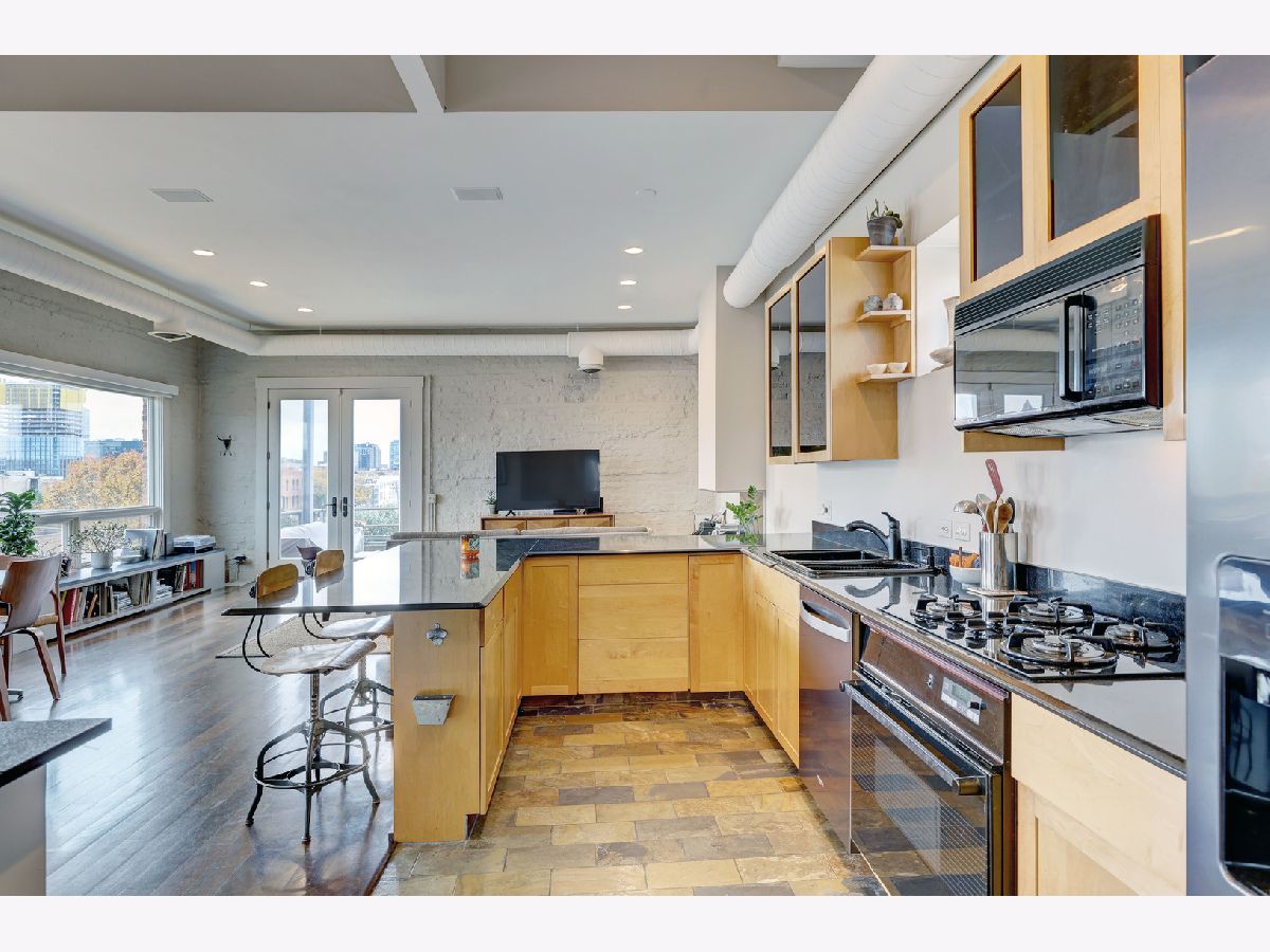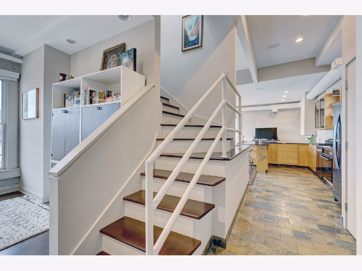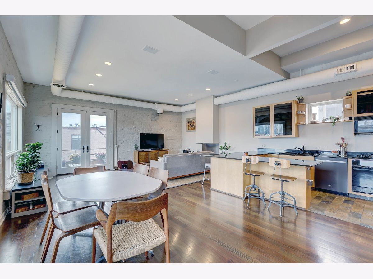 Discover a truly remarkable duplex in the vibrant neighborhood of West Town, where urban living reaches new heights. This exquisite residence offers captivating skyline views through expansive Pella Architecture Series windows, a breathtaking sight mirrored in the sleek, black glass fronted kitchen cabinets. Step inside, and you'll be greeted by living spaces with soaring 11' to 12' ceilings, creating a sense of grandeur and sophistication. The custom ventless fireplace adds a touch of elegance, while an abundance of space and natural light bathes the interior in warmth. Embrace the beauty of sunsets from your private deck, or take in the panoramic views from the south-facing common roof deck. For those with a vision, there's the opportunity to build out the north-facing deeded roof, creating your very own private urban oasis in the heart of the city. The master bath is a luxurious sanctuary, offering a rain and steam shower, where you can unwind and rejuvenate. Convenience is key with garage parking and a storage room included, making city living a breeze. This is not just another residence; it's a unique, avant-garde space that combines the best of urban living with a touch of luxury. Explore the endless possibilities and make this exceptional duplex your very own urban sanctuary in the heart of West Town.