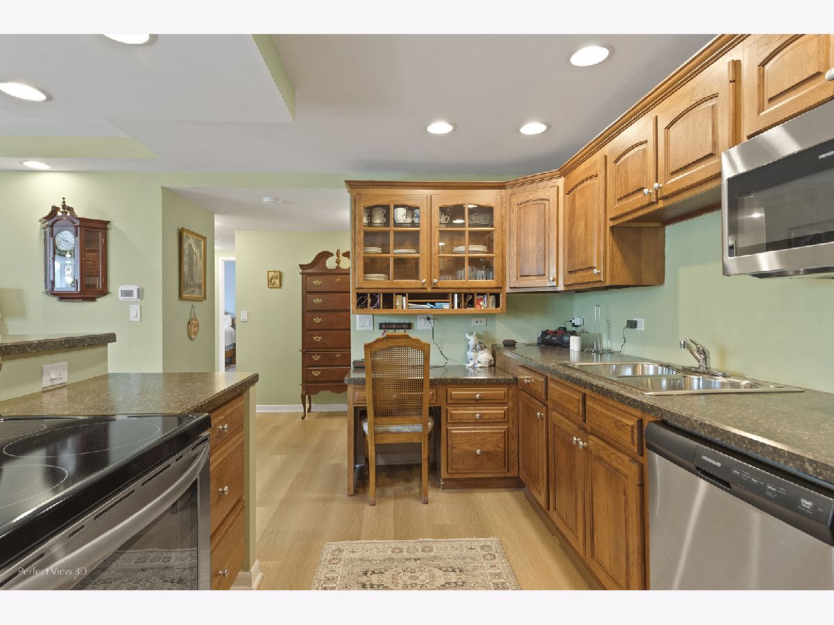 Move-in ready, this top-floor 2-bedroom, 2-bath east-facing condo offers effortless living in an unbeatable Lake Forest location. Enjoy peace and quiet with no neighbors above you in this well-maintained 3-story building. Step through the double doors into a spacious open layout that blends comfort and style, ideal for both everyday living and entertaining. The gourmet kitchen showcases 2021 stainless steel appliances, an expansive center island with breakfast bar, abundant cabinetry, desk space and a DEEP 5X7 walk-in pantry with cabinetry, all flowing seamlessly into a bright and airy living room with floor-to-ceiling windows and access to your own private balcony-perfect for morning coffee or winding down with a book. Appreciate the recreational deep game closet in the main room for extra storage. Truly lots and lots of storage area. No need for a dining room table, as the high-top island is ideal for casual dining, freeing up more living room space. You'll find 2022 luxury vinyl plank flooring throughout the home, offering both style and durability. The generous primary suite features ample closet space and an updated en suite bath with a spacious dressing area. The second bedroom is equally well-sized with its updated full bath, perfect for guests or a home office. Additional highlights include a 2019 water heater with surge protection panel, Extremely LOW TAXES, and two assigned parking spots. Located in a secure elevator building with on-site amenities including a party room, bike room, laundry room, and storage locker. Walking distance to downtown Lake Forest, Metra, shopping, dining, beaches, Lake Forest College, the library, and the lakefront. If you've ever dreamed of living the Lake Forest lifestyle and enjoying all its world-class amenities, this is the most affordable way to make it a reality.