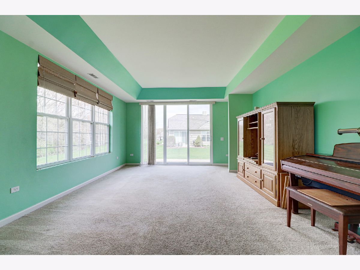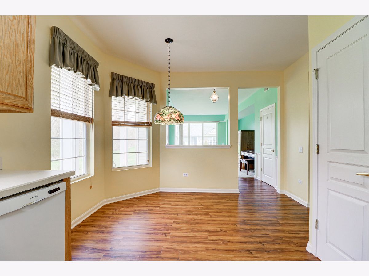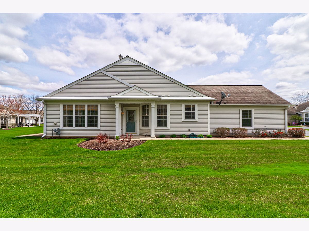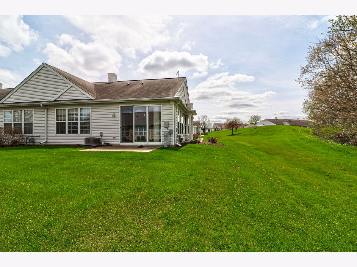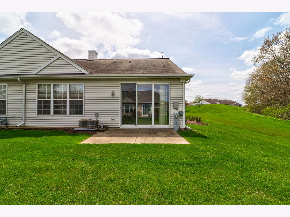 Location, Location,Location!!Private End unit Tri-plex in Del Webb Sun City OVERLOOKING WOODED AREA. TWO BEDROOMS AND TWO FULL BATHROOMS. Features an Eat-In Kitchen with 36" Cabinets, Ceramic Backsplash, All Appliances stay (newer dishwasher and microwave) and Pantry, Good Size Living Room with Sliding Glass Doors to the Concrete Patio, Master Bedroom with Trey Ceiling, Large Closet and Private Bath that offers Raised Double Vanity and Walk-In Shower, NEWER Flooring in the Foyer, Kitchen and hall, Newer water heater. 2 Car Garage. COME ENJOY LIVING IN THE 55 AND OVER DEL WEBB SUN CITY HUNTLEY.