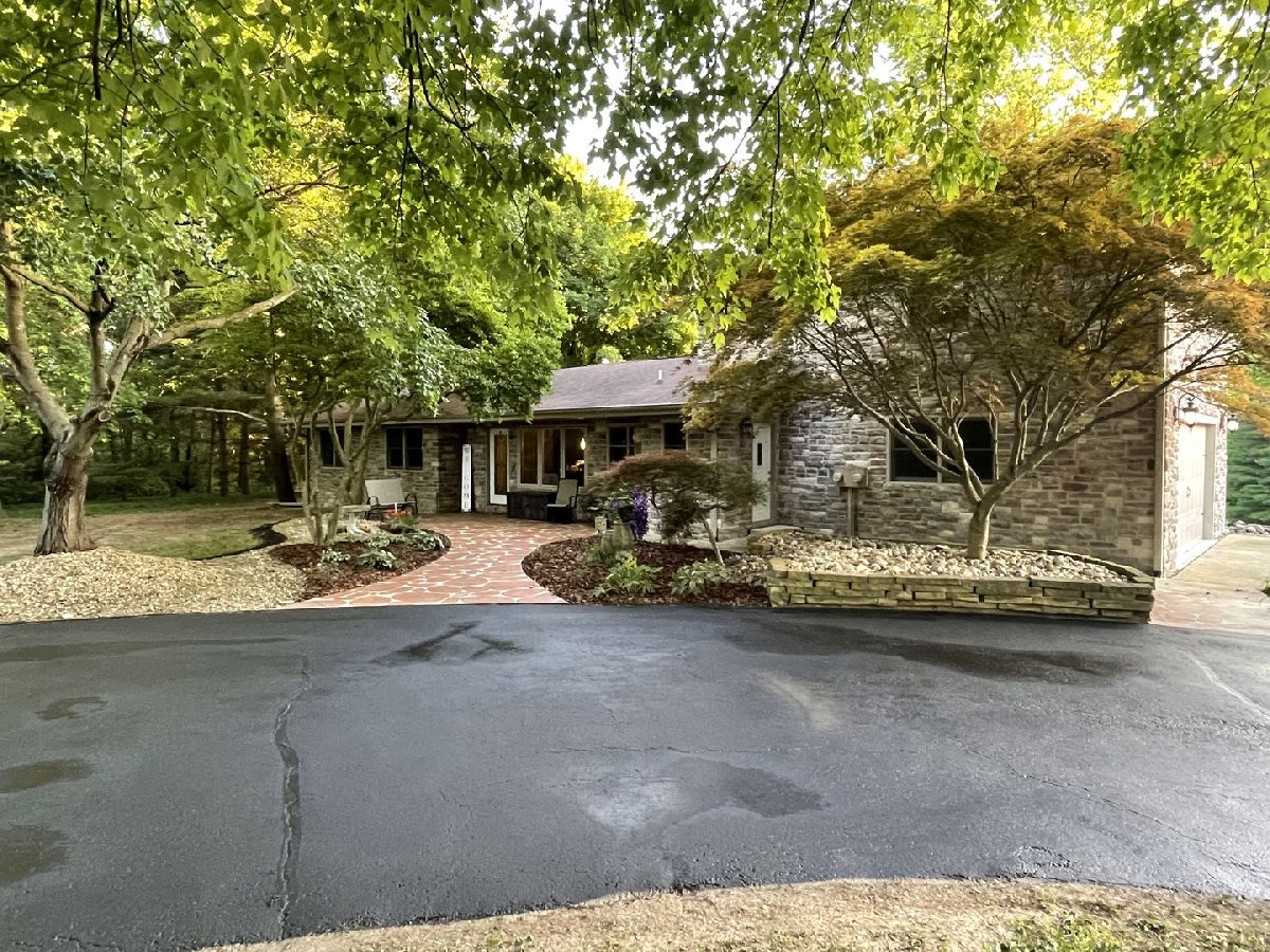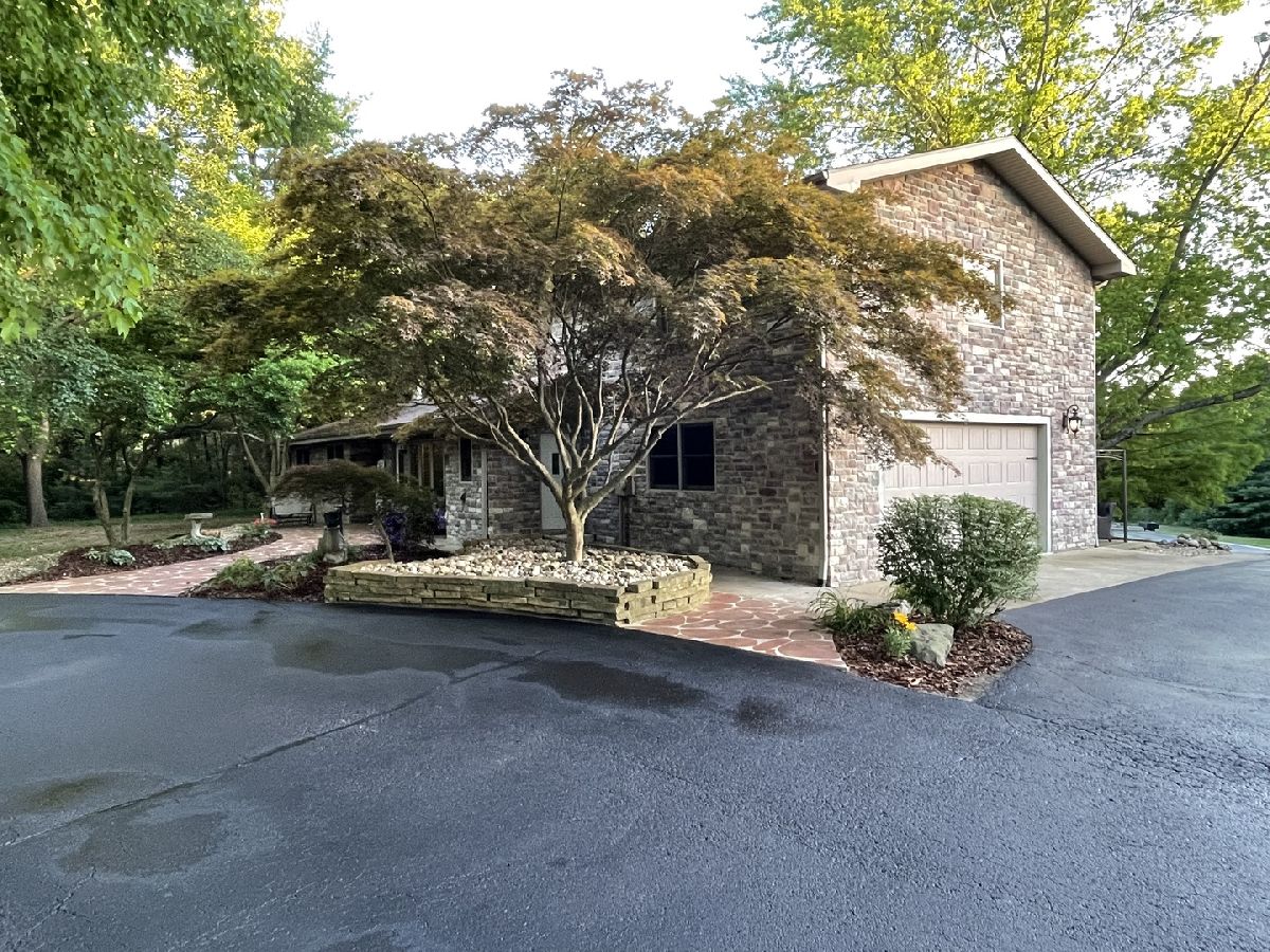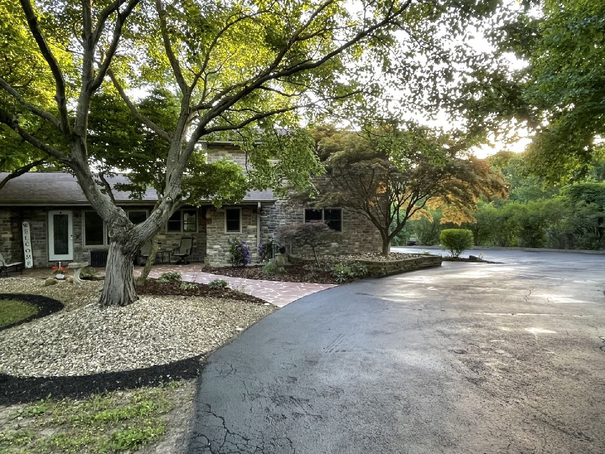 If you're searching for sanctuary rather than status then this is your home! Skip the HOA's and fences and come back to nature with this mix of Kentucky meets Austria. This home sits on nearly 3 acres of serene, rolling/sloping landscape with partial woods and a creek at the back of the property. It includes a finished walkout basement complete with a wood burning stove for those cozy, winter nights, a large family room for movie watching, an office/workout room that has been pre-wired for home theater and including an additional room with a built-in closet and a full bath adjacent to that. The main level includes a master suite complete with walk-in closet and large master bath including a double Jacuzzi shower, corner therapy tub and double vessel sink vanity with heated Travertine tile floor and wall- mounted tv. The Kitchen includes a built-in Jenn-Air convection oven and 36" electric cooktop with a Dacor downdraft vent. Built in bookshelves under the granite countertops yield to convenient storage for your cookbooks! The upper kitchen cabinets are oversized at 15" deep for extra storage as well. The living room has a stone facade fireplace with a ventless propane log insert. At the rear of the home and facing westerly is a 4 seasons room which is ideal for catching some amazing sunsets. Off to the left is a large composite deck partially canopied with the overhangs of a mature maple tree providing plenty of shade and privacy. As you move from the decl to the lower level stone paver patio, you will traverse one of two flights of stone stairs nestled tightly between walls of large, Galena quarry stone on either side of the walkout forming oversized retaining walls. As you wind back up the stairs to the north you arrive at the stone paver-based gazebo for yet, another amazing and peaceful seating area to take in the natural surroundings. The back of the property is complete with 2 detached shops 24x36 and 24x40 both of which have just had new roofs in the last year and new siding this year including new man doors and a window. The first shop has a studio that is heated and cooled complete with a half bath and water heater. There is a separate septic system that was installed behind the shops circa 2007. There is also a small walking bridge, trail and fire pit with seating across the creek for friends and family to enjoy some time in the woods getting back to nature. Moving back to the home, there is a large bonus room/bedroom over the garage complete with 2 built-in closets. The home boasts 4 bedrooms and 3 bathrooms overall including the bath on the lower level/walkout. Appraisers estimated over 4000 square feet of living space up and down. Come check it out for yourself why this home is the right home for you! Call us today to schedule a showing!