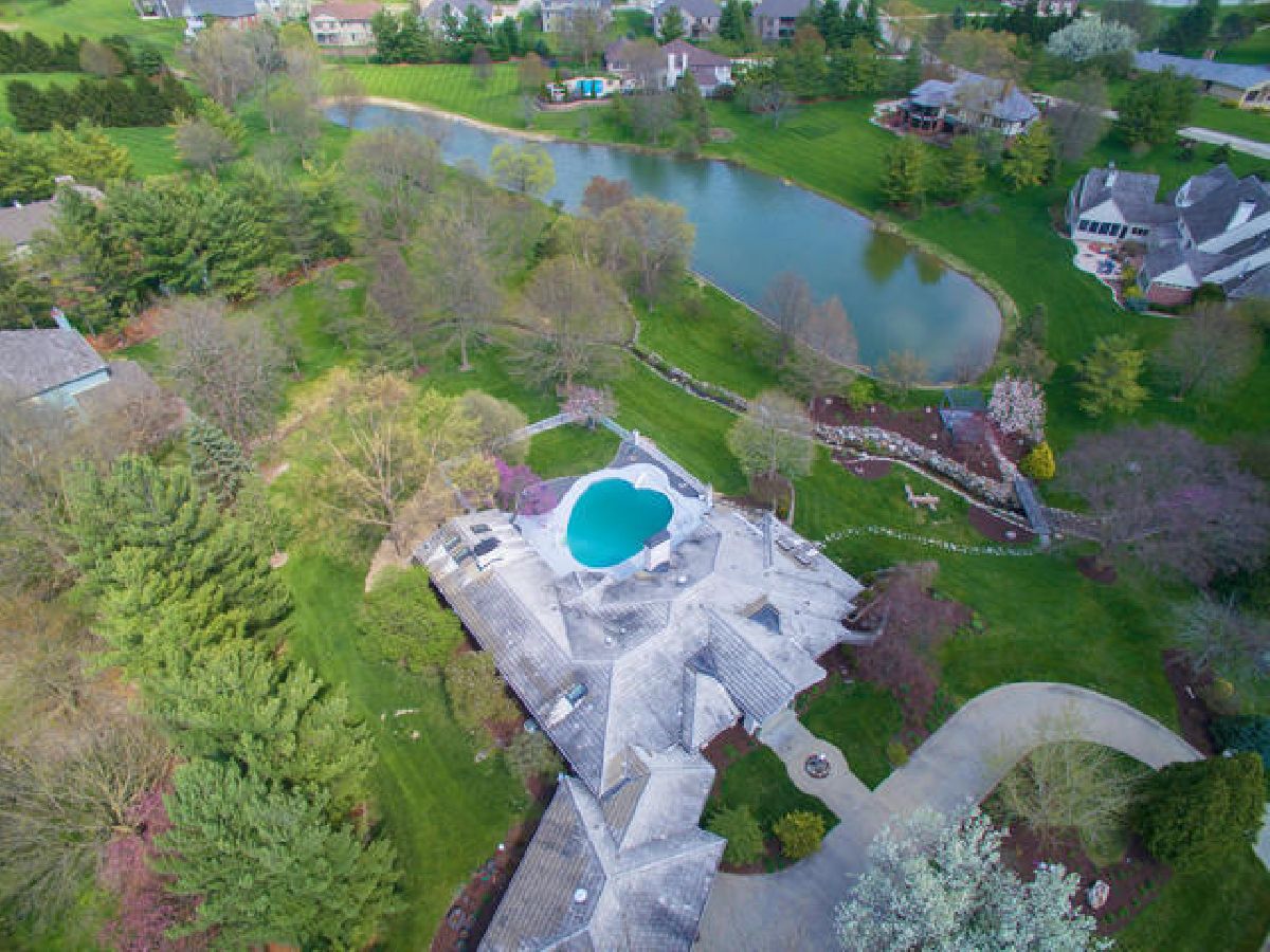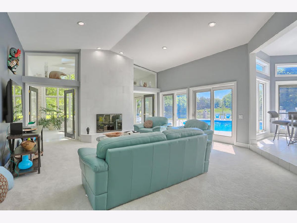 Enjoy this unique architectural home, nestled in 1.53 rolling acres lake-side! The smart, sophisticated, & functional design offers so much privacy amid breathtaking views. Over 6,300 SqFt, offering 4 bedrooms, 3.5 bathrooms, formal dining & living rooms, family room, private office, sunroom, finished walk-out basement- including a guest suite. 3 car garage with built-in storage. Upon entering, enjoy views of the pool & grounds from the foyer, while savoring the spacious layout, design, high ceilings, & large windows. The expansive dining area is versatile for any size gathering. The master suit, which opens to the pool, features vaulted ceilings, a bathroom with dual vanities, a soaking tub, walk-in shower, & a large walk-in closet. The kitchen provides ample counter & cabinet space, new black stainless steel appliances, & more views of the heart-shaped pool. Stay hours in the finished sunroom which is engulfed with sunlight, and allows you to cozy up to the two-sided fireplace. 2 New furnaces and Central air conditioners installed in 2019, New pool liner 2020. Additional list of improvements available upon request.