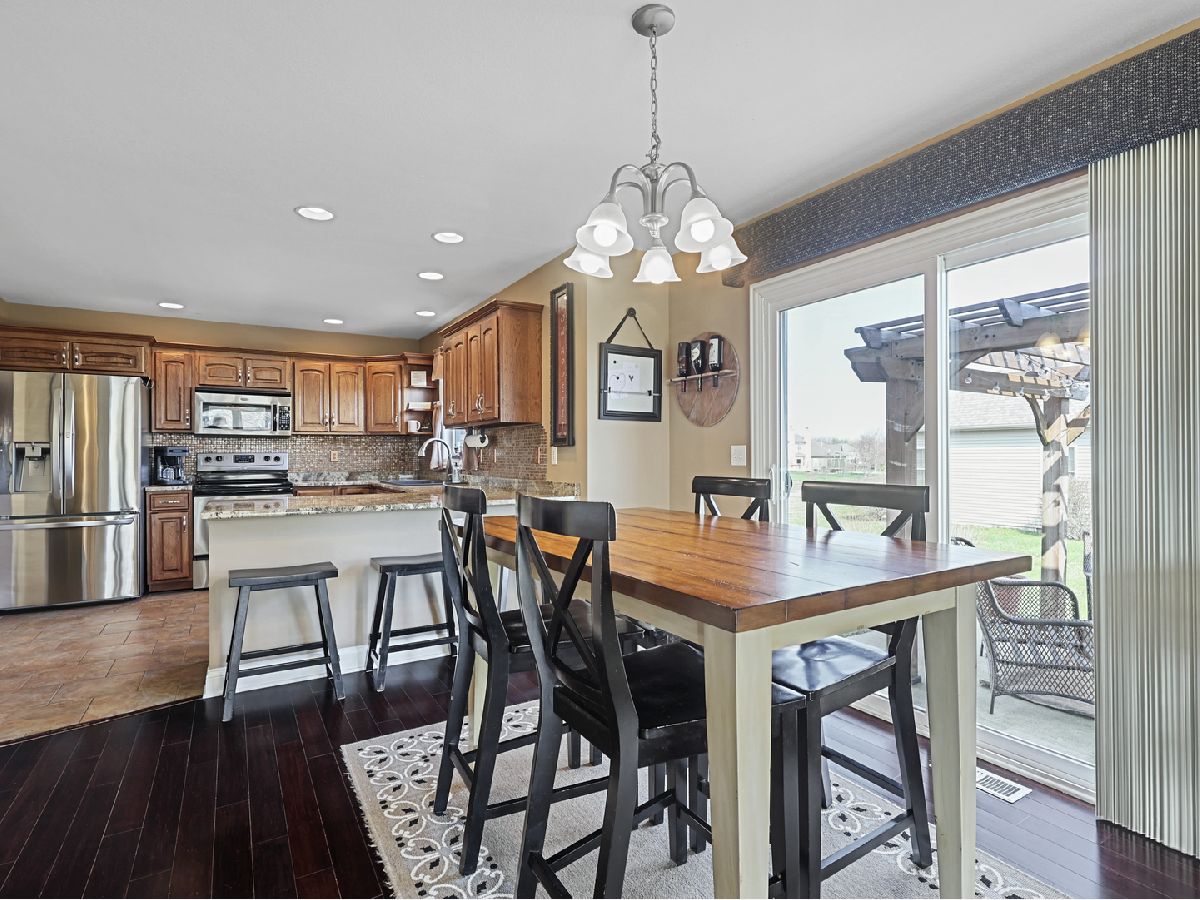Spacious 2 story home in desirable Ridgepointe Subdivision in Monticello. Boasting over 2800 finished sq ft this 2 story home is prefect for any lifestyle. Convenient Monticello location with quick access to Champaign via Monticello Road and easy walking distance to the middle school you will be delighted with this spacious corner lot home. Grand 2 story foyer with open stairway will empress you upon entry. Hardwood flooring flows throughout most of the main level of this well maintained home. The front formal dining room leads to the to the spacious kitchen with granite counters, tile backsplash and stainless steel appliances. Conveniently located off the kitchen is the breakfast area which offers causal dining space, sliding doors leading to the back patio with pergola which offers space perfect for outdoor living and access to the commons area and pond. Bright windows enhance the living room and is highlighted with a gas log fireplace & hardwood flooring. 3 of the homes 4 bedrooms are located upstairs including the master suite with vaulted ceilings, large walk-in closet & private bath with dual sinks & tiled shower. Should you need more space to relax and enjoy time with friends and family the recently finished basement offers that space. Featuring a large family room with built-in speakers as well the 4th bedroom and custom bathroom. Located in a great Monticello neighborhood this home is adjacent to the commons area and pond and offers convenient access to the middle school and newly constructed sports training facility. Pre-inspected and move in ready, you will not want to miss out!.