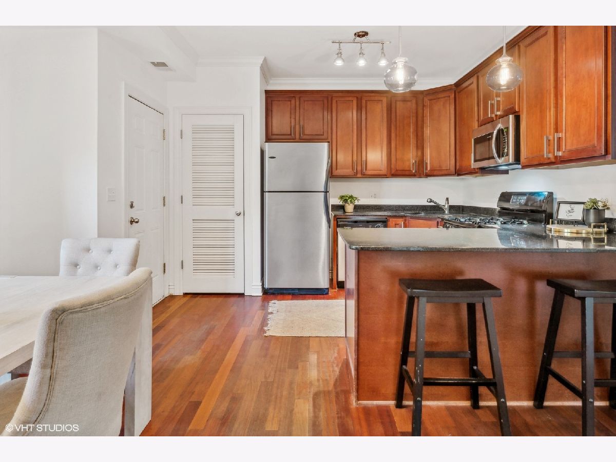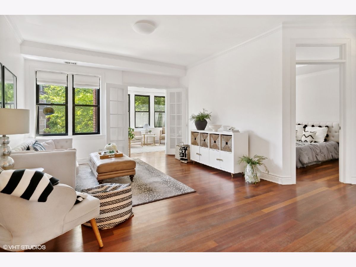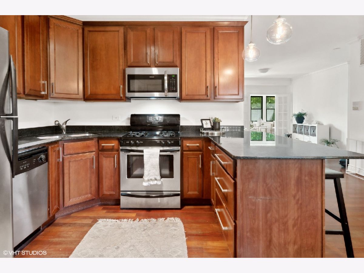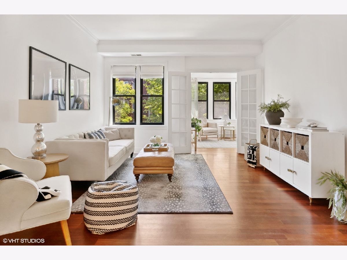 Welcome Home to this striking, perfectly laid out, 2 bedroom 2 bath plus Den in the highly desirable Southport Corridor of Lakeview. This unit has it all, Split Bedroom Design, Custom moldings, Hardwood Floors, Stainless Steel Appliances, Granite Counters and Bar, in unit W/D, custom window treatments, stone baths w/ undermount sinks & double vanity in primary finished off with a shared, tranquil landscaped backyard patio. True walk to everything location; Shops, Dining, Wrigley Field and Public Transportation. A Southport Corridor Dream!