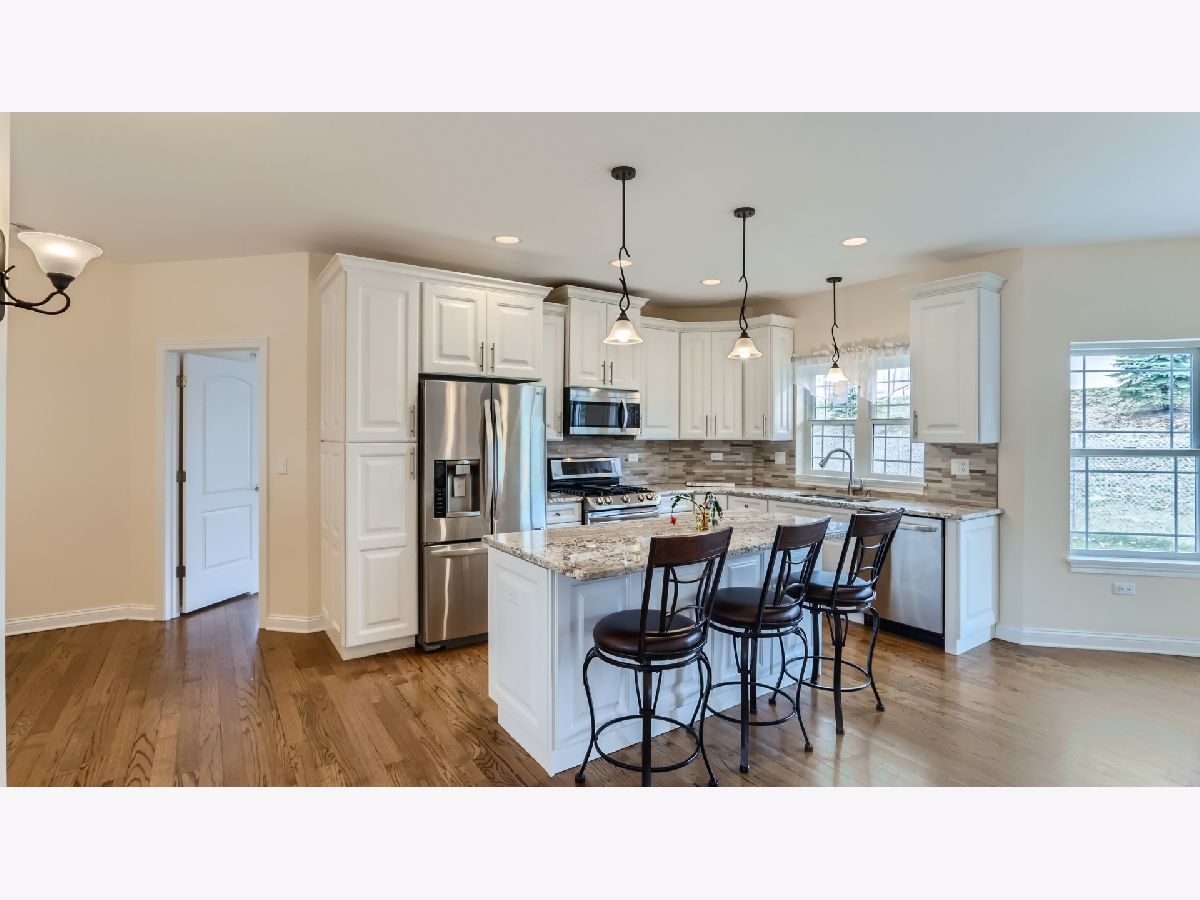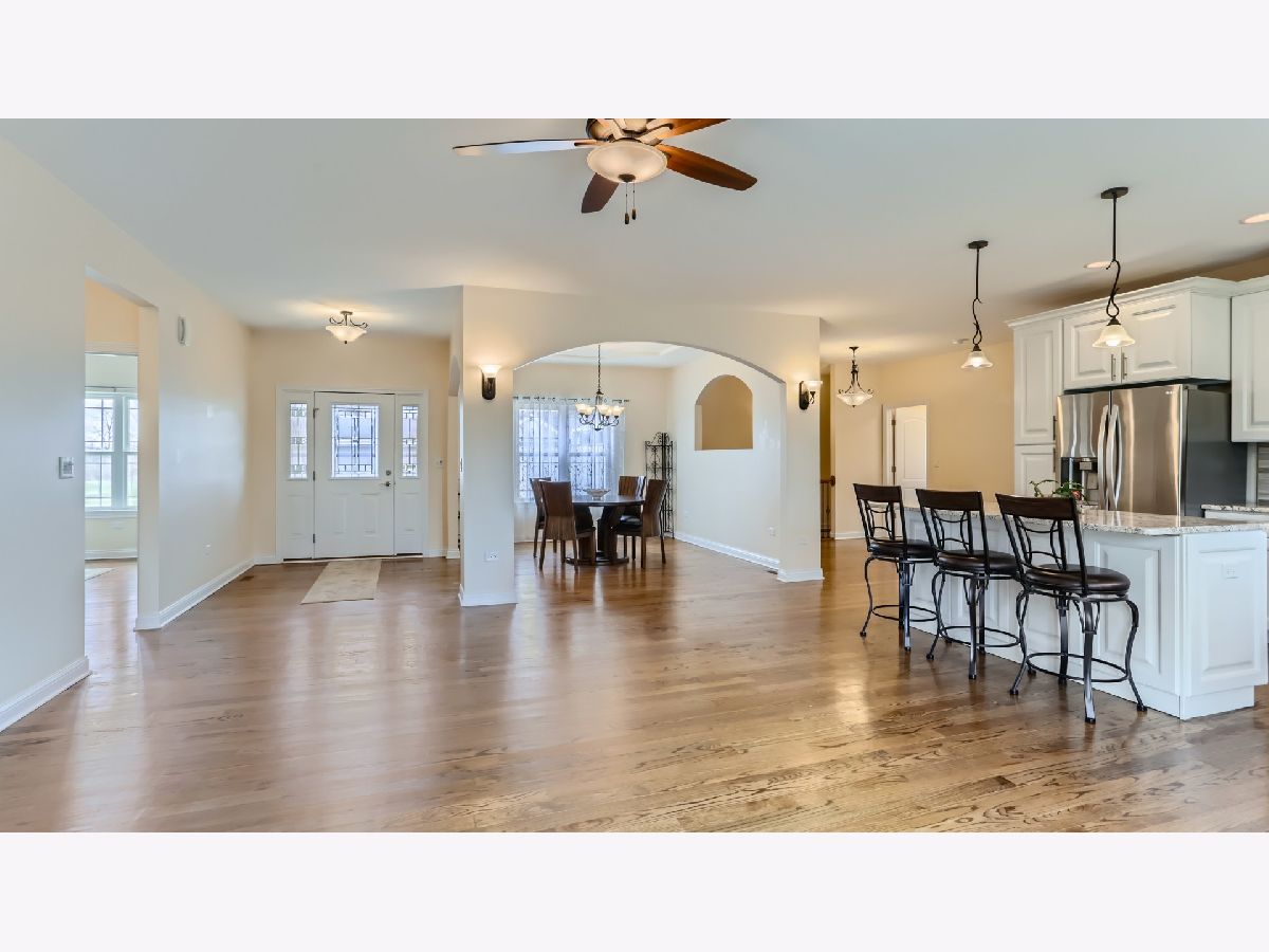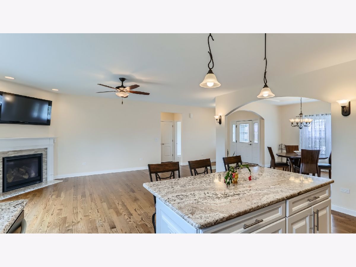 Discover the epitome of contemporary comfort and style in this meticulously crafted ranch-style home located at 13057 Birch Path Ct in the charming community of Lemont, IL. Built just six years ago, this residence offers a perfect blend of modern convenience and timeless elegance. As you step through the front door, you'll be greeted by the warm embrace of hardwood floors that flow seamlessly throughout the home, setting the stage for a truly luxurious living experience. The spacious living room features a switch-controlled gas fireplace, creating a cozy ambiance for relaxing evenings with family and friends. The kitchen is a chef's dream, boasting stainless steel appliances, granite countertops, and a convenient breakfast bar island, perfect for casual dining or entertaining guests. The cabinets are solid wood Aristokraft brand with soft-close harware. Adjacent to the kitchen is a beautiful separate dining room adorned with a tray ceiling, providing an elegant space for formal gatherings and special occasions. Retreat to the serene primary bedroom suite, complete with an en suite bathroom featuring a separate shower and indulgent jacuzzi tub, offering the ultimate in relaxation and rejuvenation. Two additional bedrooms provide ample space for family members or guests, while a full unfinished basement with a roughed-in bathroom offers endless possibilities for customization and expansion. Enjoy the convenience of a hot water recirculating system, ensuring instant hot water with minimal wait times, as well as a digital antenna system wired to television locations for effortless entertainment. The home also features a rear concrete patio accessed through slider doors from the living room, providing a perfect spot for outdoor gatherings and al fresco dining. With a huge unfinished attic above the garage, there's plenty of potential for additional living space or storage, while an in-ground sprinkler system and radon reduction system add to the home's appeal. Situated on a dead-end street in a low-traffic area, the neighborhood offers peace and privacy, yet is just a short drive from shopping, award winning schools, and amenities. All primary lighting equipped with dimmer switches. Nine foot ceilings throughout main level and basement. Don't miss your opportunity to make this stunning residence your own. Schedule your private showing of 13057 Birch Path Ct today and experience modern ranch living at its finest.