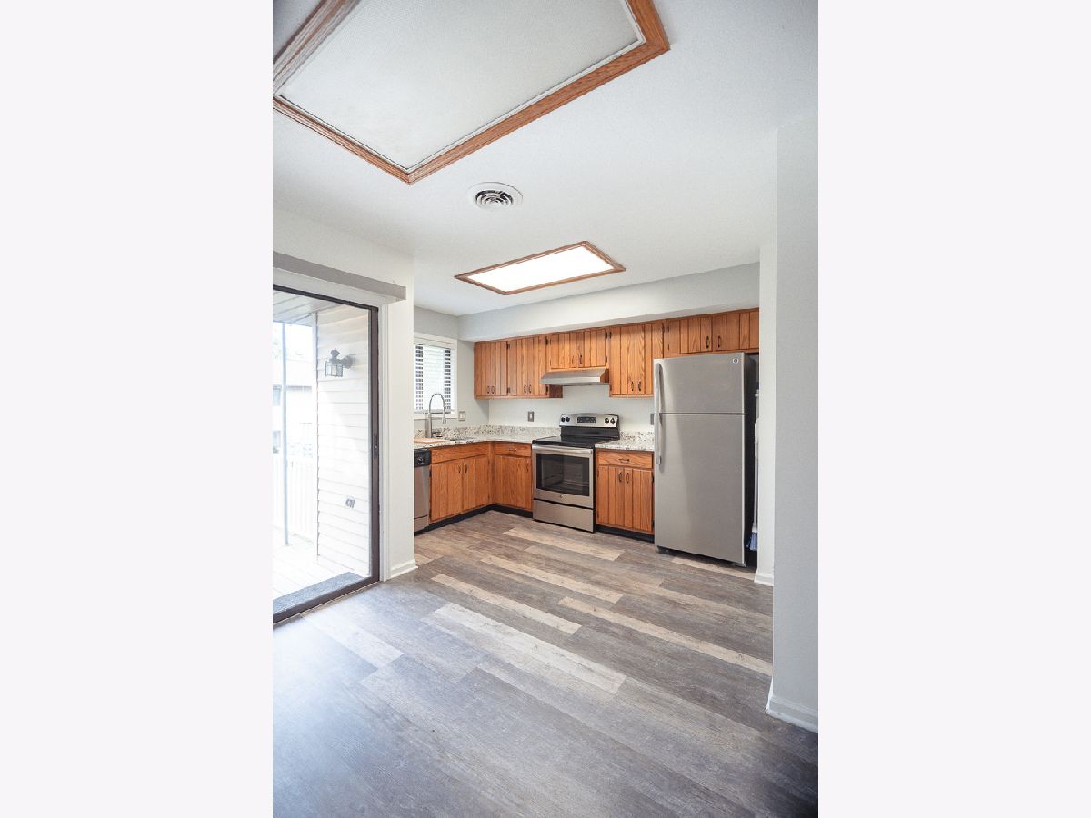 Move right into this beautifully updated two-bedroom, one-bath second-floor Willow Springs Condo, complete with two garages! Freshly painted with newer carpet and vinyl flooring in the hall and bath, this unit is ready for you. The spacious eat-in kitchen features new waterproof wood plank flooring, ample cabinets, pantry space, and brand-new stainless-steel appliances. Enjoy the bright living room with a wood-burning fireplace. Both generously sized bedrooms offer walk-in closets with built-in shelving. The conveniently located laundry room in the hall comes with a washer and dryer. Step outside through the sliding door onto the elevated deck with a view of the courtyard. Located away from the highway, the building ensures minimal traffic noise. With two garages in the garage building, you'll have plenty of space for parking and storage. The $150 monthly membership fee in the Willow Springs Condo Association includes common area insurance, exterior maintenance, lawn care, snow removal, and access to the outdoor pool and clubhouse. This gem won't last long-call your favorite Realtor today for a personal tour!