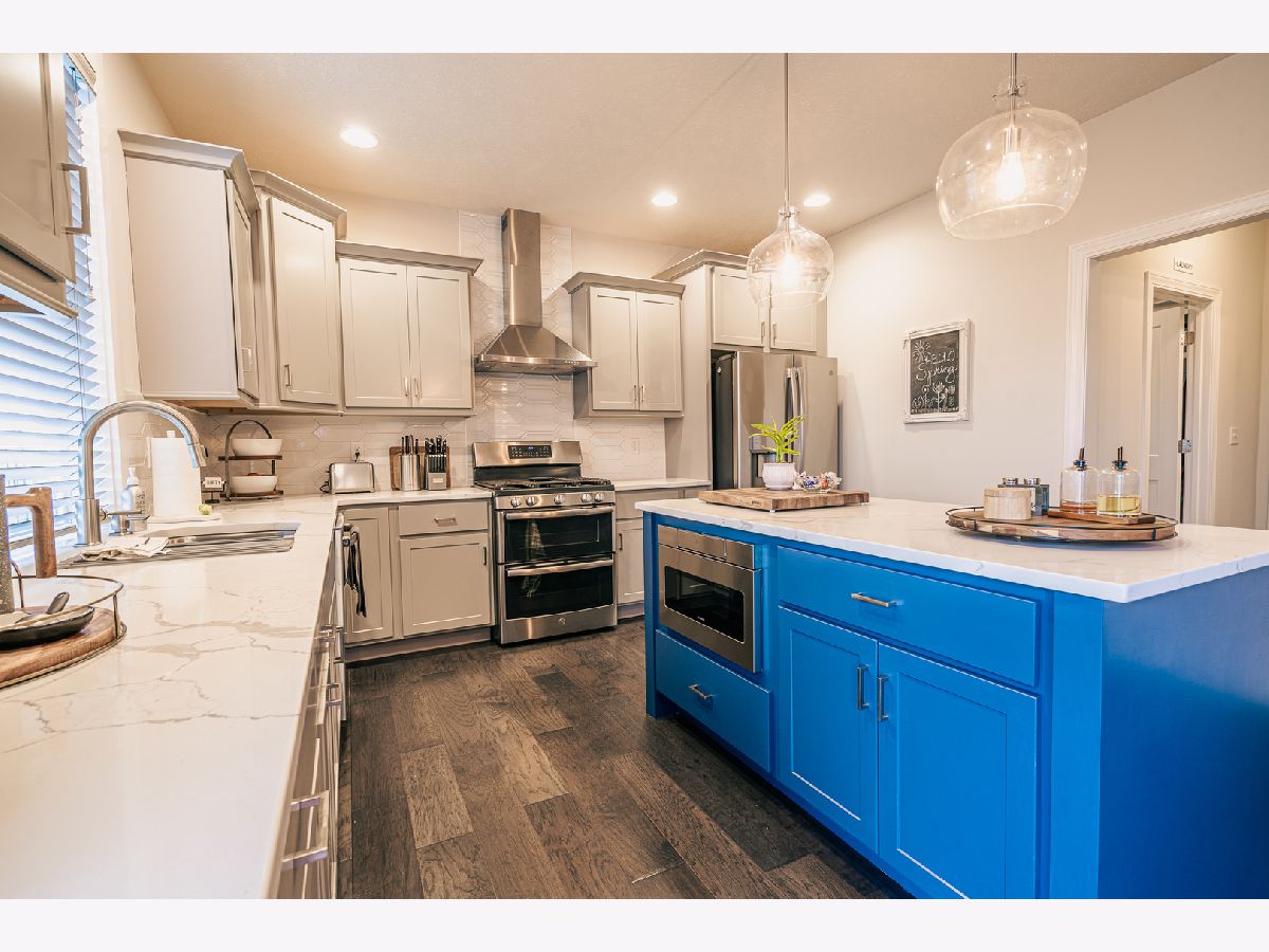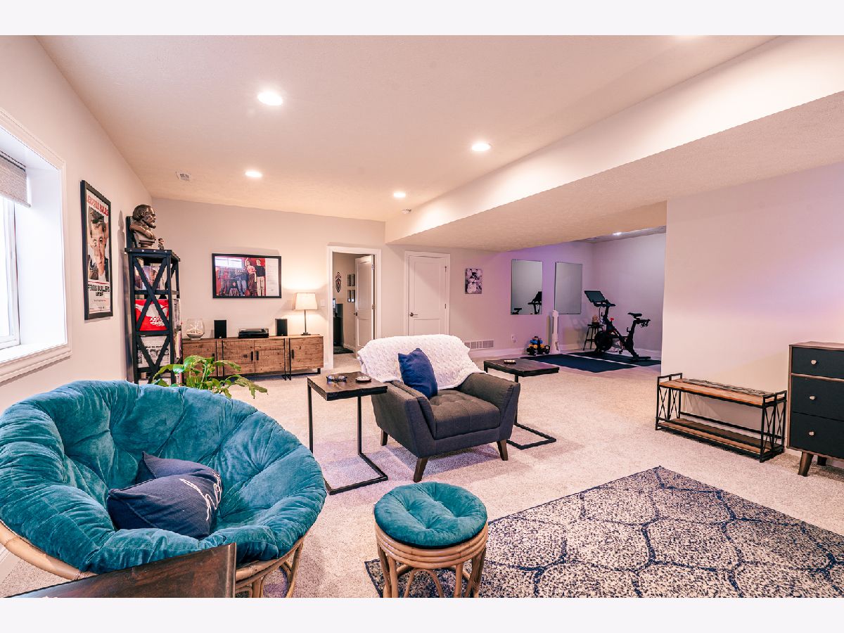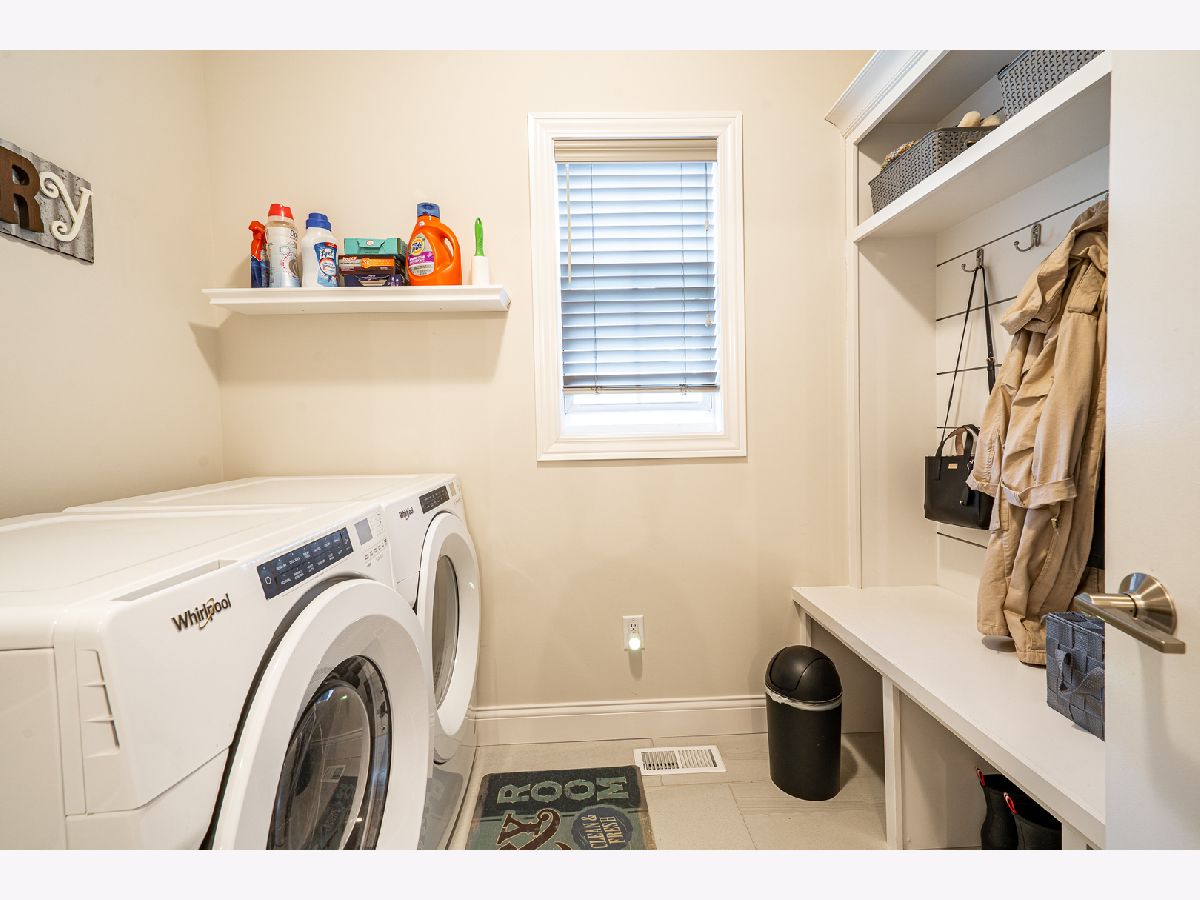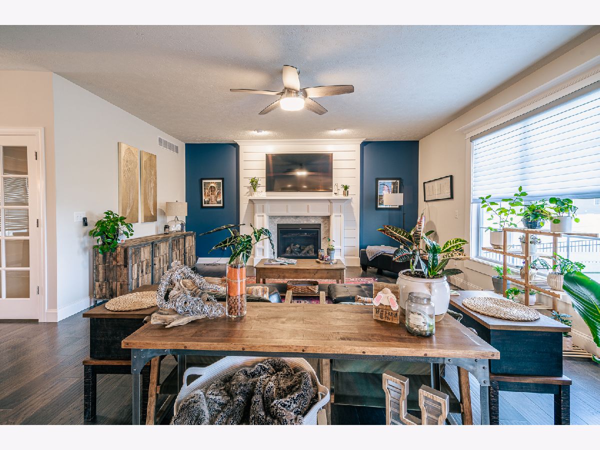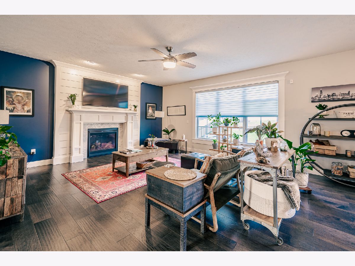 This home is stunning from the moment you get out of the car. The front porch has amazing pillars with brick accents, perfect for sitting in the rocking chairs and watching the sunset, beautiful landscaping surrounds the porch and continues around the side of the home, with a brick retaining wall. The two story entry leads you straight in to the desirable open concept living space. The entire main floor living space has gorgeous hardwood flooring. No detail was left behind from the light fixtures, to the shiplap fireplace wall, to the spectacular kitchen. The kitchen boasts quartz counter tops, soft close drawers and doors, grey cabinets along the perimeter with a pop of color island, upgraded stainless steel appliances which includes a microwave drawer and a vent hood, double door pantry with wood shelving and the look is finished off by the custom and curved tile backsplash, . You will love sitting in the eat in kitchen and watching the sunrise every morning. The first floor laundry room shares it space with a built in locker system, perfect for coming in from the garage and taking off shoes or muddy clothing. The beauty continues on the second floor with the tremendous master suite with his and hers walk in closets, whirlpool tub and separate gorgeous tiled shower. Just when you think there can't be more, there is. The basement is great for entertaining, 9ft ceilings, wide open space with a tiled flex area that is plumbed for a wet bar/kitchenette (currently being used as the gym area), a bedroom, two egress windows, a full bath and plenty of storage. You will fall in love with the wrought iron fenced backyard, privacy walls with plant shelves, landscaped with 2 trees, bushes, plantings, fresh mulch, raised garden bed and no backyard neighbors. Everyone has custom blinds from Sunguard Window Treatments. The Ring security system stays with the home. The only thing left to say is "Welcome To Your New Home".