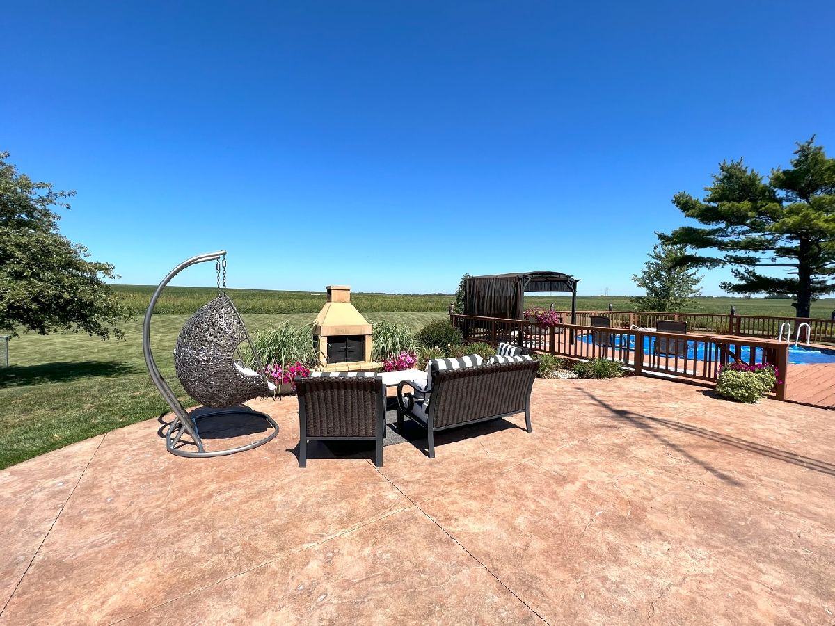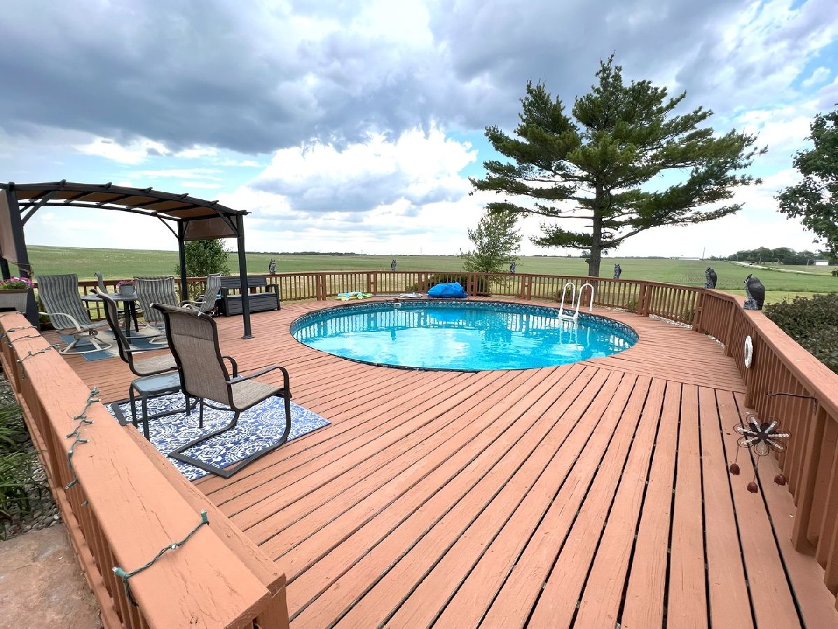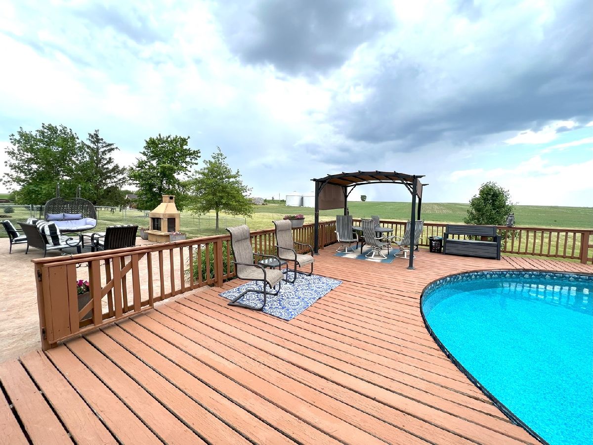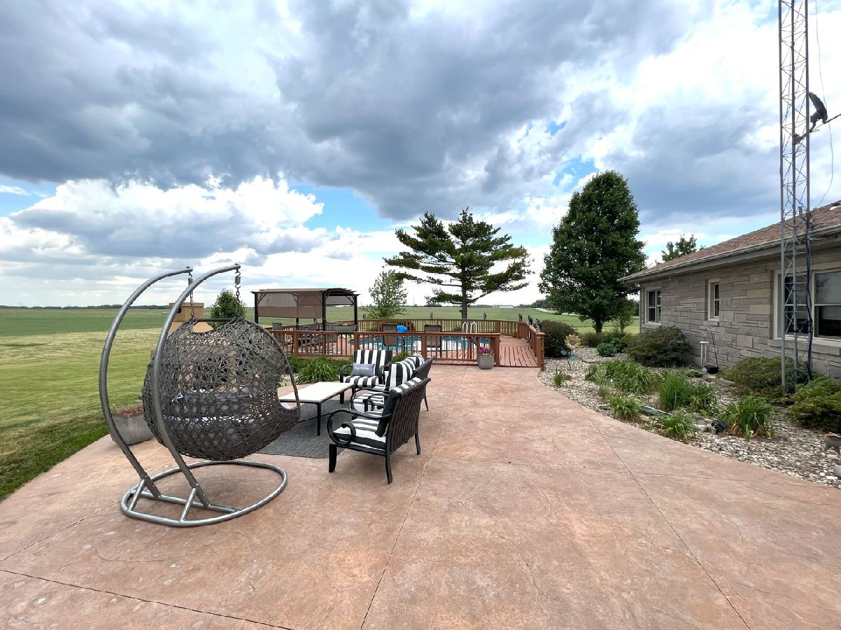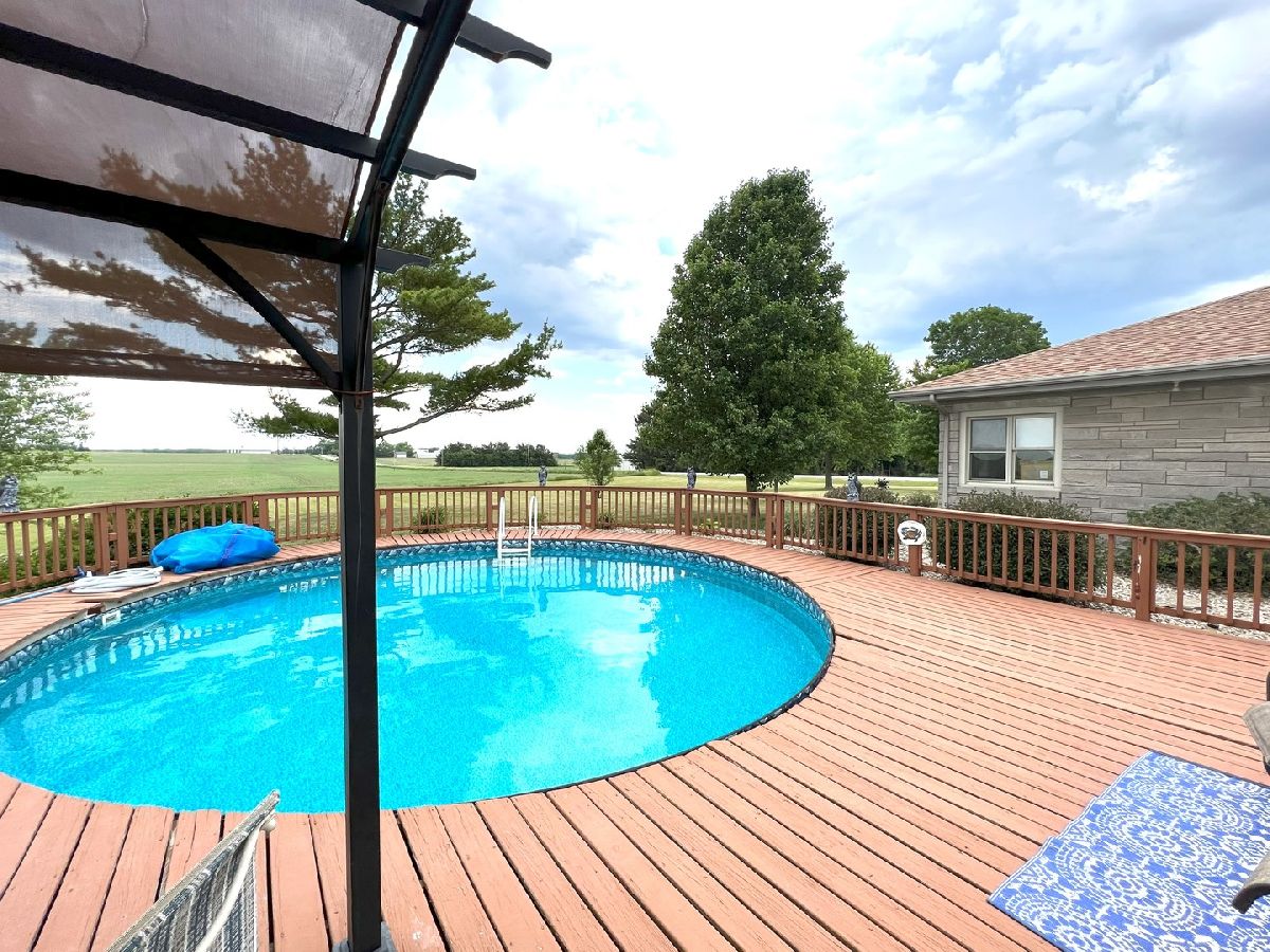 Looking For Something Really Special? Serene Country Views With Quick Access To Needed Amenities. Room To Roam With Almost 2900 Sq Ft Plus A full Basement Sitting On 3.52 Acres. Attractive Bedford Stone Exterior With Haydite Block Interior Walls - This Is A Solid Built Home! Inviting Enclosed Front Porch Leads To A large Entry Way With Bedrooms On One Side Of The Home And All The Living Spaces And Office For Two On The Other Side. Warm Hardwood Floors In The Bedrooms, Office, Kitchen, And Dining Room. Nice Sized Bedrooms With Built Ins And An Updated Bath In Between Which Includes A Walk In Shower. The Master Bedroom Is Quite Large And The Master Bath Has A 6Ft Soaking Tub, Double Sinks, Built In Vanity, And An Amazing Tiled Shower With Dual Shower Heads That Will Not Disappoint. The Doors And Trim Are Stained Wood, Crown Molding In The Kitchen, Vinyl Plank Wood Look Flooring In Entry & Hallway, And Wood Look Ceramic In The Baths. The Living Room And Basement Family Room Both Have Wood Burning Fireplaces With Lovely Stone Work. The Office Easily Works For 2 With Built In Desks & Cabinets Galore. Kitchen Remodel Includes Custom Hickory Soft Close Cabinets, Granite Tops, Stainless Appliances, Pantry W/Pull Out Shelving, Abundant Work Space, Bar W/Seating For 3 or 4, Two Sets Of Corner Windows & Another Window Provide A Super Sunny Spot For Your Morning Routine. Huge Laundry Room W/Half Bath & Storage Leads To The Basement And To The Garage. The Basement Has Vinyl Plank Flooring In the Family Room, A Mechanical Room & Others, Also a 31 x 34 Room Of Potential Future Finishable Space With A Painted Floor & Nice Sized Storage Closet. Let's Head Outside To The Grain Bin Pool W/A New Liner And Deck All The Way Around With A Pergola Too - Very Enjoyable Space! There's A Fenced In Area For Your Fur Babies. Lots Of Nice Spaces To Sit Outside On The Stamped Concrete Patio With Fireplace. There's An Additional Concrete Pad Set Up For Basketball But Would Also Be A Good Spot To Add A Second Garage Or Out Building. Complete With A One Year Home Warranty. Make Your Move Towards Country Living Today!